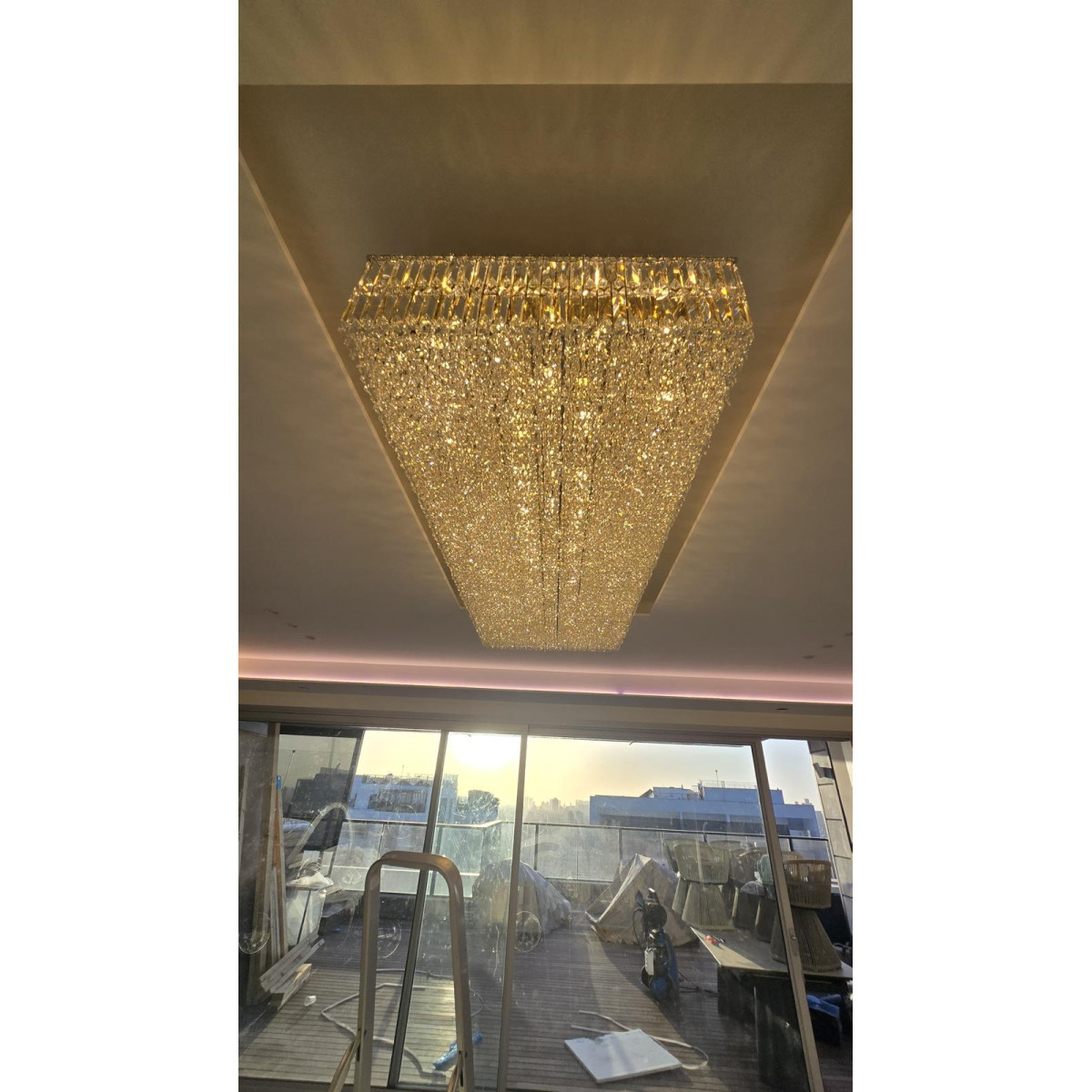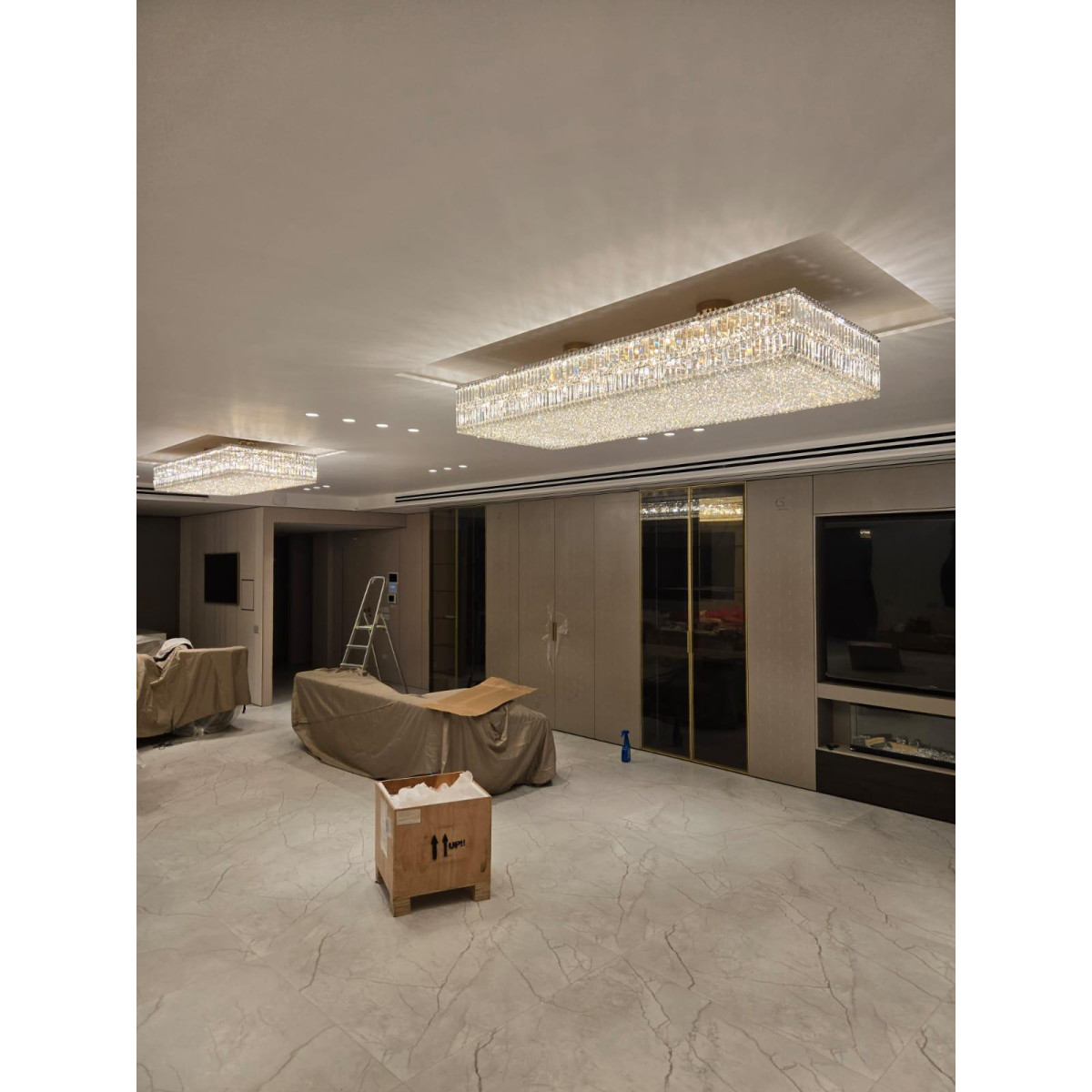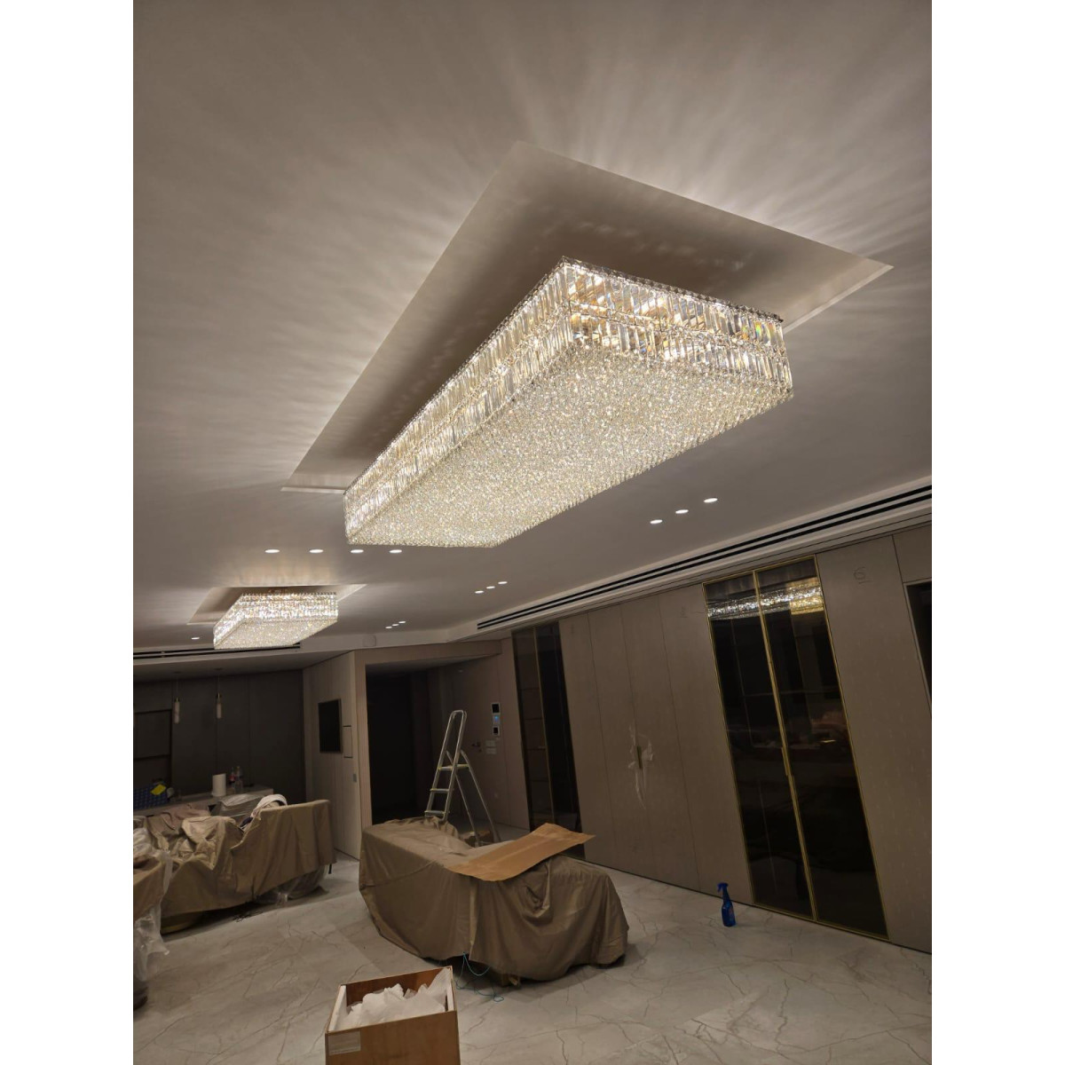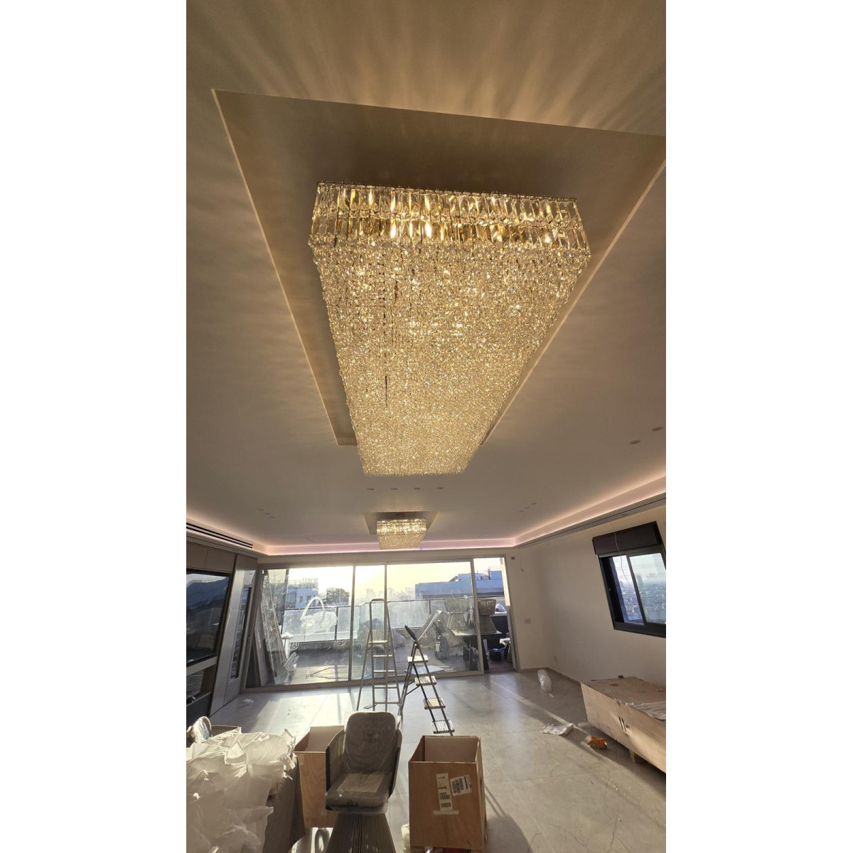 Tailored rectilinear forms composed of perfectly cut European crystal baguettes and squares, each Quantum is versatile and timeless. Discretely suspended from aircraft cable, this Schonbek appears to float luminously in midair.