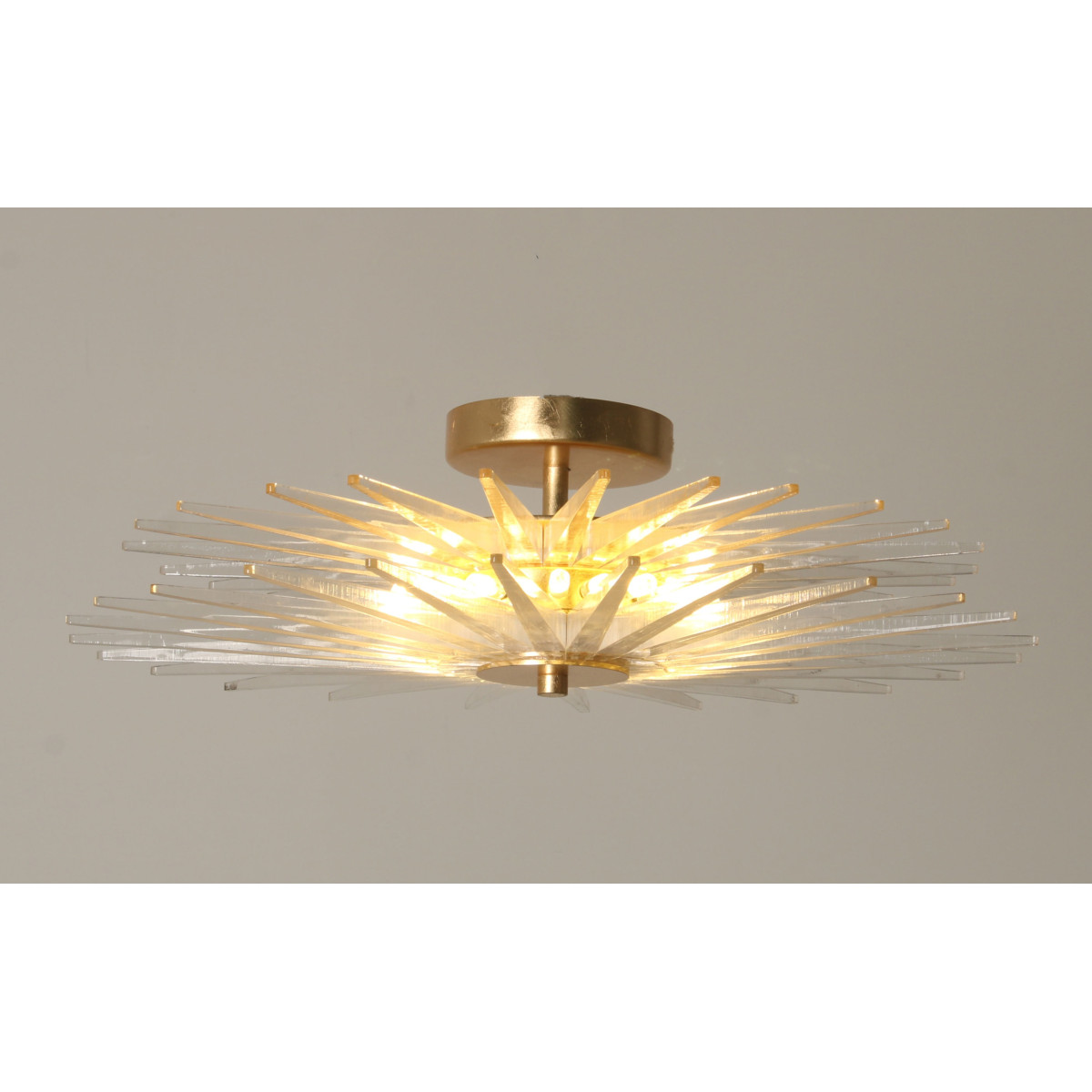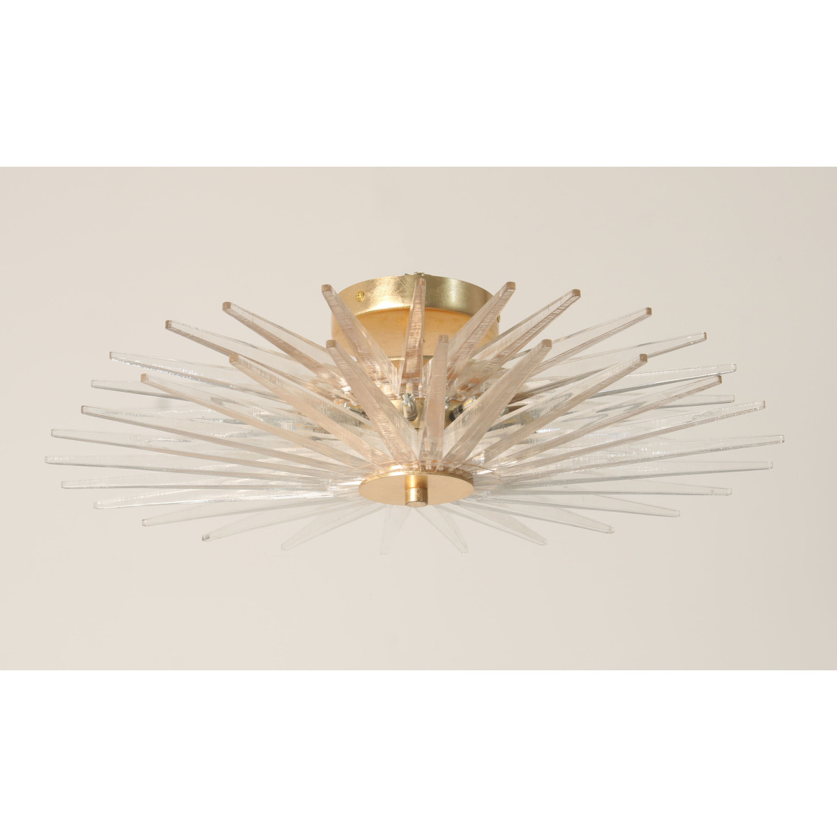 This Outstanding Venetian Flush Mount Chandelier literally draws in your sense of touch with Acrylic. Designed to look like a shiny star created by Mother Nature’s wondrous, this piece is one piece that will not only stand out but will provide an encompassing warming aura with its welcoming glow. Many decades of research and experimentation has led to the development of many exquisite Acrylic finish options, including ribbed with slight obscurity, and the clean look of the crystal cones. These can be created as hollow tubes to avoid weight issues. At Alan Mizrahi Lighting Design, we supply and manufacture many highly sought after designer pieces, All Chandelier can be customized by a number of lights, style, color and size to meet your specific needs. Every chandelier can also be combined with a matching table lamp and wall lamp to accomplish the best room design. Our company provides collections that can make all your project dreams come true.