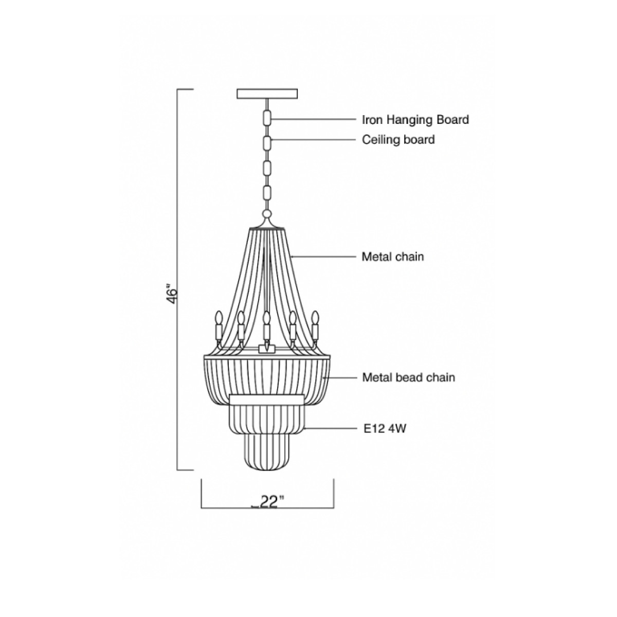 Lights: 7 Light 110V 40WE12 clear bulbs (included)