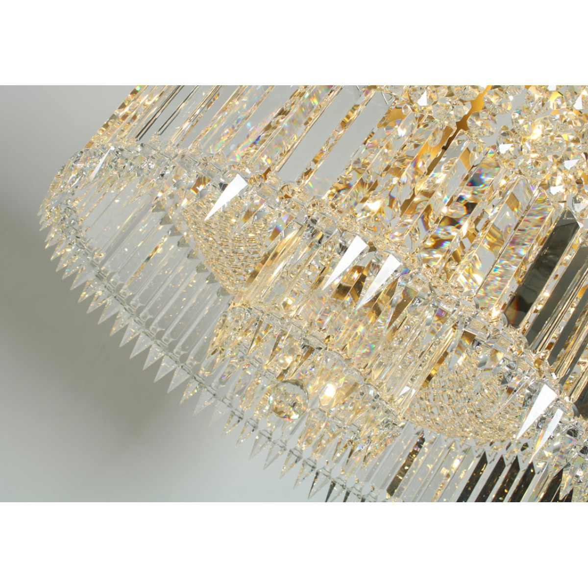 A luminous tribute to Baccarat’s legacy, the KA1883 Crinoline chandelier crowns any space with engraved, arrowed prisms that shimmer like crystalline architecture. Available in two elegant versions, it offers versatile arrangements that cascade at varying heights, immersing interiors in a breathtaking shower of light. The LED version features 39 prisms transformed into radiant, ice-like shards—each one reflecting and refracting light with a modern brilliance. The halogen version, adorned with smaller prisms, emits a warm, colorful glow, ideal for creating a rich and inviting ambiance. Whether lit by LEDs or halogen, the Lady Crinoline becomes a kinetic sculpture—its transparent, multifaceted prisms catching every subtle movement and reflecting light like thousands of tiny mirrors. Designed to dance between shadow and illumination, this fixture redefines atmosphere, offering a living experience of light that evolves moment by moment.