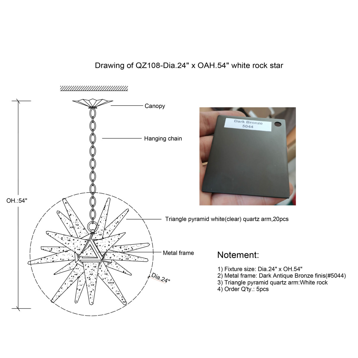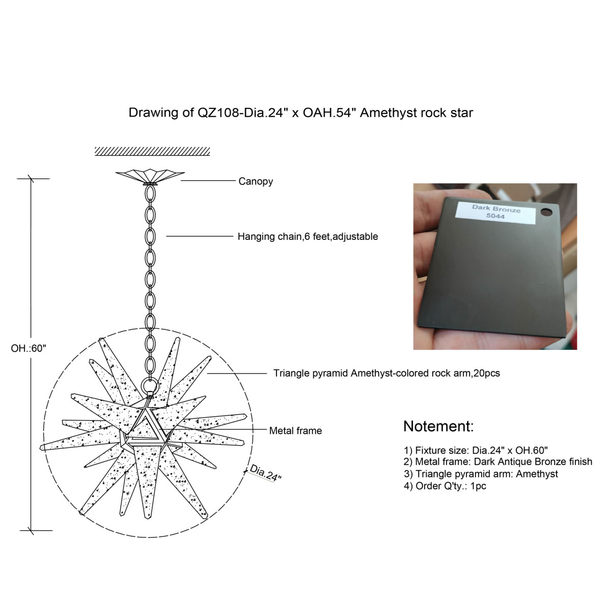 Extension: Adjustable hanging chain for a customizable length up to 24 ft for no extra cost upon request.