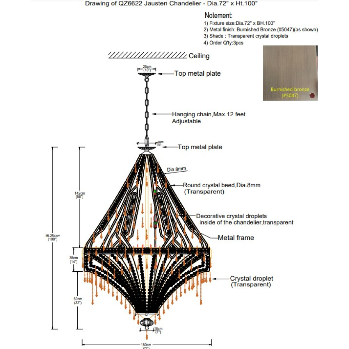 This traditional bronze finished chandelier is simply elegance inspired from another era and formed into these eye-catching pieces. This ballroom chandelier is made with clear crystal LED in various sizes. It has a golden hue that oozes, yet stunning aesthetic. Reminiscent of past times, this beauty is sure to bring you to the ultimate in vintage style and the compliments and gazes that come with it.