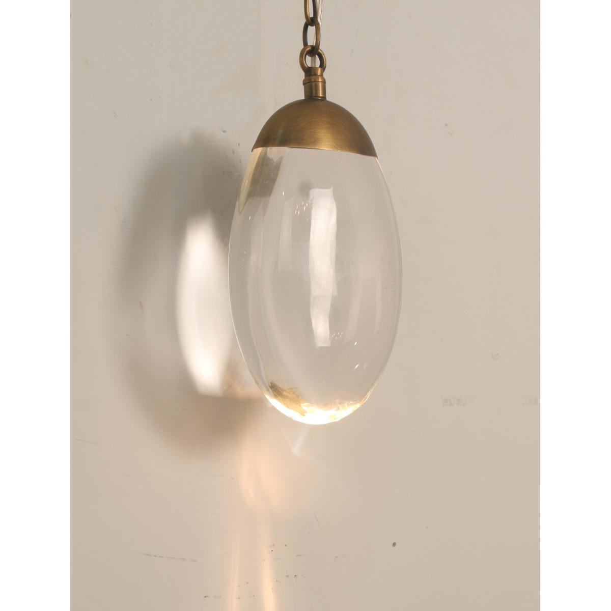 Subdued yet striking, the Pebble is little more than a transparent ellipse topped with a bronze cap and suspended from a simple chain. The light’s ethereal beauty stems from the soft halo of light produced by an optical illusion. In fact, the elliptical glass gently bends the light, making it appear as if the source is located at the bottom of the glass. Powered by LED technology, the Pebble is available as a single pendant, as a linear trio or as a cluster of five. In addition to the patinated bronze option, the cap and chain are also available in a satin nickel finish.
