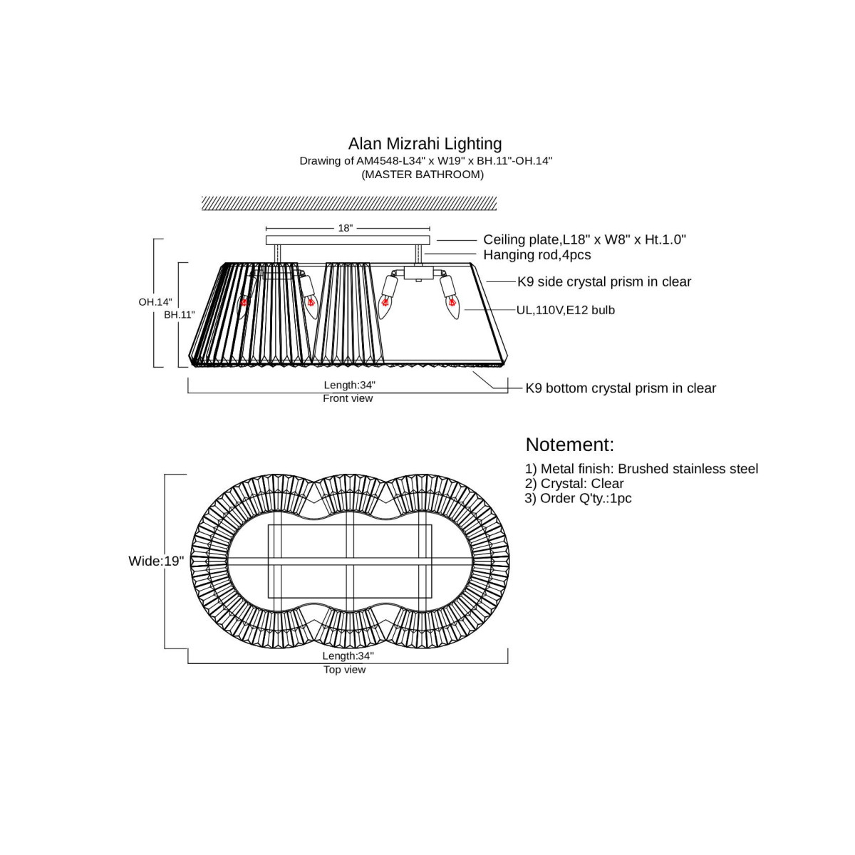 Metal Finished: Stainless Steel (Different finish available at no additional cost)