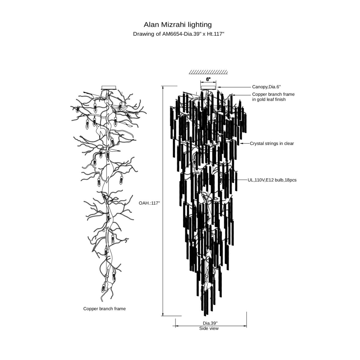 AM6654 Luster Tree Branches Crystal Chandelier