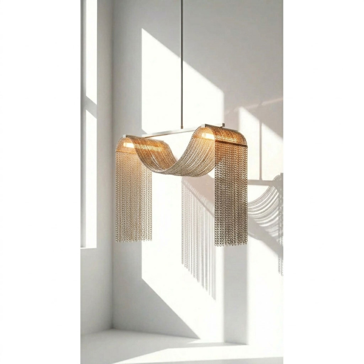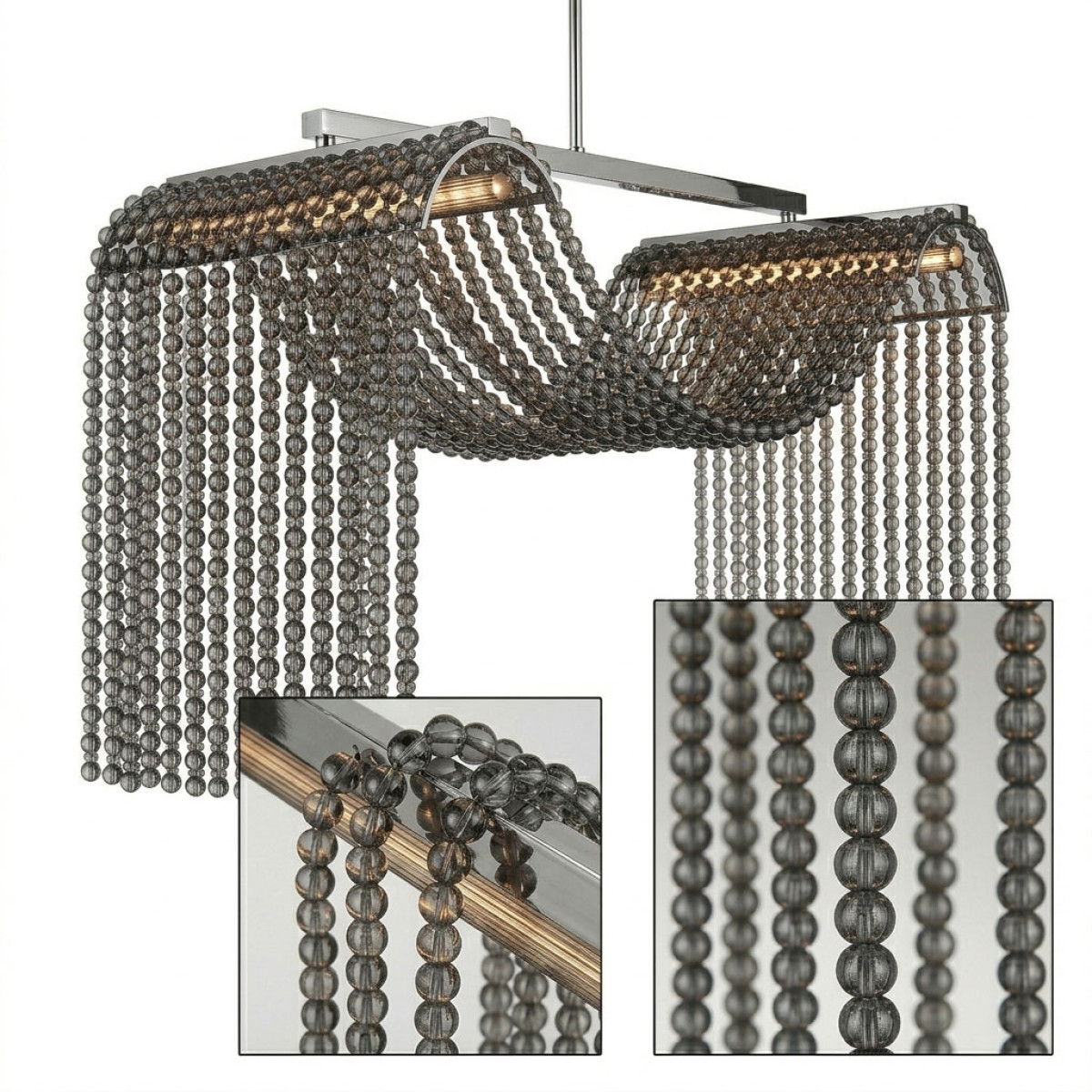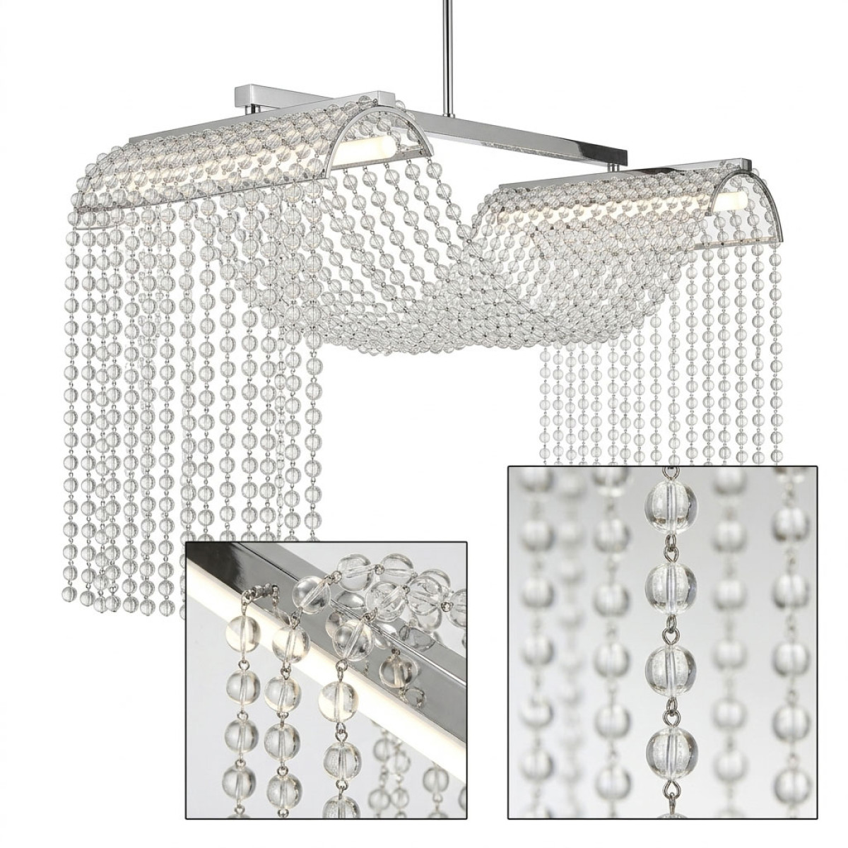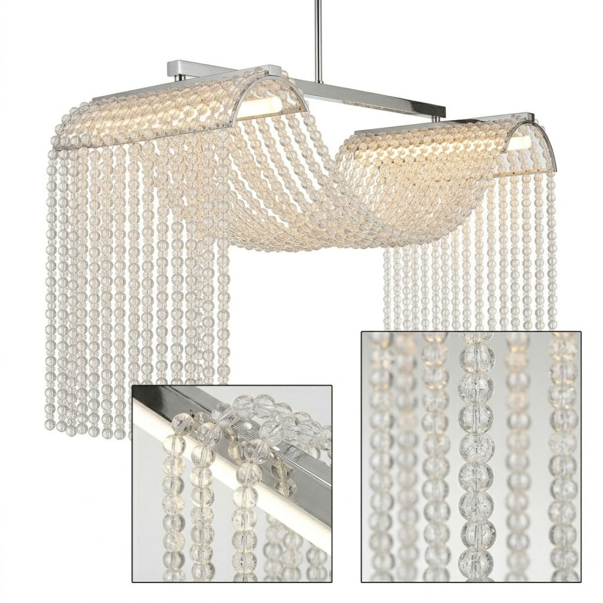 In the tradition of the lustriers, from the end of the 17th century, the sewing of pearls is one of the favorite arguments of the art of luxurious lighting. Traditional techniques of lightning do not let themselves be confessed by the formal evolutions of the new lighting. Here, the stitching of crystal beads still inspires the creator, who knows how to simplify it to draw an effective poetic object. It takes up a recurring theme in classic lighting: water games and fountains that have so much inspired the decorative arts, especially in the 1920s. The simplicity of crystal pearl drops refreshes the theme and dresses the tube light fluorescent while diffusing it. No frills, like a designer gesture, these chandeliers have the modernity for the asset, while remaining objects of tradition.