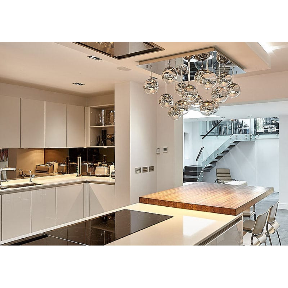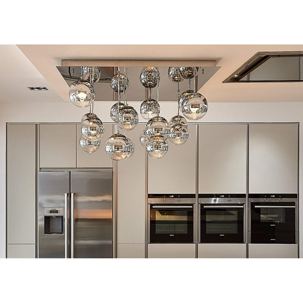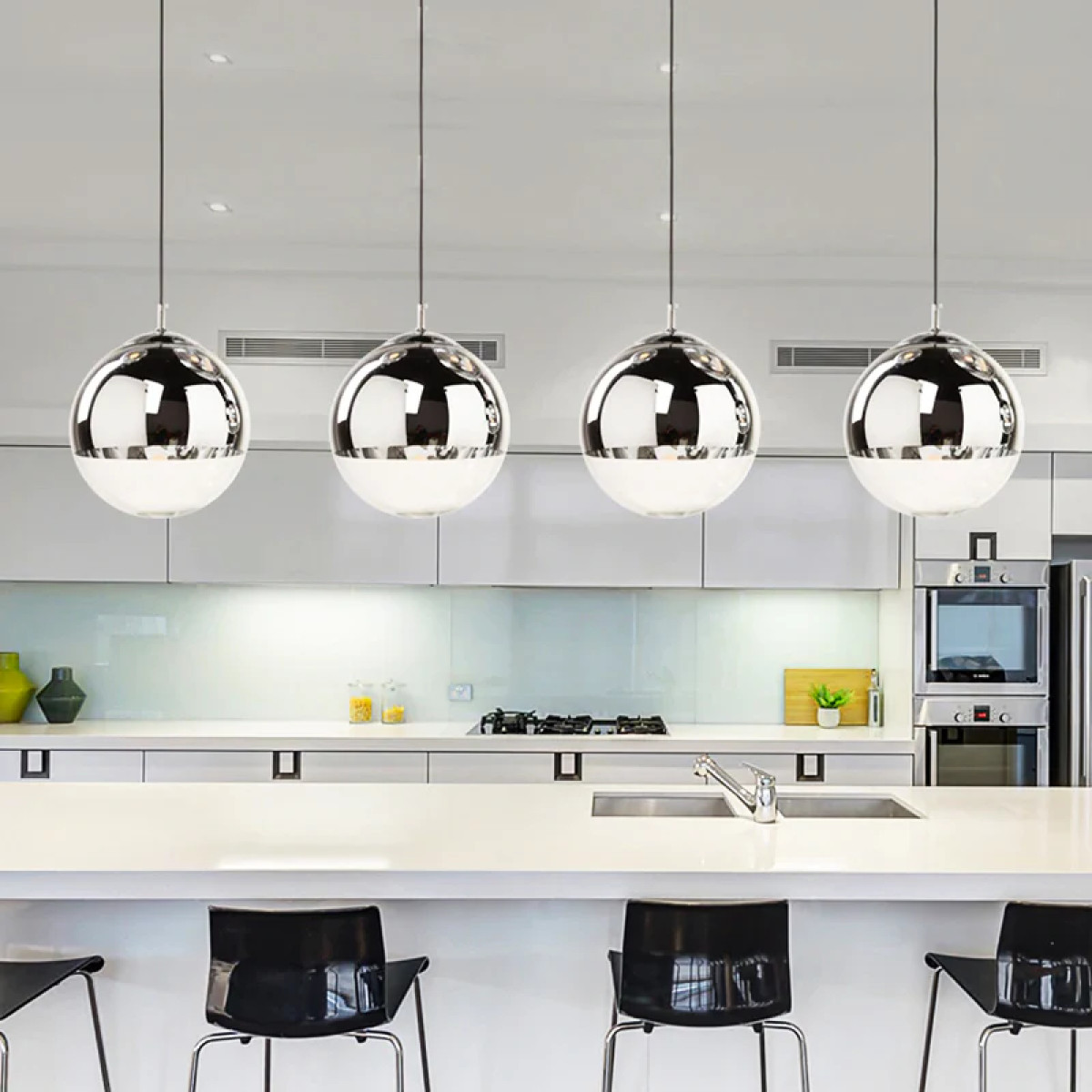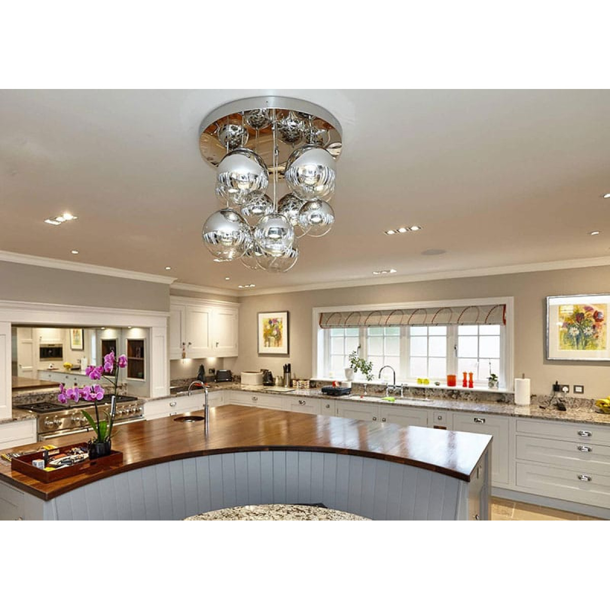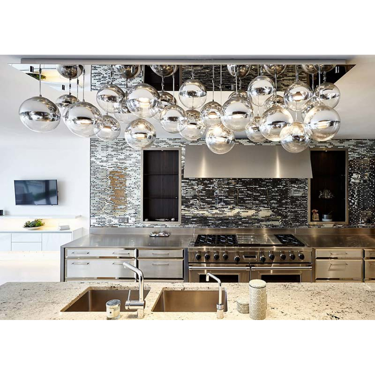 Modern Charm in a Compact Form. The DV8874 Globbi Cromati chandelier offers a fresh, contemporary aesthetic perfect for intimate or modern spaces. Featuring smooth, half-chromed hand-blown glass orbs suspended at varying heights, this elegant piece creates a playful dance of light and reflection. Mounted on sleek chrome panels, the orbs reflect and refract light in dynamic, unexpected ways—bringing depth and movement to any setting. Compact yet eye-catching, the Globbi Cromati is an ideal choice for those seeking refined modern design with a unique twist.
