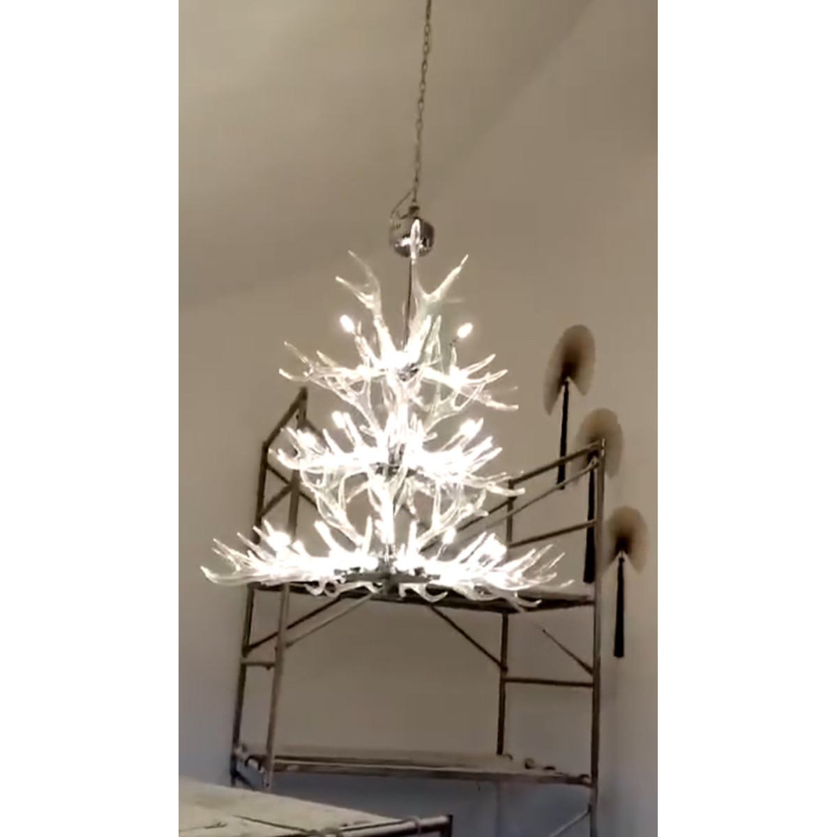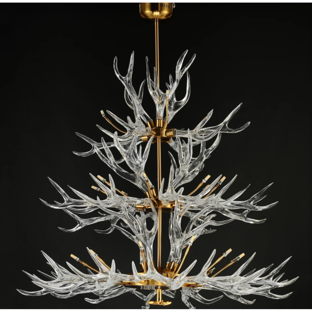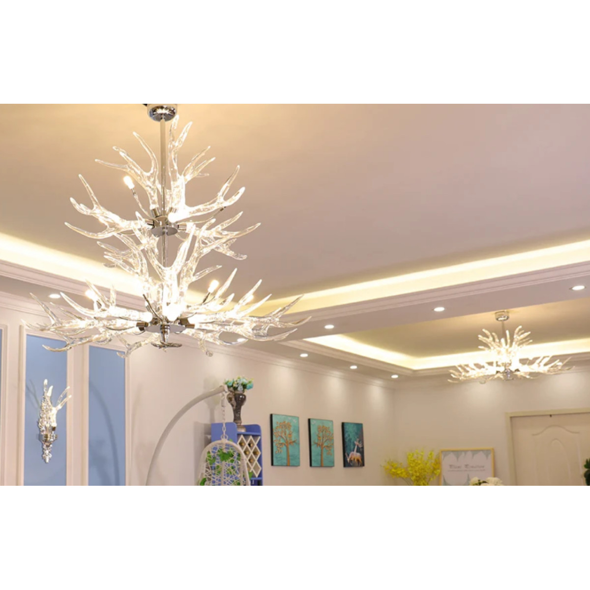 Inspired by nature and nordic design traditions, this sculptural chandelier features delicately branched forms reminiscent of antlers, creatively arranged to bring warmth and organic elegance to any space. Crafted with acrylic elements and a vintage-inspired silhouette, this fixture is perfect for adding a touch of rustic sophistication to living rooms, cafés, or artistic interiors. An elegant, bespoke lighting solution, this piece is fully customizable to meet the specific aesthetic and functional aspirations of your space maximizing the design potential through thoughtful integration of existing elements and ambiance.