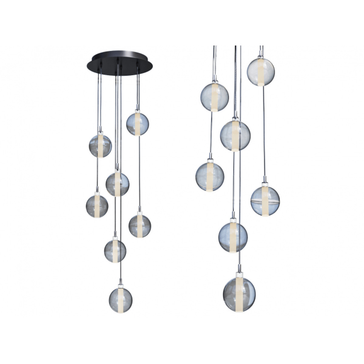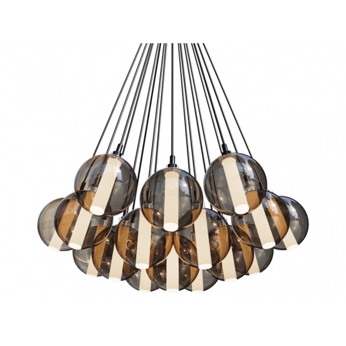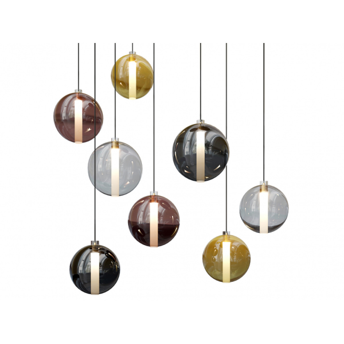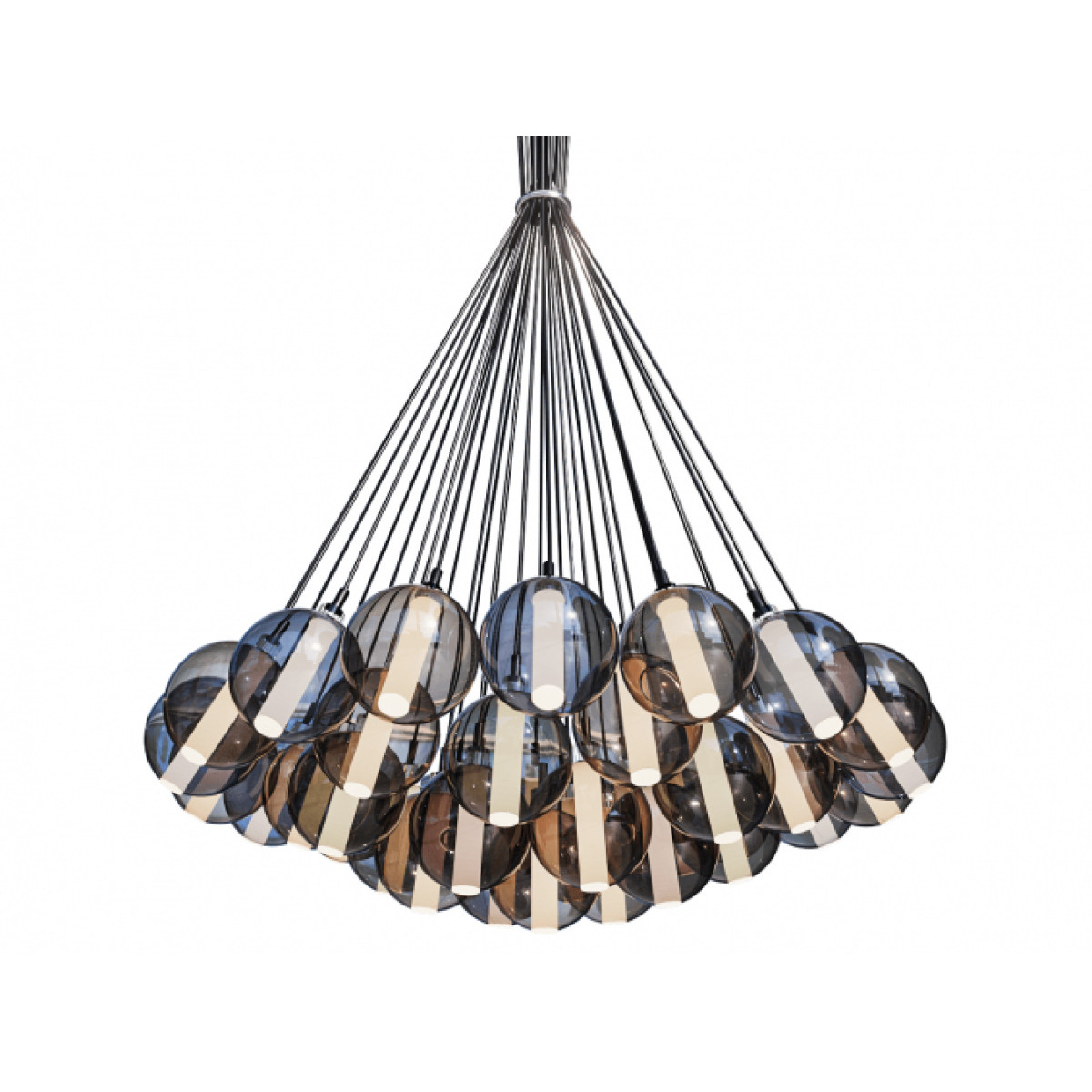 The Eclisse Black chandelier is a studio design by Cangini & Tucci. It is part of the collection of the same name. It is made of hand-blown glass. Available glass colors: clear, pink, amber, green, blue, smoky, tobacco, and ruby.