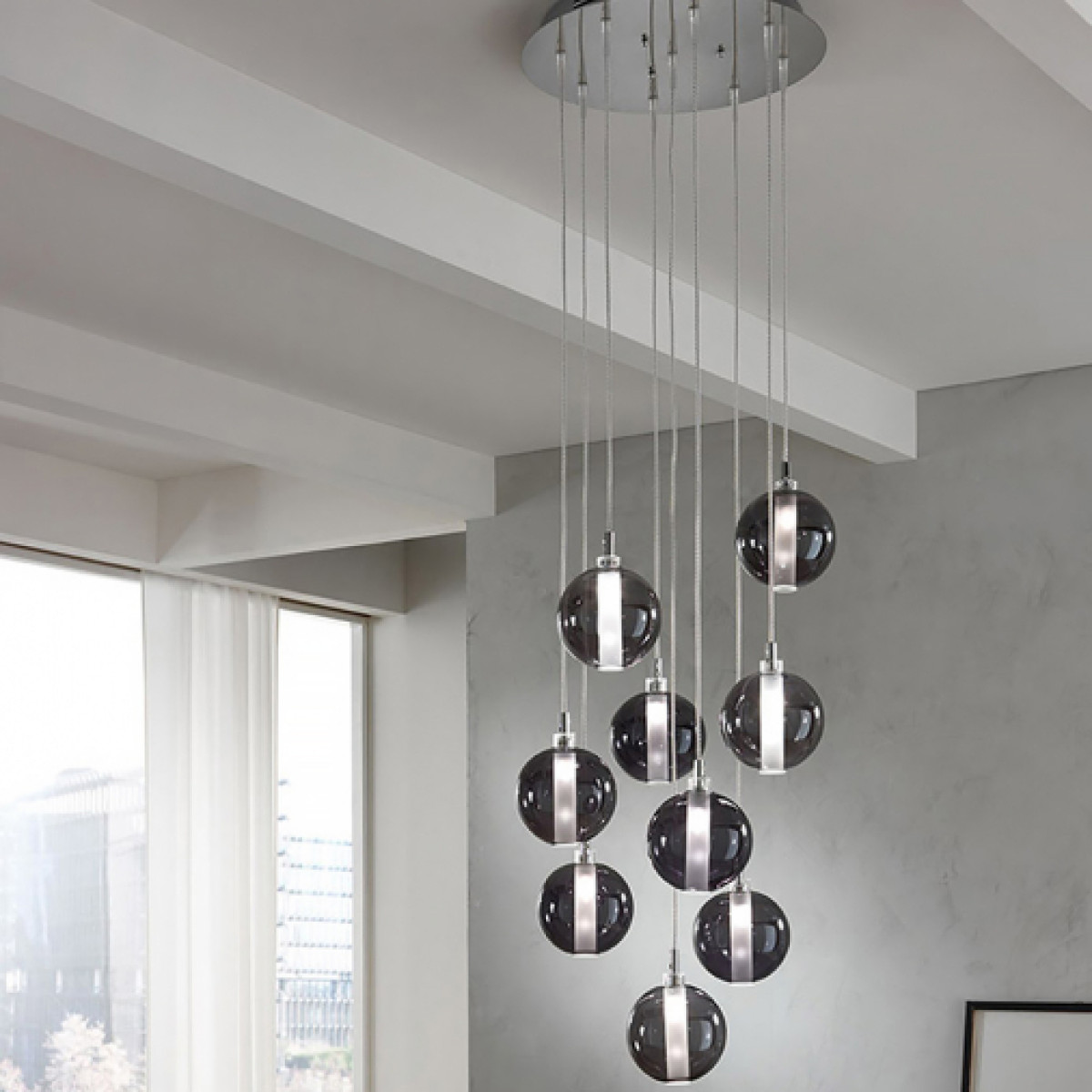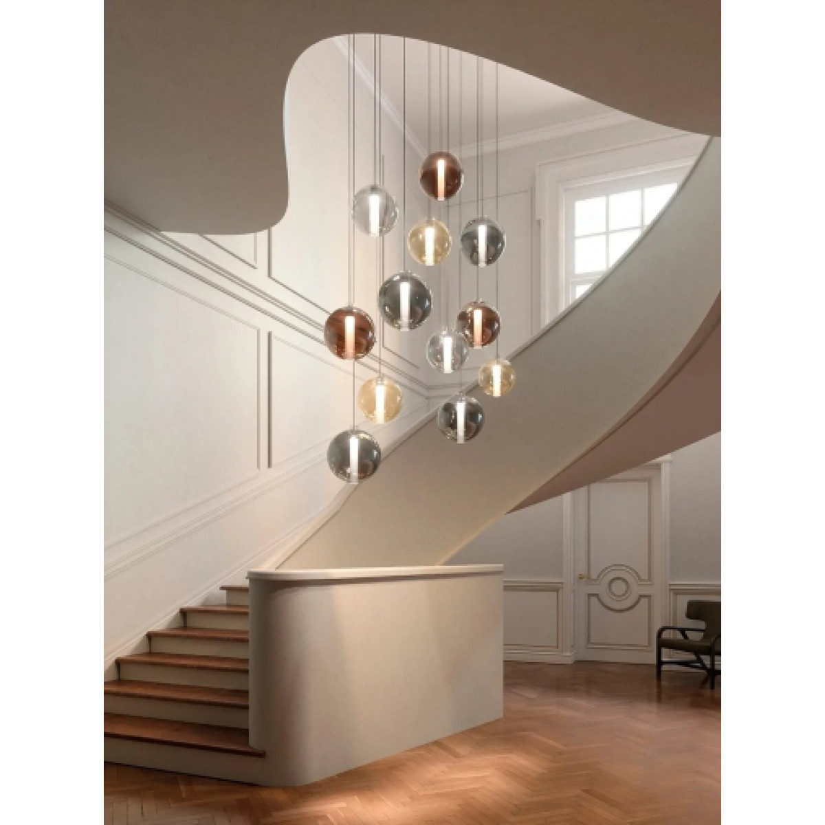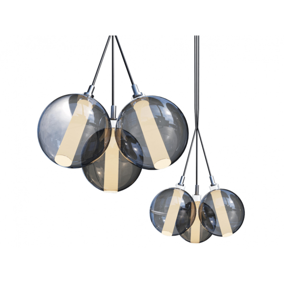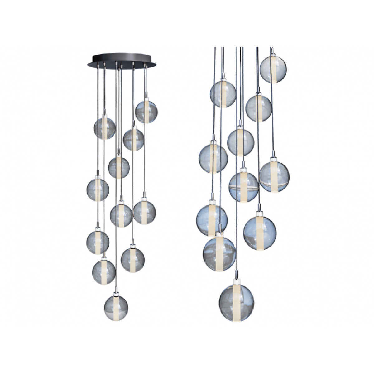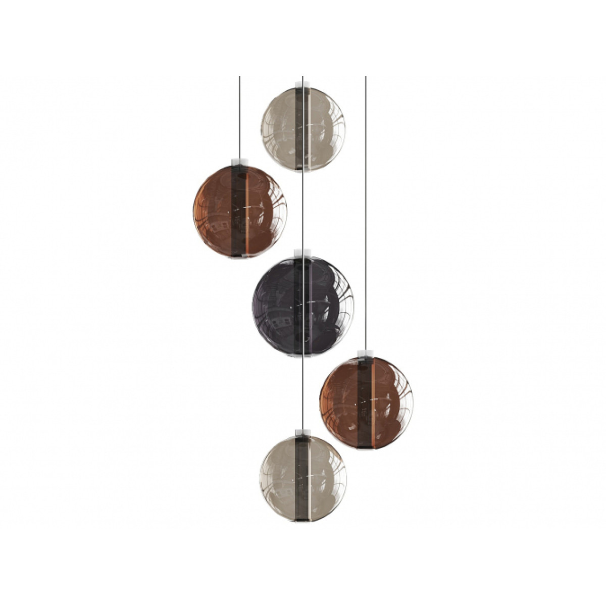 The Eclisse Black chandelier is a studio design by Cangini & Tucci. It is part of the collection of the same name. It is made of hand-blown glass. Available glass colors: clear, pink, amber, green, blue, smoky, tobacco, and ruby.