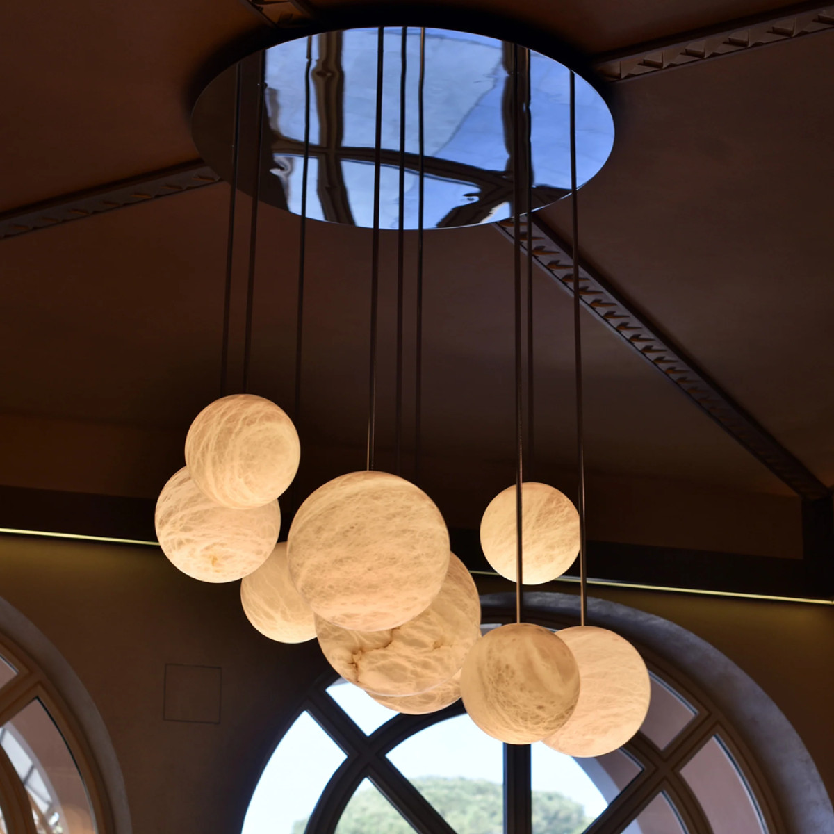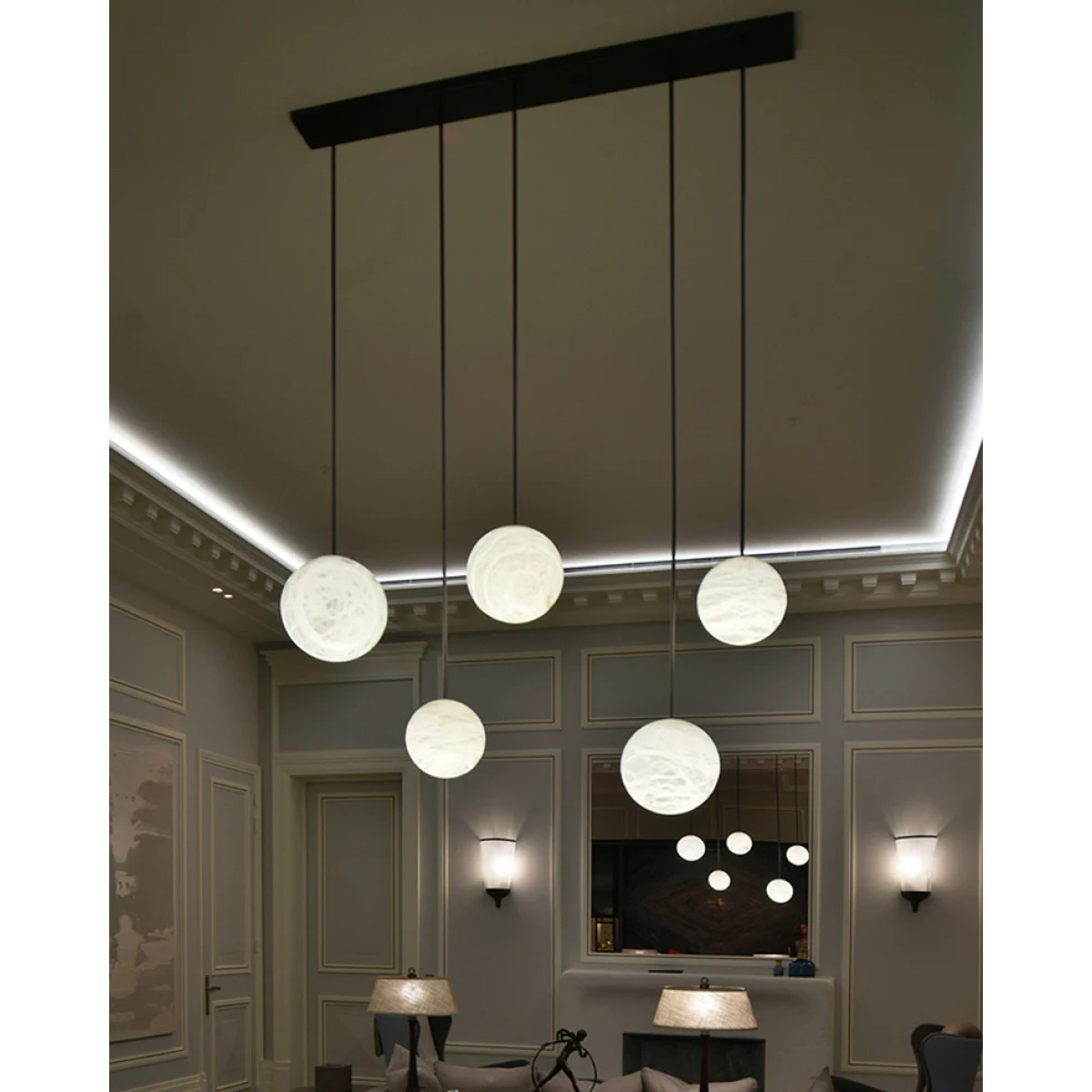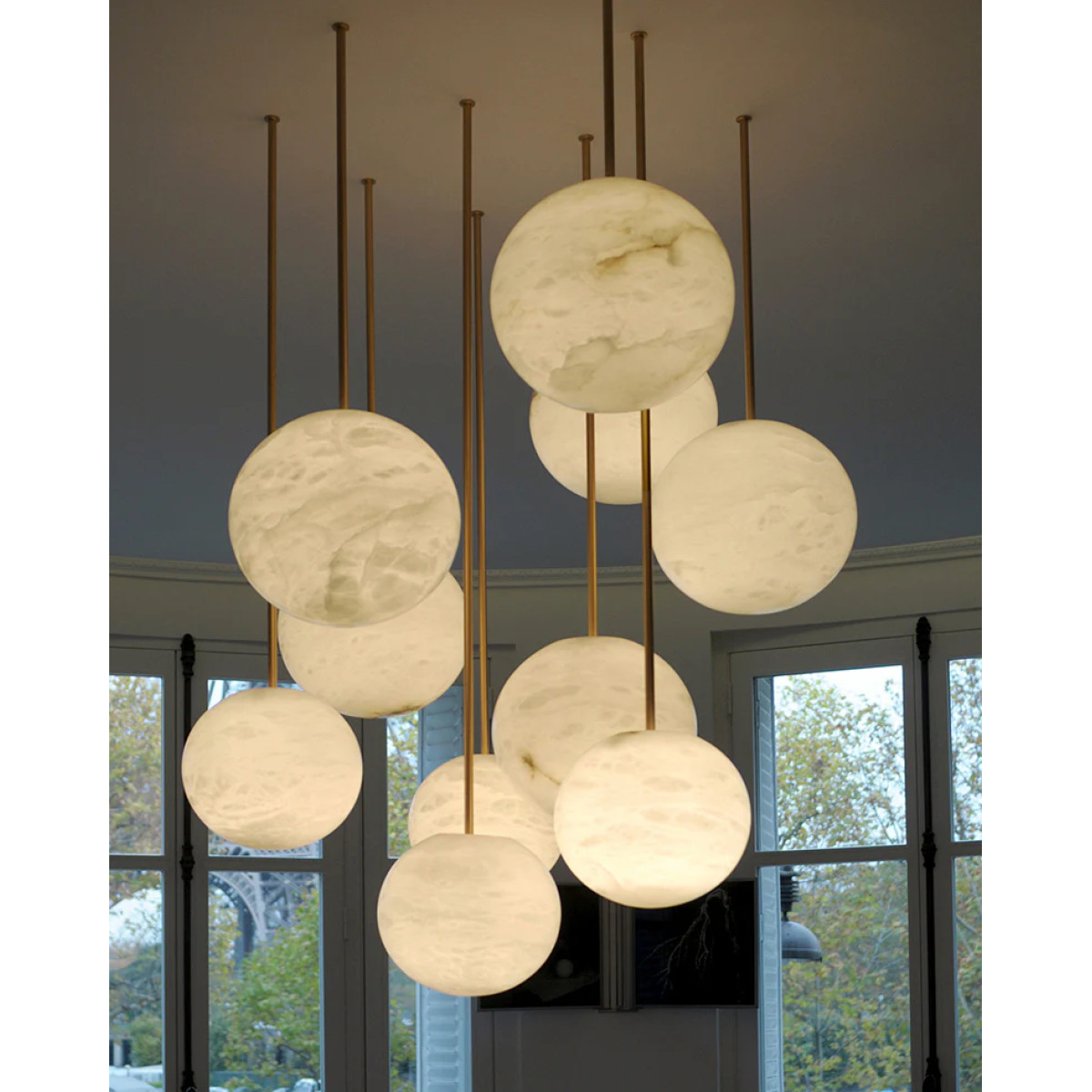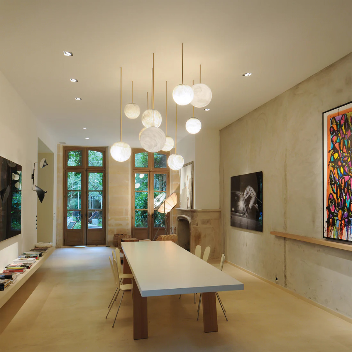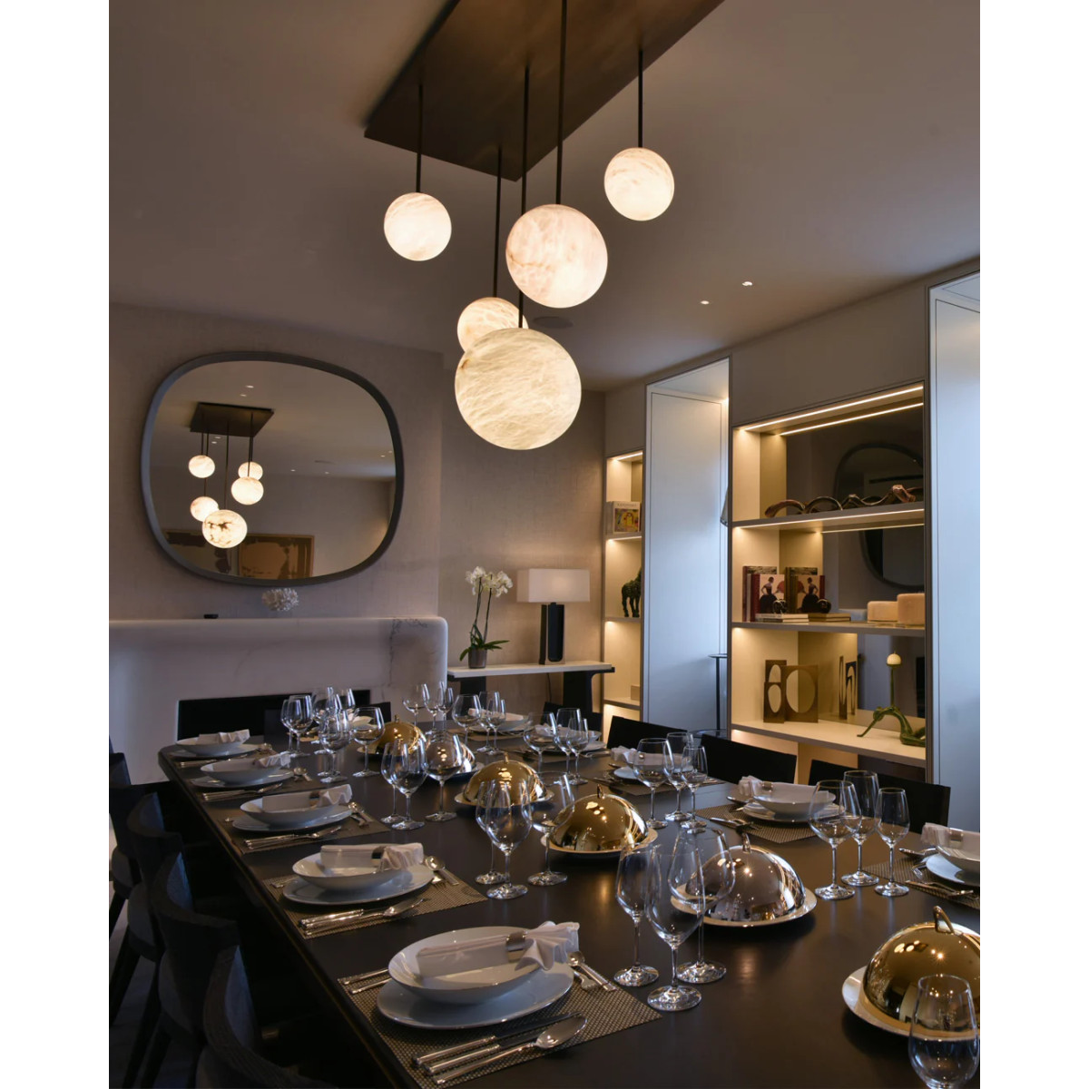 Consisting of only a rod and an alabaster sphere, the Luna Pendant shines in its luxurious simplicity. True to its name, the pendant emits a glow reminiscent of a full moon illuminating the night sky. Offered in multiple diameters, it can be sized or grouped in different arrangements for any environment.