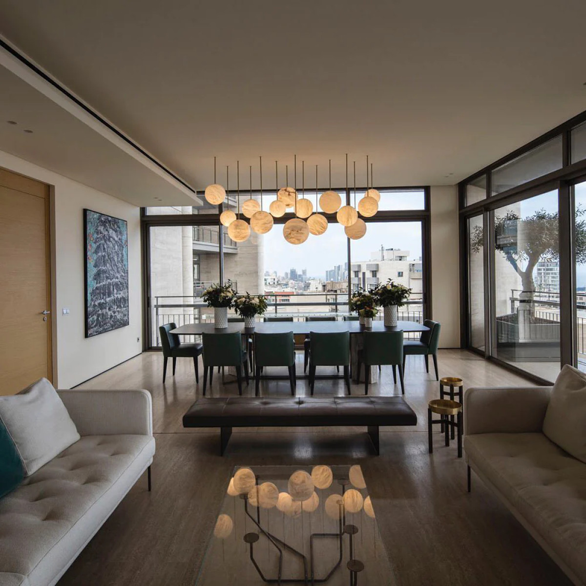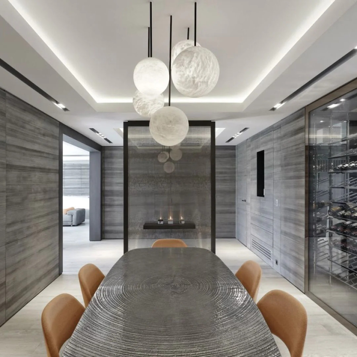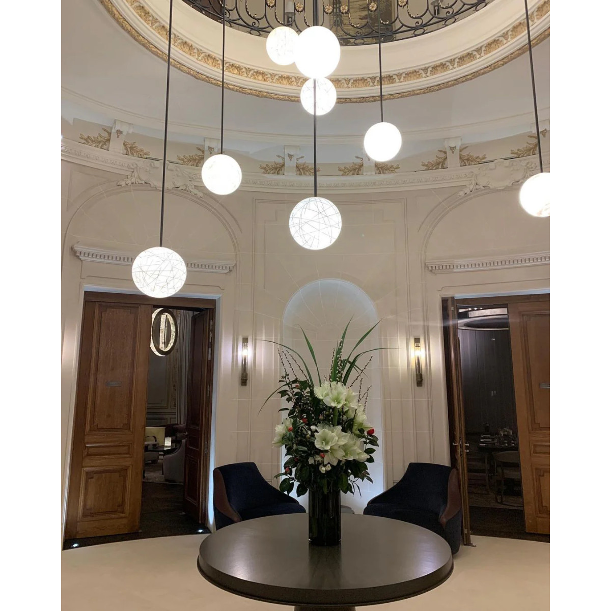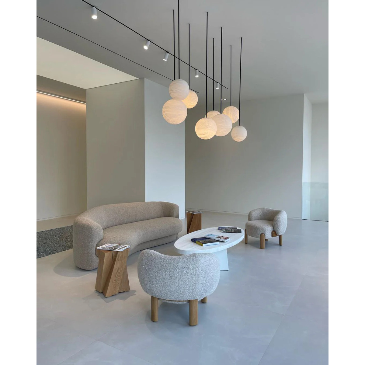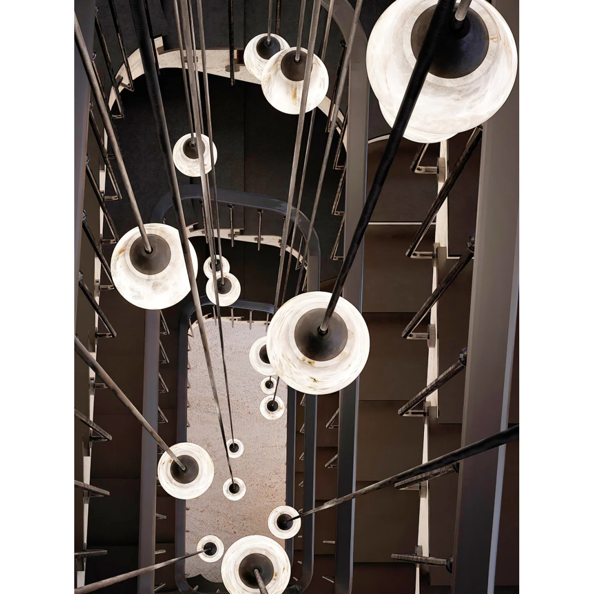 Consisting of only a rod and an alabaster sphere, the Luna Pendant shines in its luxurious simplicity. True to its name, the pendant emits a glow reminiscent of a full moon illuminating the night sky. Offered in multiple diameters, it can be sized or grouped in different arrangements for any environment.