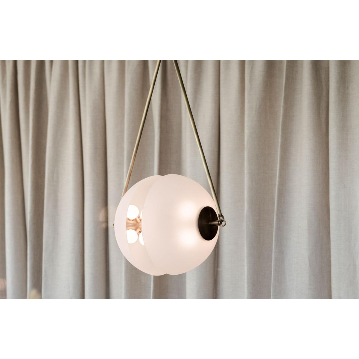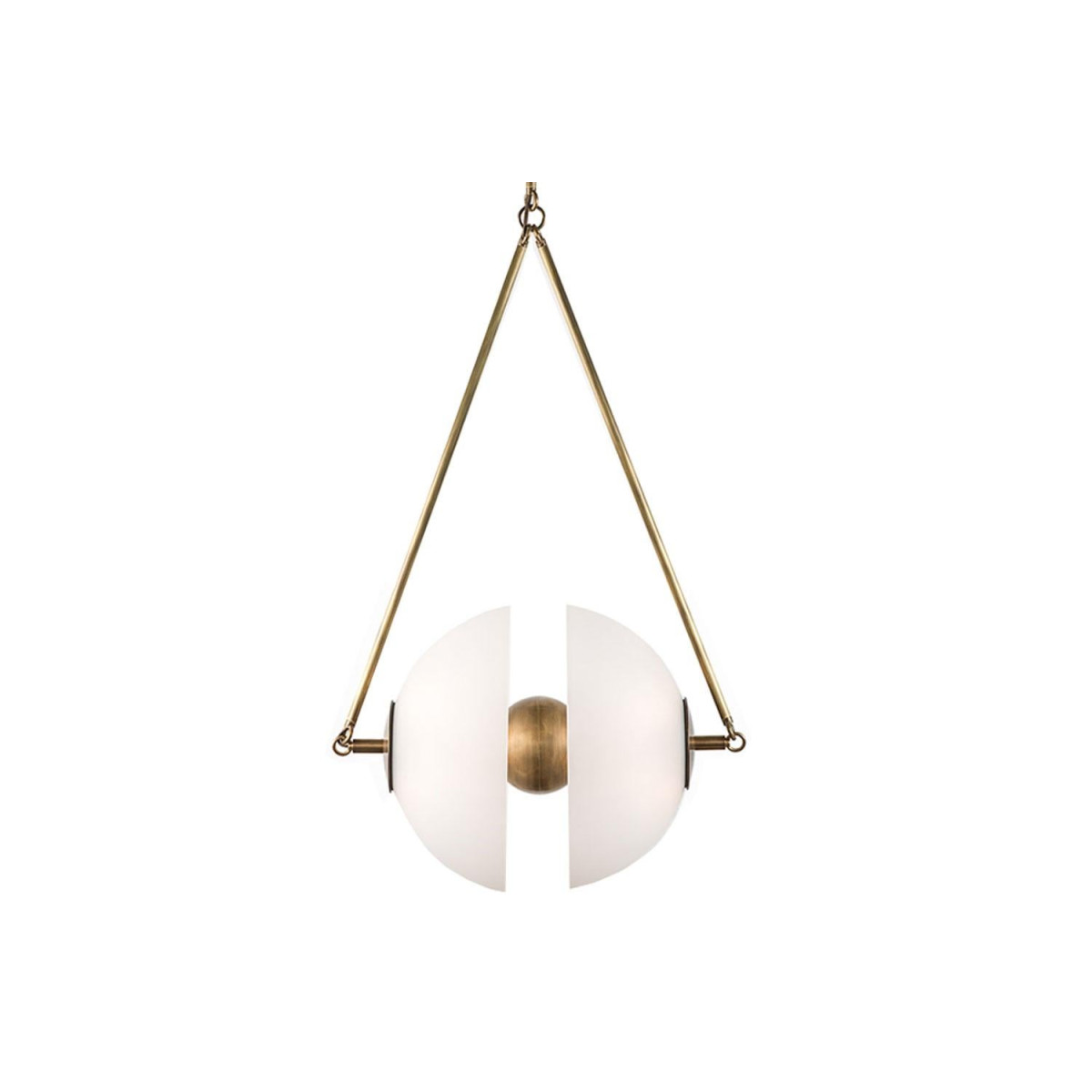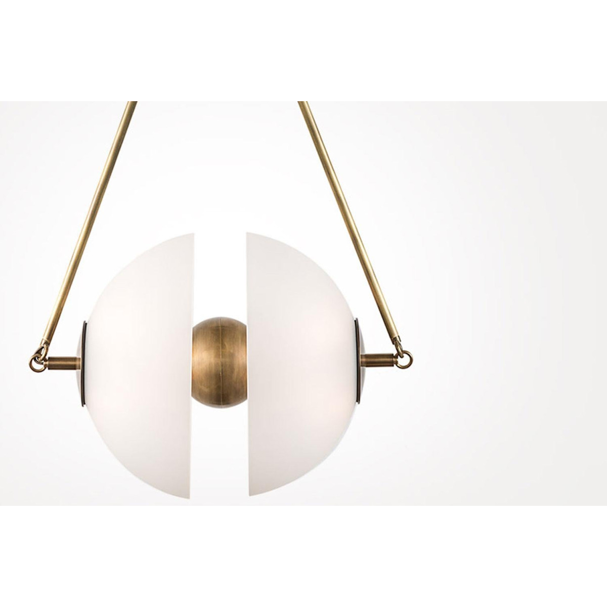 Synapse Small by Apparatus Inspired by the mechanics of neural synapses, the aged brass orb floats in transit between two hand-molded glass domes. This lighting is in excellent showroom condition. Used in showroom setting. Barely imperceptible evidence of wear. All purchase are final and without warranty.