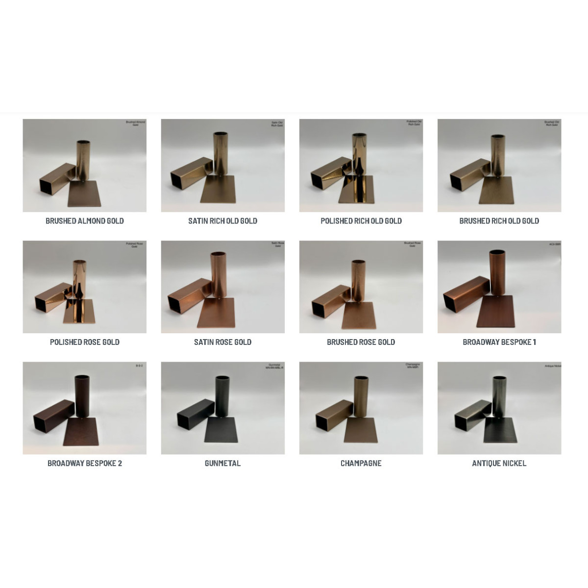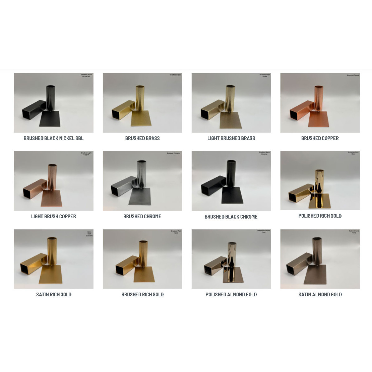 Combinations such as black and gold, chrome, black and glass, copper and black, and more!