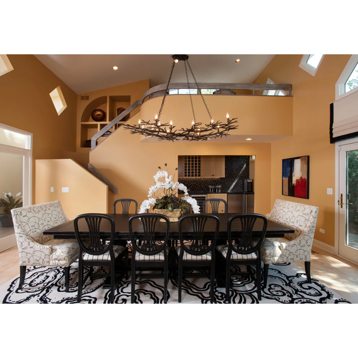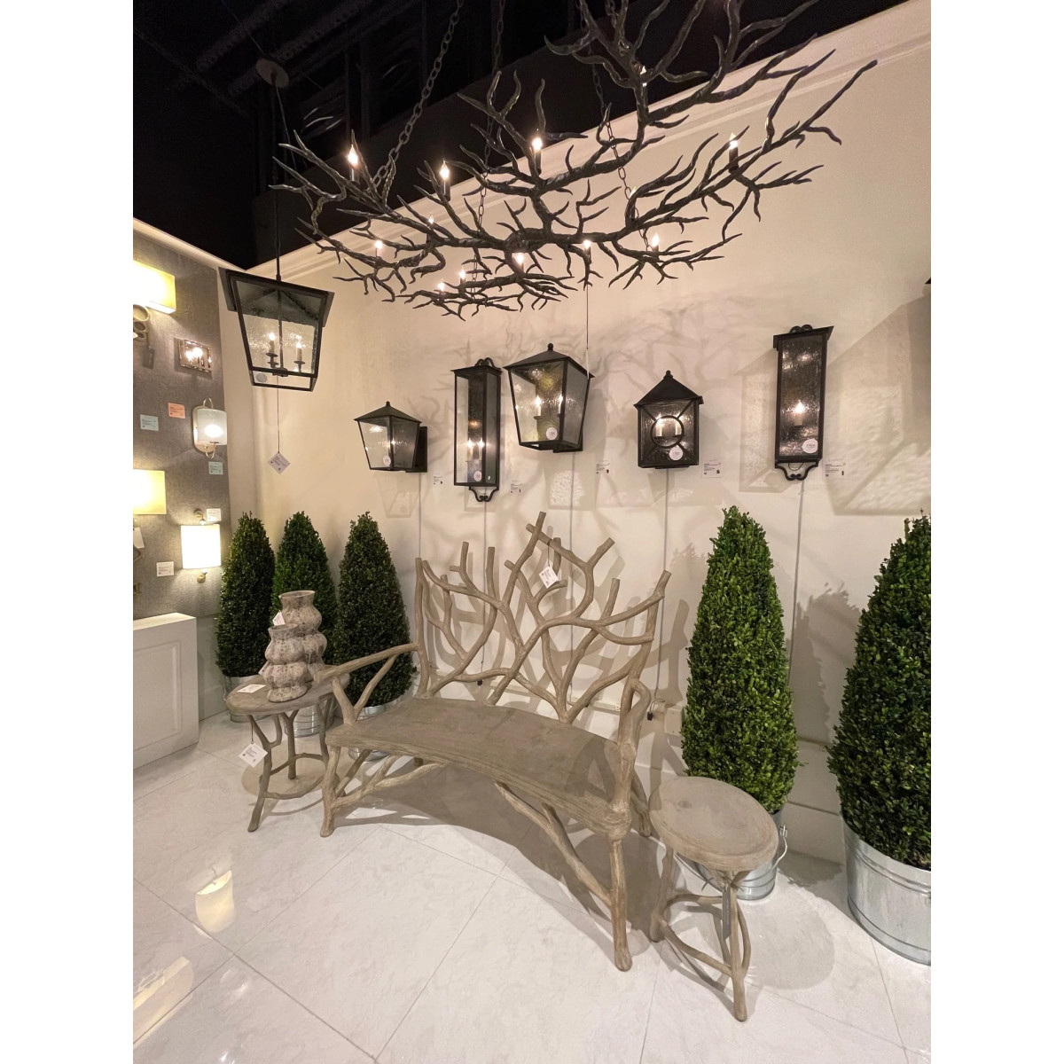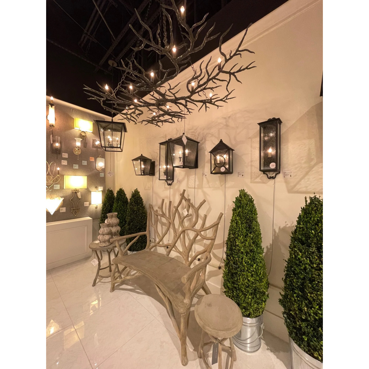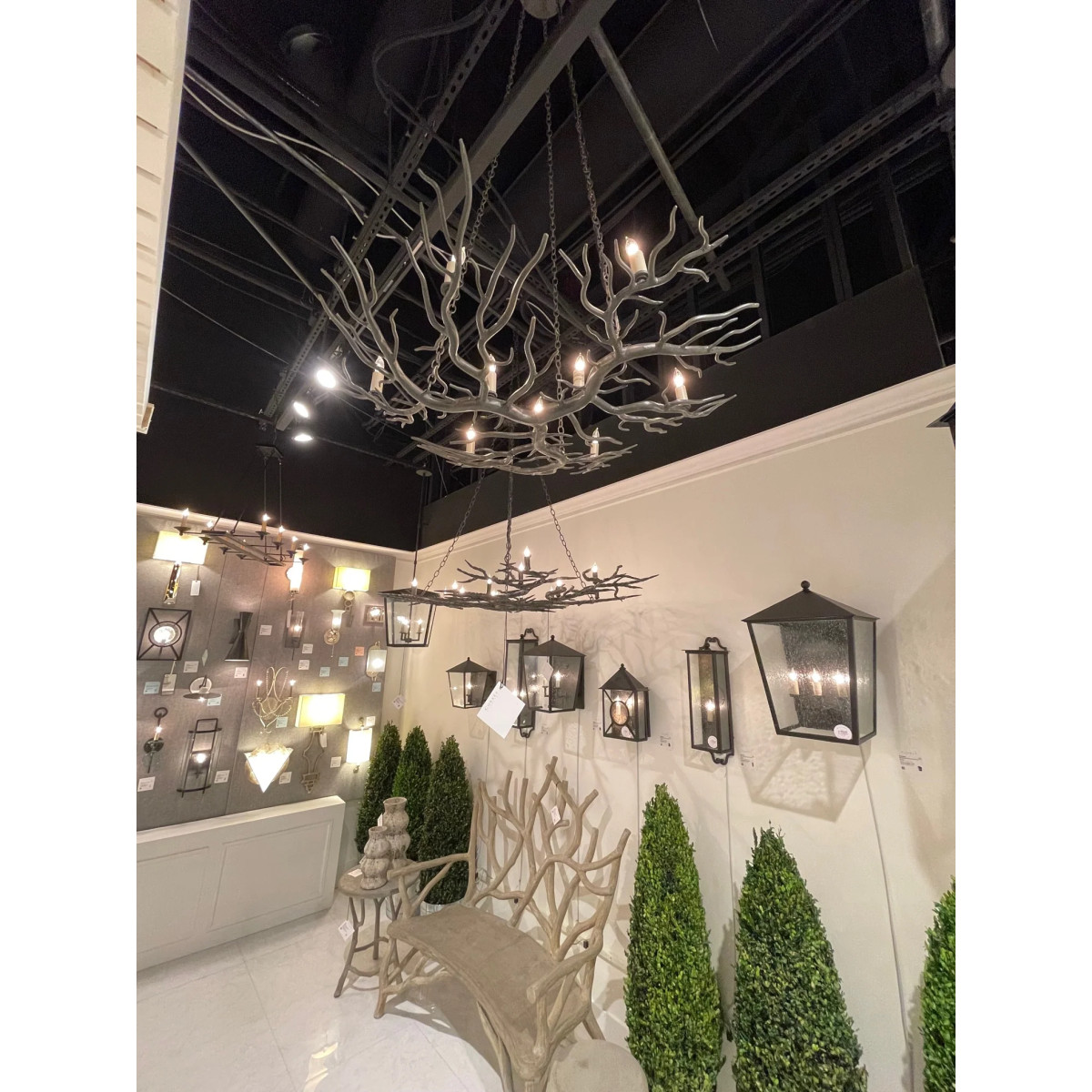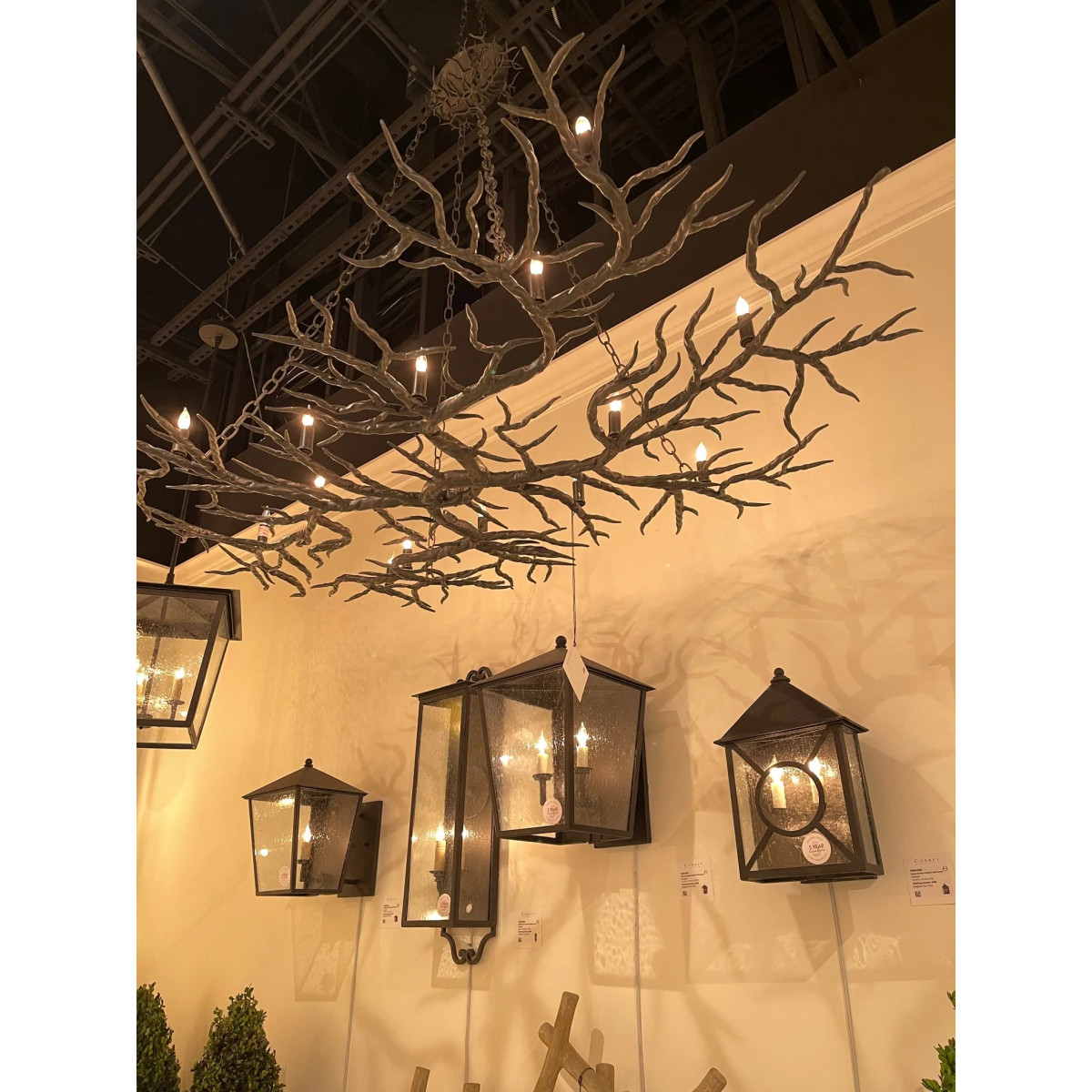 Breathtaking at first sight, the Rainforest Chandelier by is impressive both in craftsmanship and scale. Fourteen lights are nestled within the hand-forged iron branches of the arms, highlighting the Rustic Bronze finish."