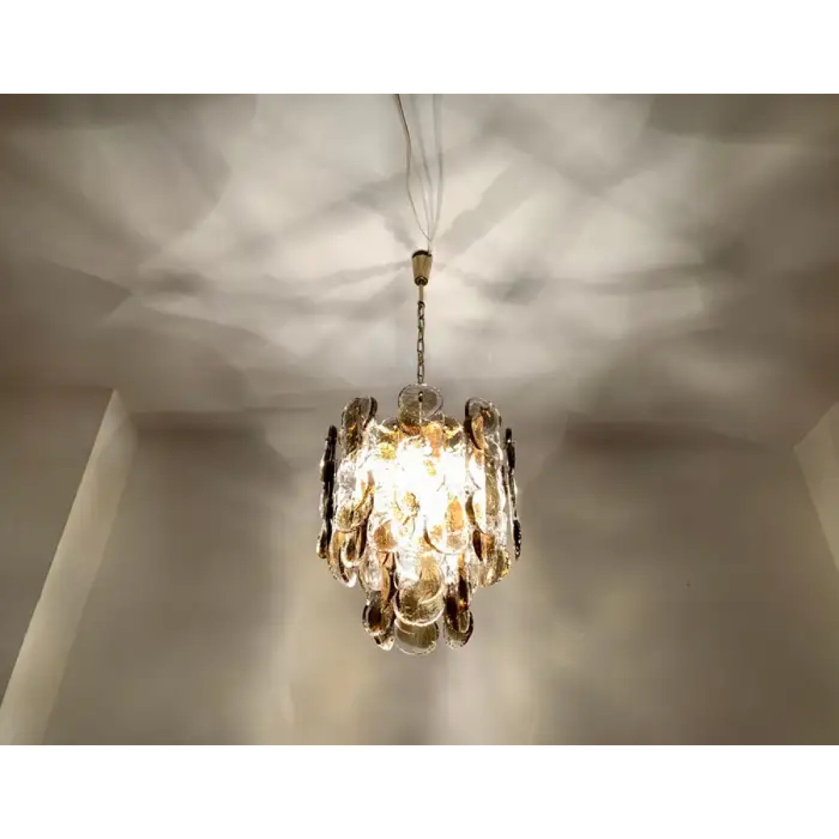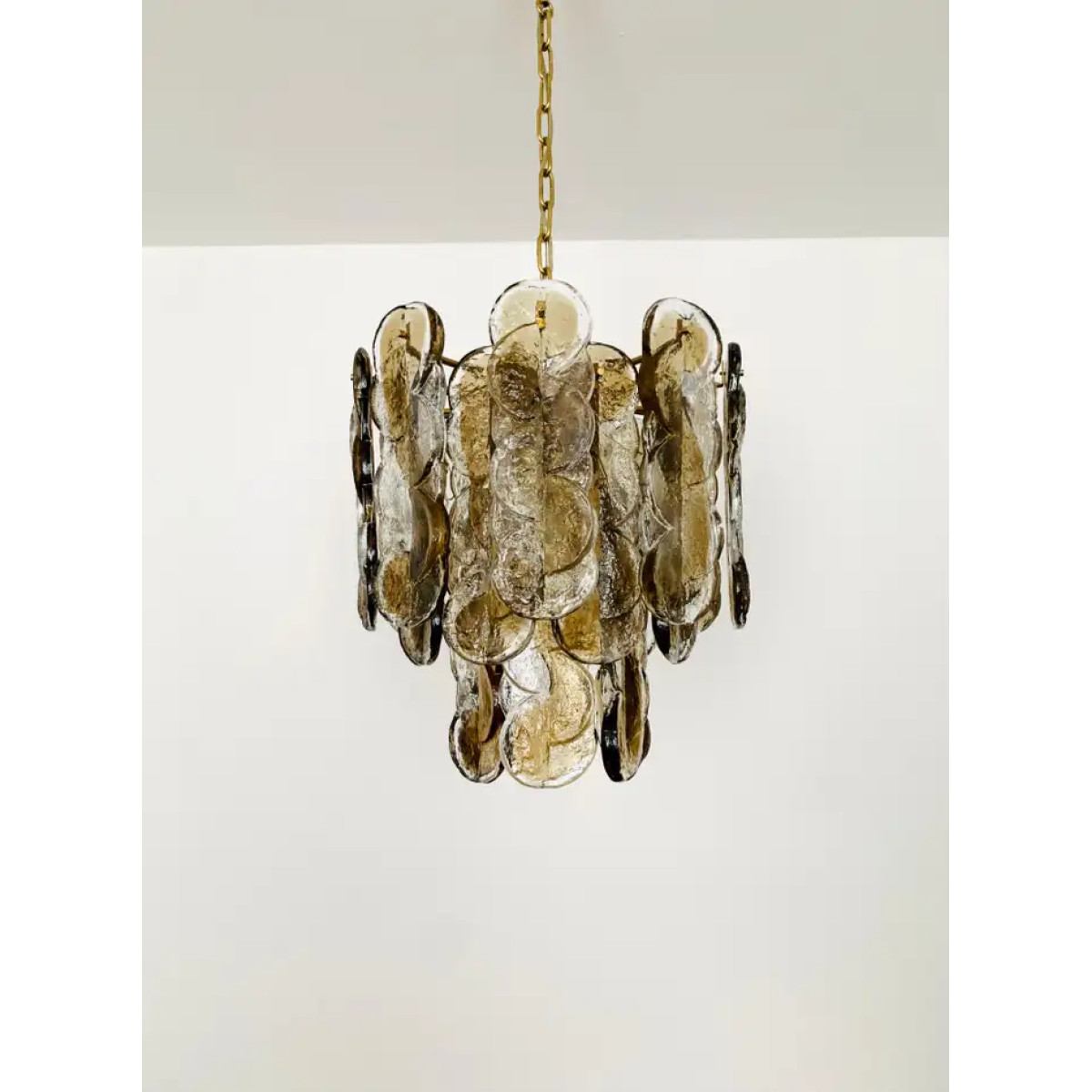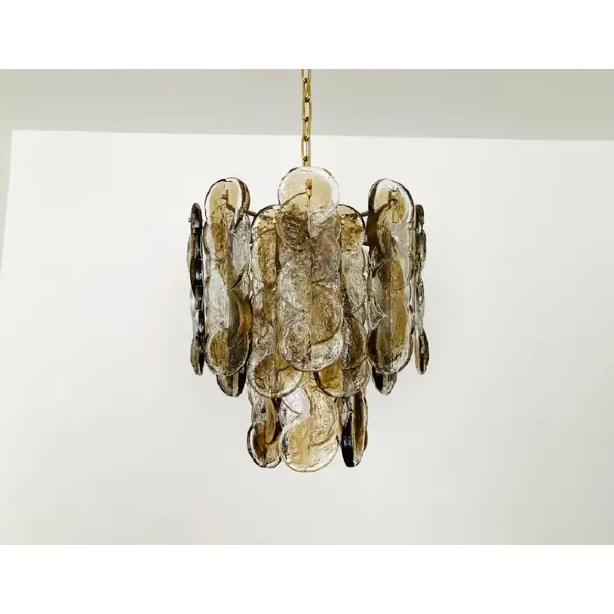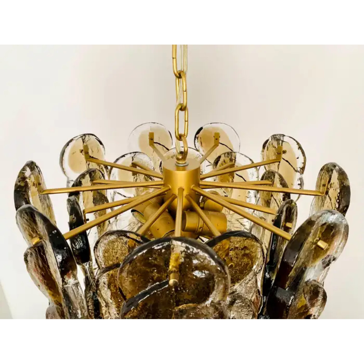 Stunning CITRUS chandelier by Kalmar from the 1960s. The 18 beautifully shaped and heavy smoked glass elements spread an impressive sparkling play of light. High quality.