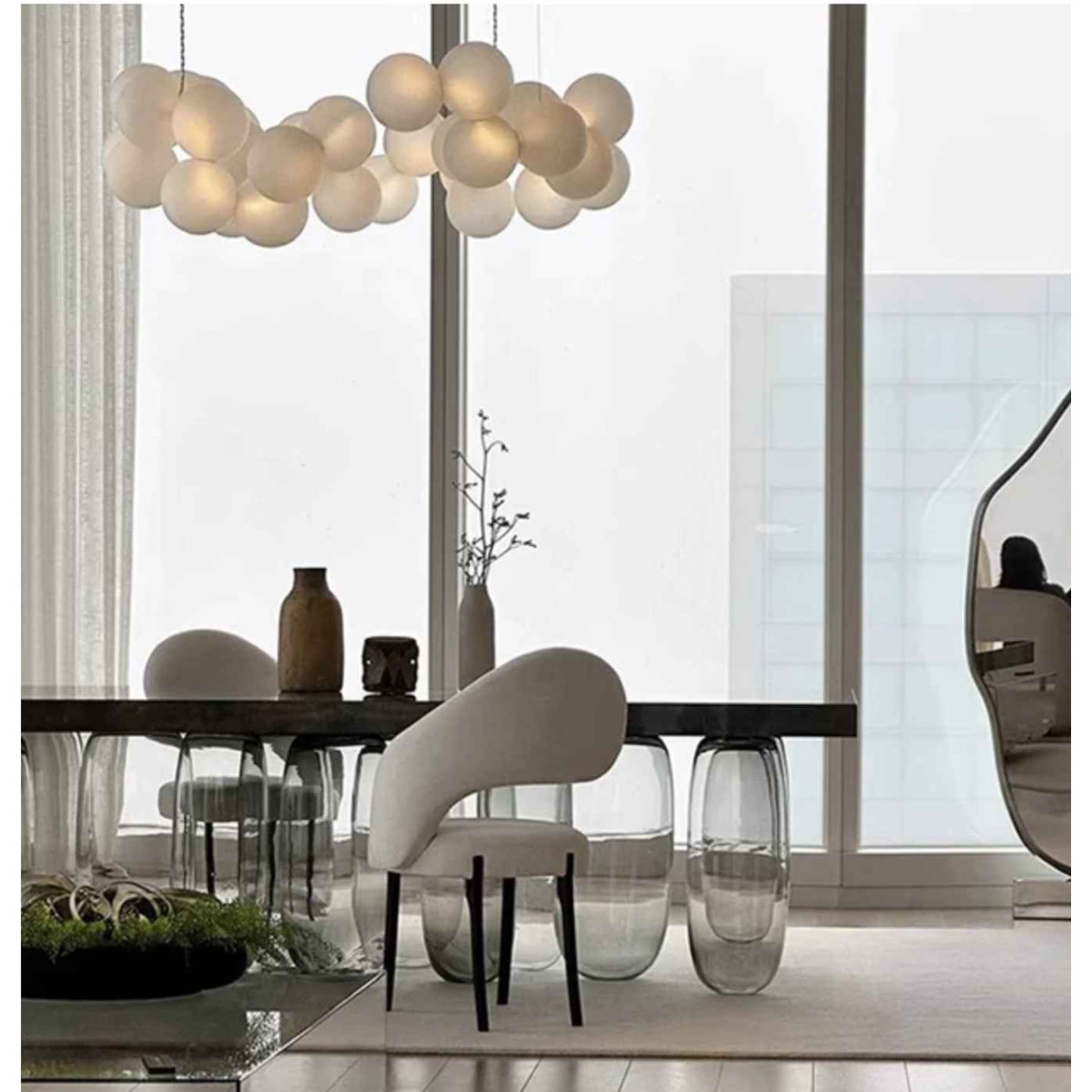 The Alordo White Glass Chandelier is a striking and elegant lighting fixture that adds a touch of modern sophistication to any interior space. Featuring a series of frosted glass globes, this chandelier is designed to combine functionality with artistic flair. Its clean lines, minimalist aesthetic, and luxurious materials make it an ideal centerpiece for various rooms, from dining areas and living rooms to large hallways and open-plan spaces.