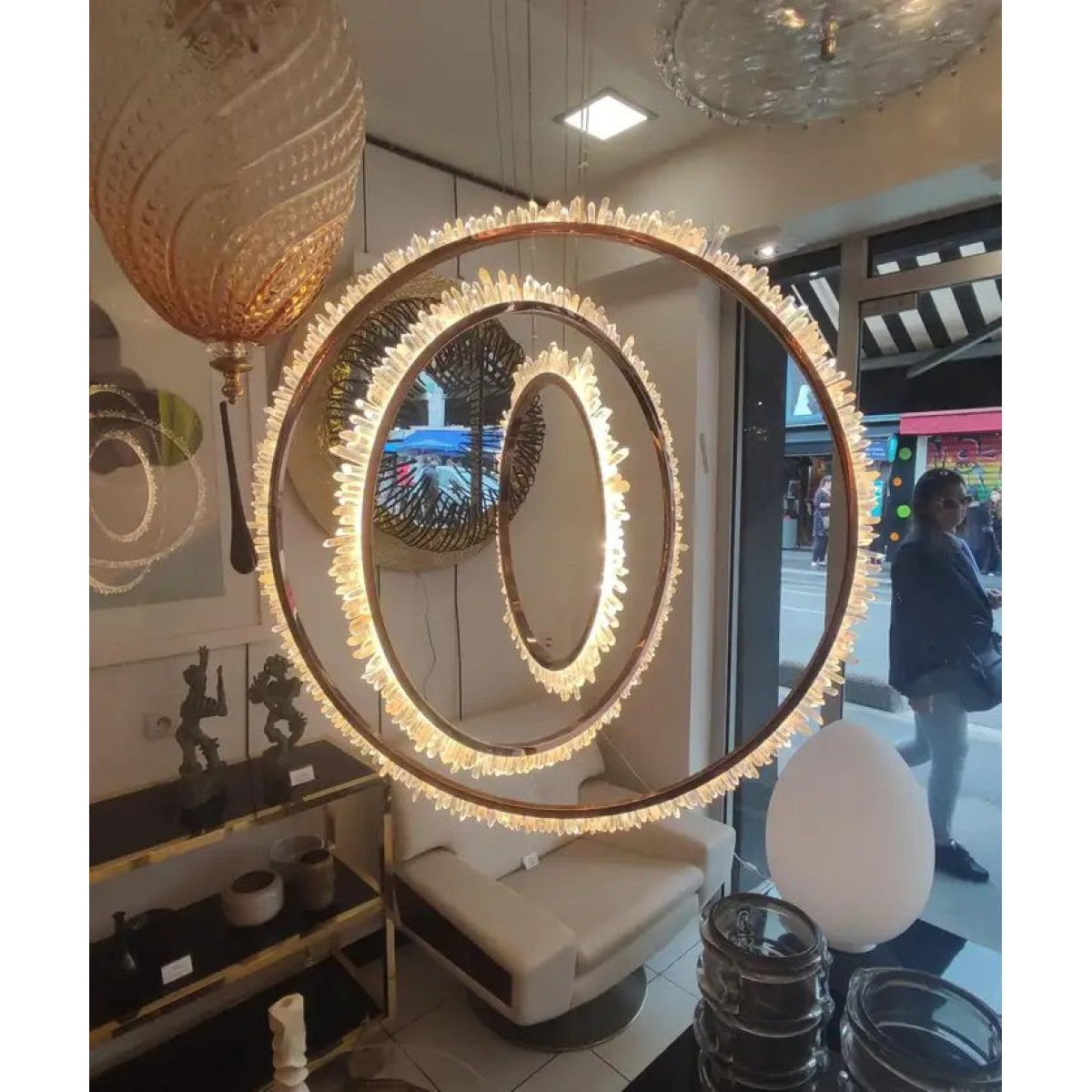 Tags: ps1649, rock, crystal, polished, brass, circles, ceiling, contemporary, handmade, custom, lighting, design, light,