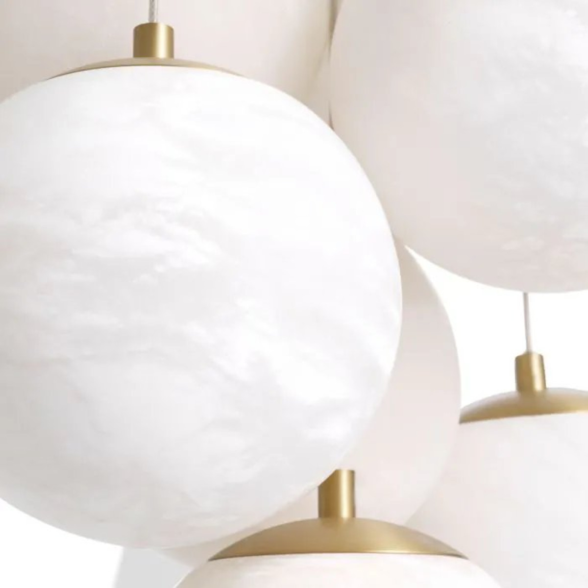 Illuminate your decor with the Chandelier Sphinx L, where antique brass meets the celestial beauty of alabaster in a harmonious dance of luxury and sophistication. Carved from solid alabaster, its adjustable wires allow for custom compositions, enabling you to create a truly unique and captivating design. Let the Sphinx Chandelier L be the statement piece that reflects your impeccable taste and infuses your home with artistic mastery.
