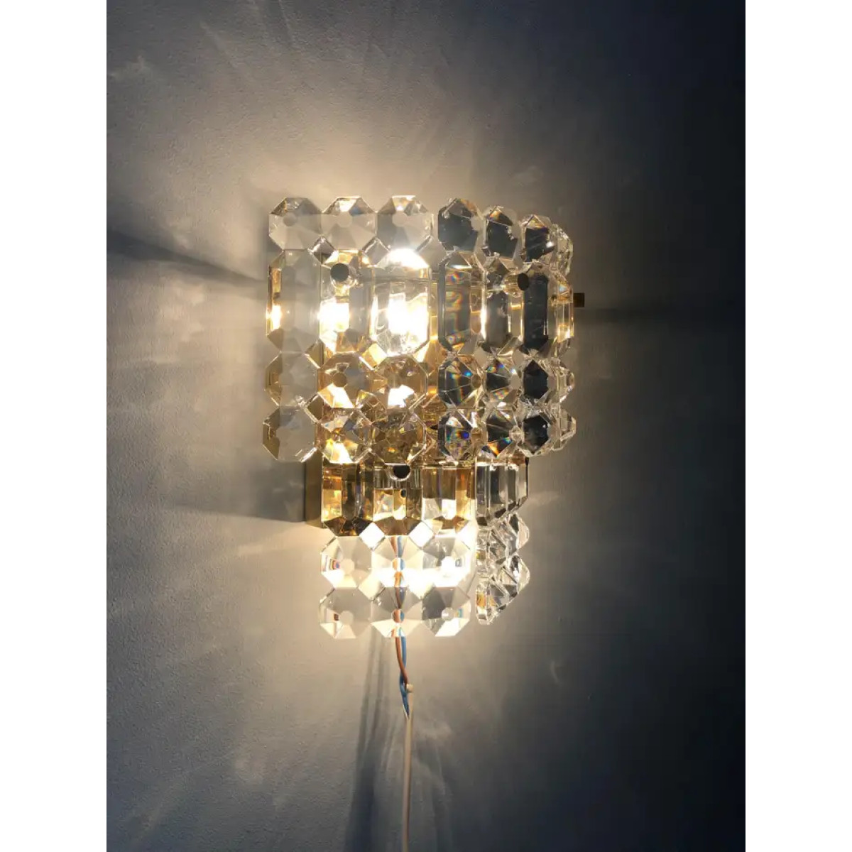 Lovey and stunning Mid-century Pair of Kinkeldey crystal Wall Sconces. These Wall Sconces were manufactured during the 1970s in Germany by Kinkeldey. Each Wall Sconce is composed by five crystals and brass structure. A professional electrician has checked and prepared the piece to operate in US, UK and EU.