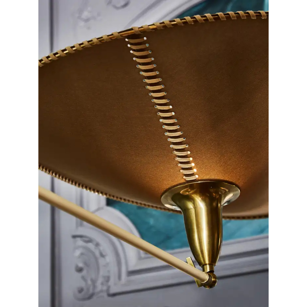 Beautiful chandelier by Diego Mardegan for Glustin Luminaires, this other version of the spider chandelier has longer arms on the sides giving the oval shape. The metal arms painted in white and shiny brass accents are toned downed by the parchment paper shades covered with taupe crepe. Adjustable sconce, allowing the shades to be put at different angles.