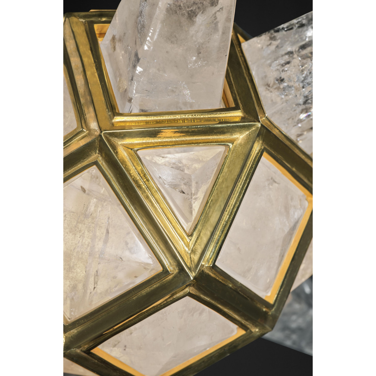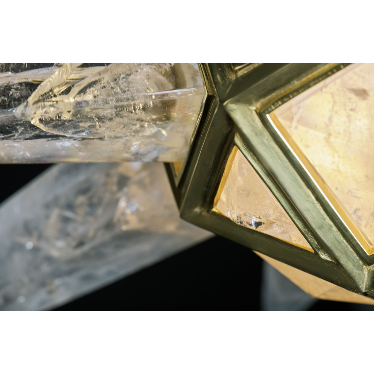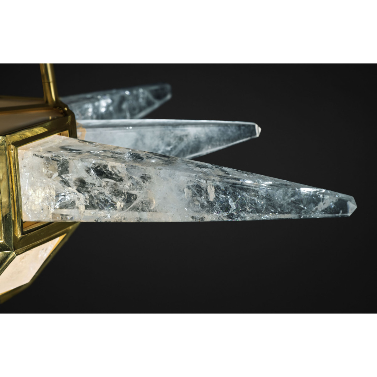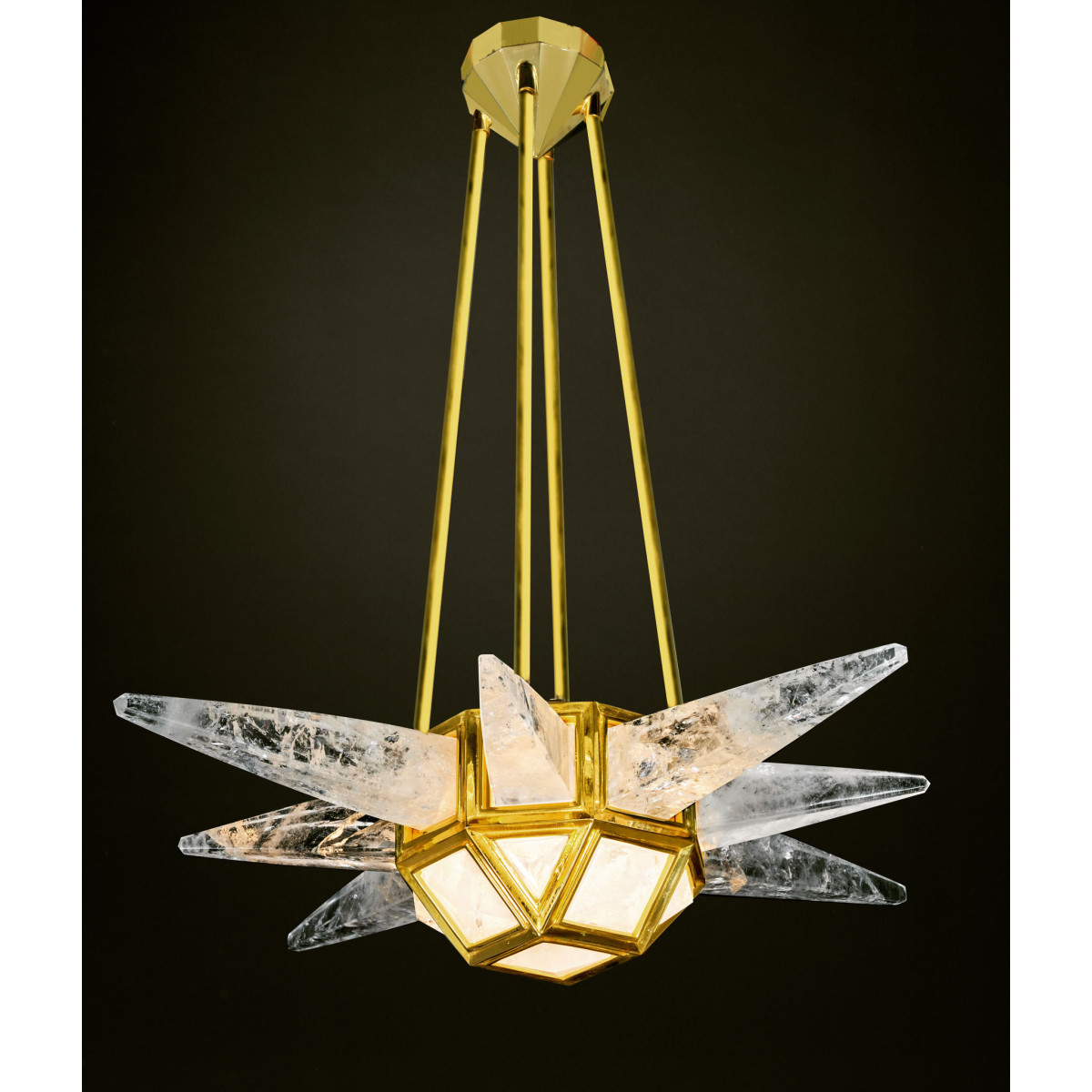 Rock crystal lighting model Starburst by Alan Mizrahi Lighting. Fixture made in bronze in France. 24 karat gilding, same used by a lot of French jewelry brands. Could be made in different finishes (nickel, antique brass, silver, black). Total height will, of course, be adjustable at your request.