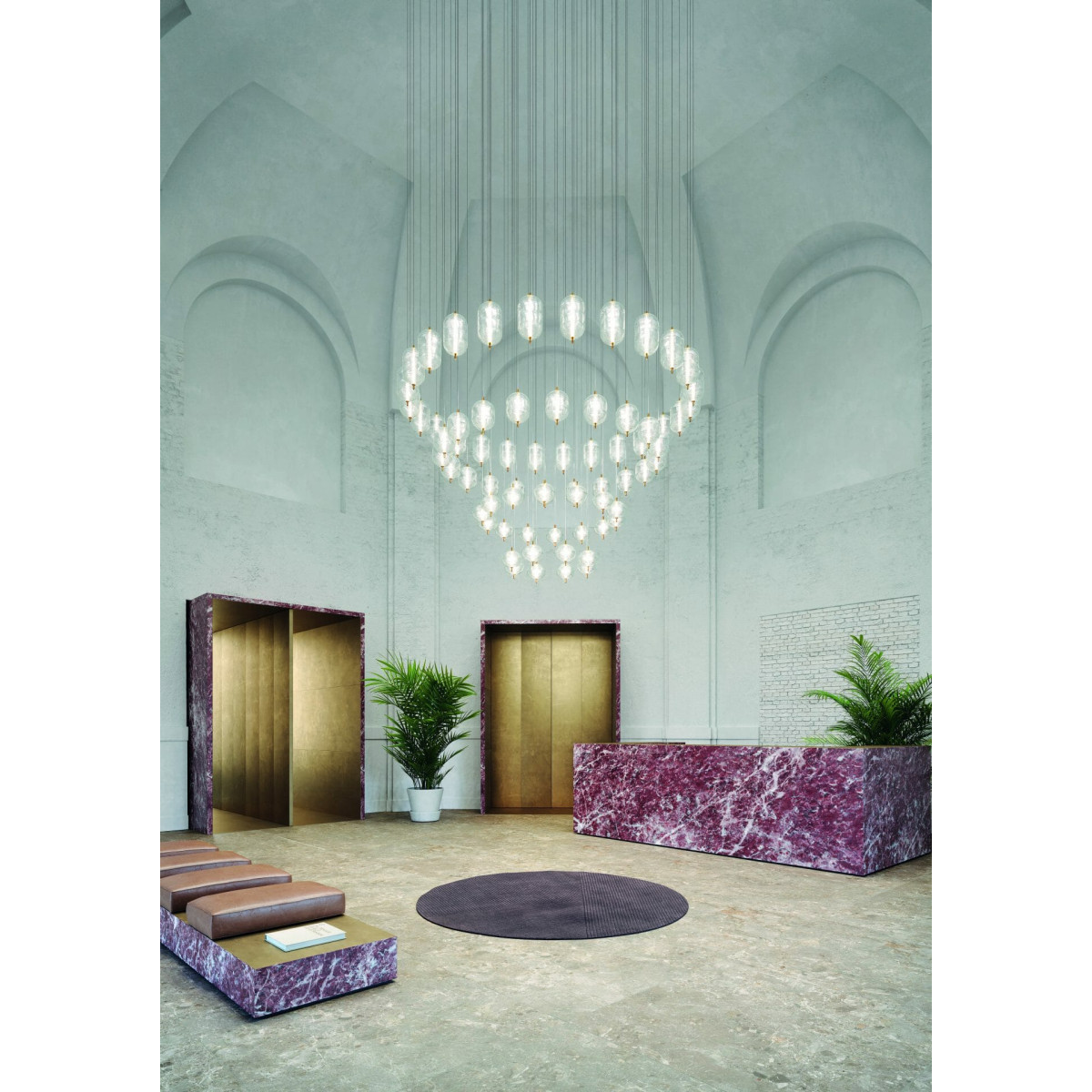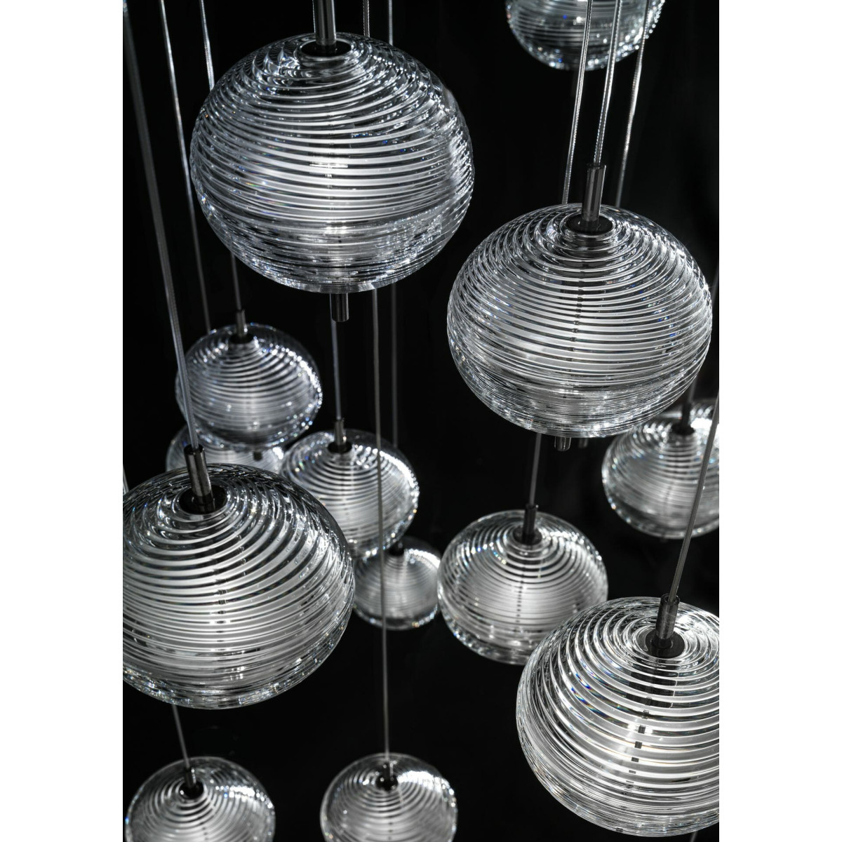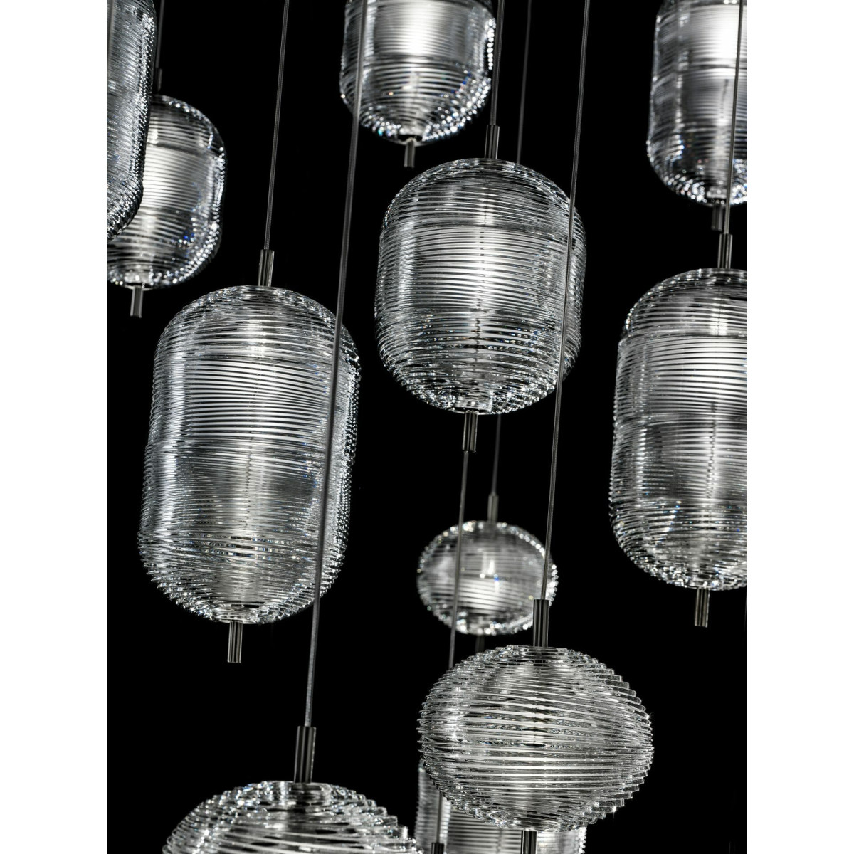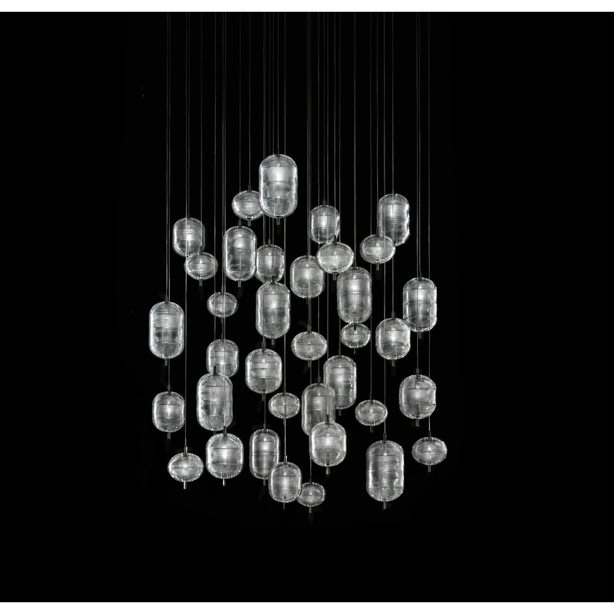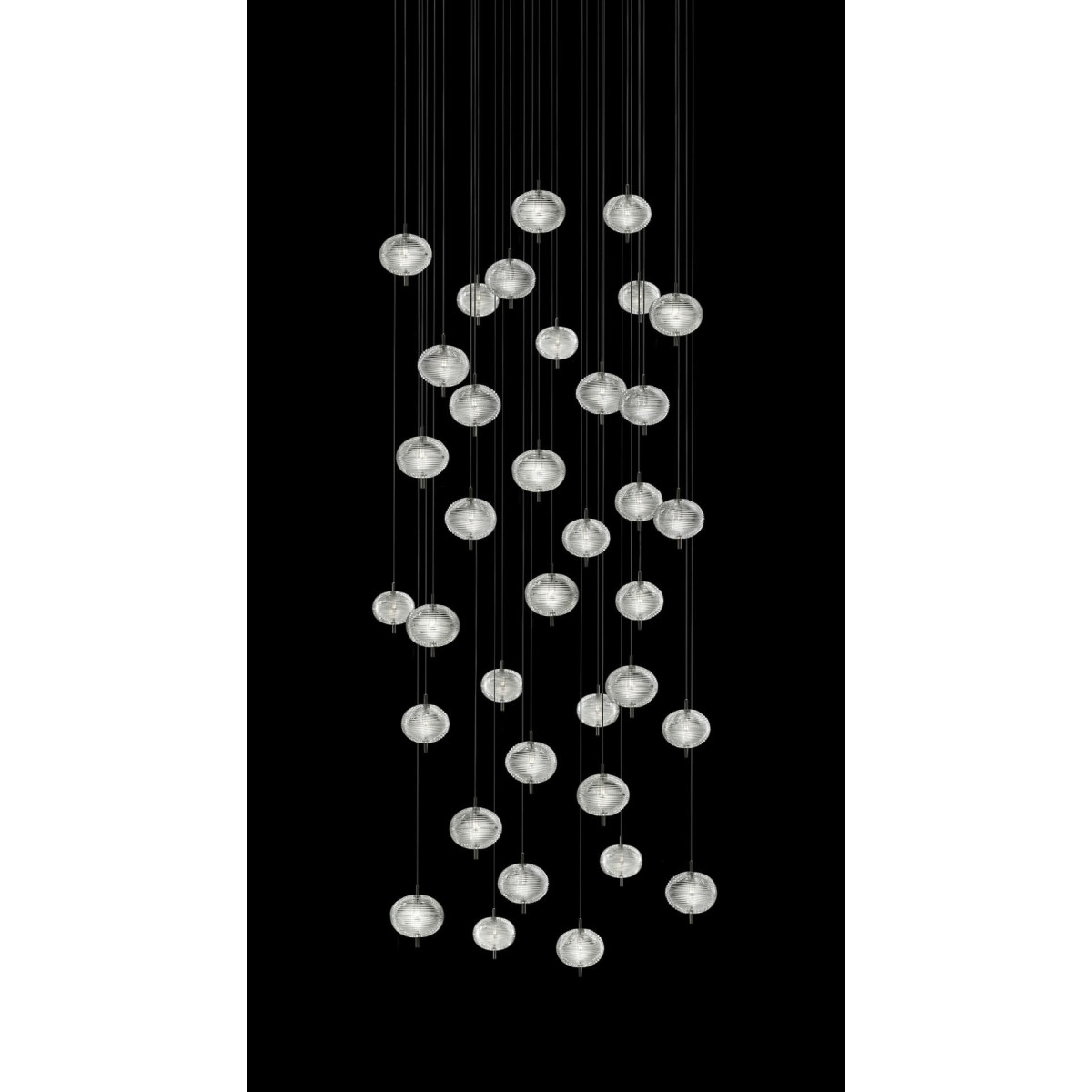 The unique design of the Jefferson lamp recalls the iconic music and images of the 60s in psychedelic artwork. Effect atmospheres, interpreted through the precious Bohemian crystal with shapes with different elliptical facets that allow the creation of various versions of the lamp in a multitude of combinations with infinite and dynamic reflections.