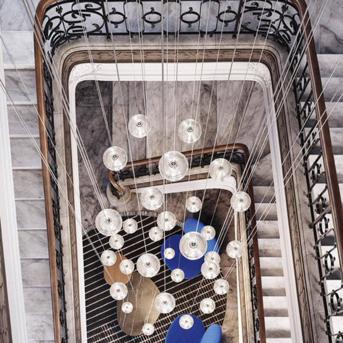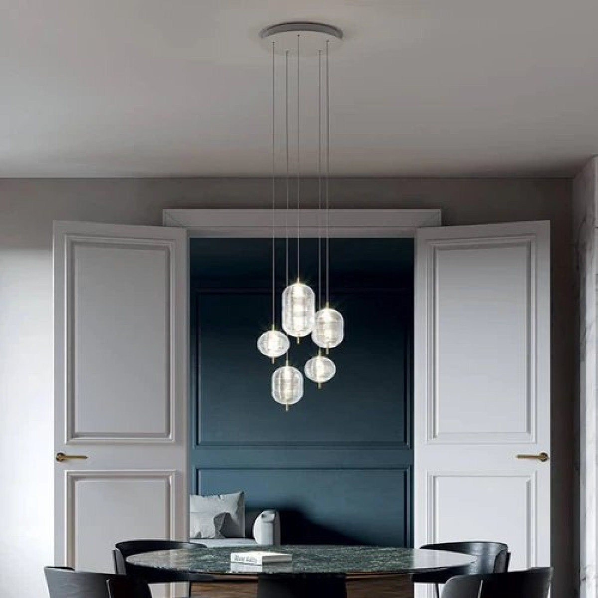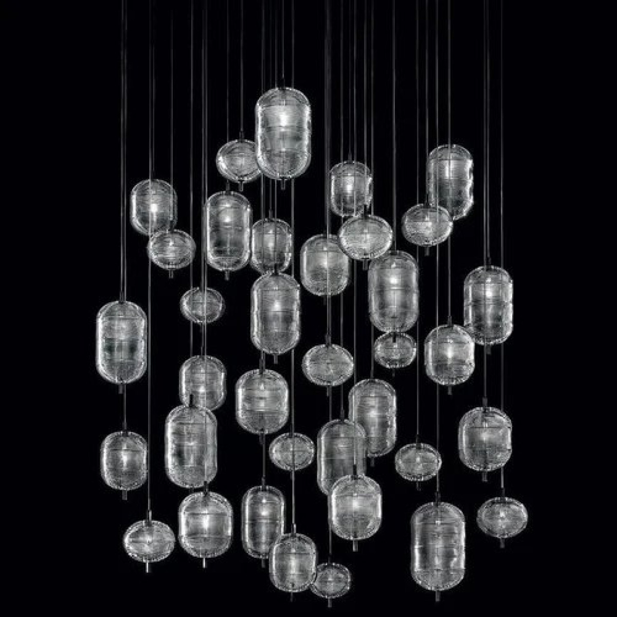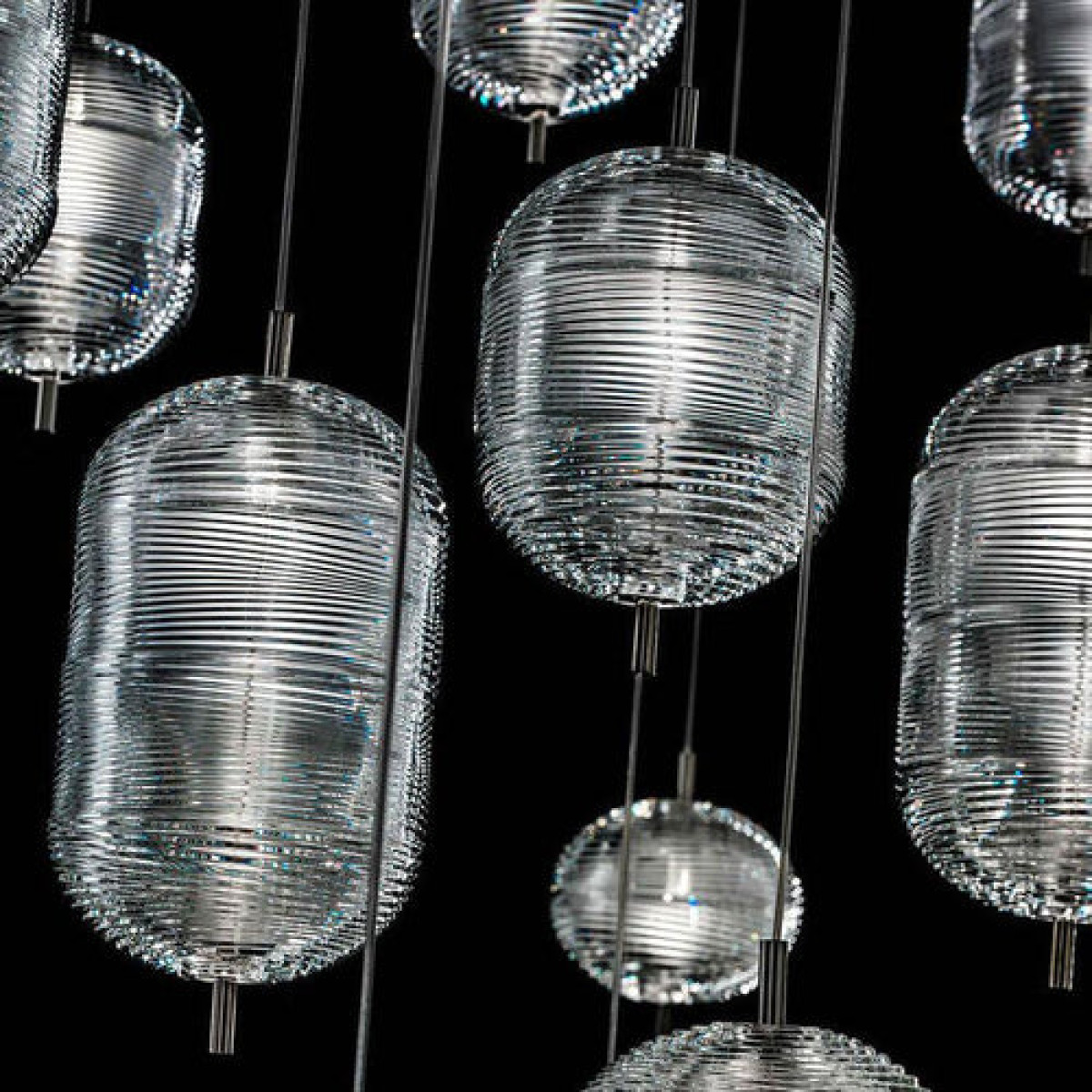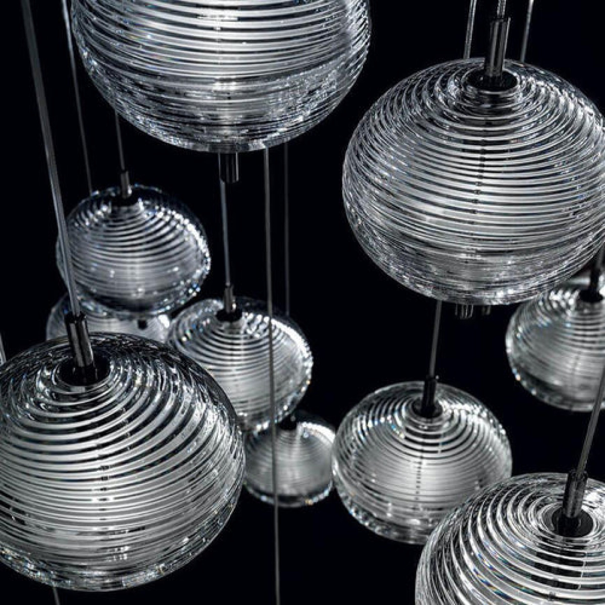 The Lodes Jefferson pendant light designed by Luca Nichetto is reminiscent of music and iconic images in psychedelic works of art from the 1960s. The vortex motif decorating the diffuser is embellished by the timeless classicism of Bohemian crystal, which diffuses evocative atmospheres of light. Dynamic in its many sizes and multiple compositions, Jefferson’s elegance keeps up with the excellent performance of LED interior lighting.