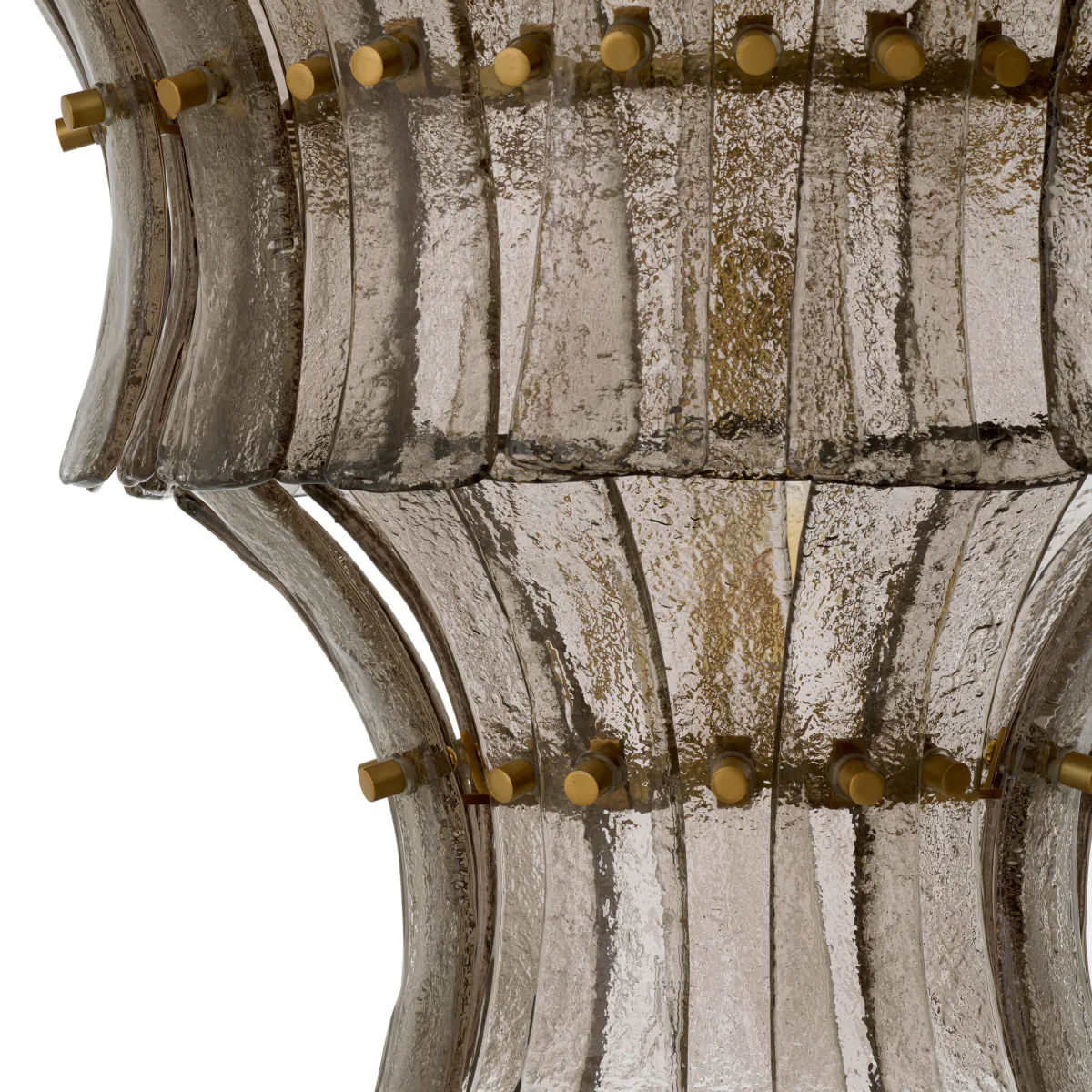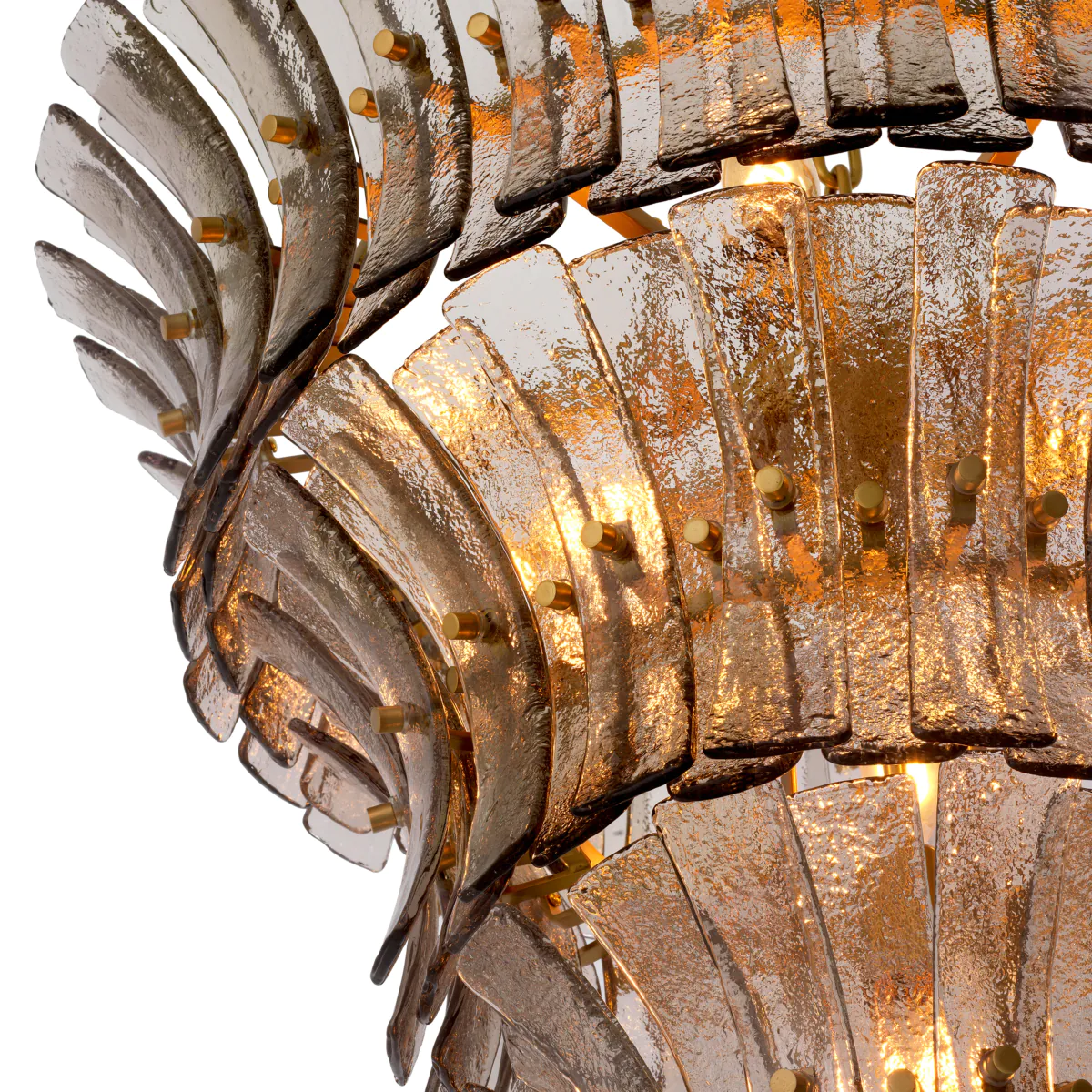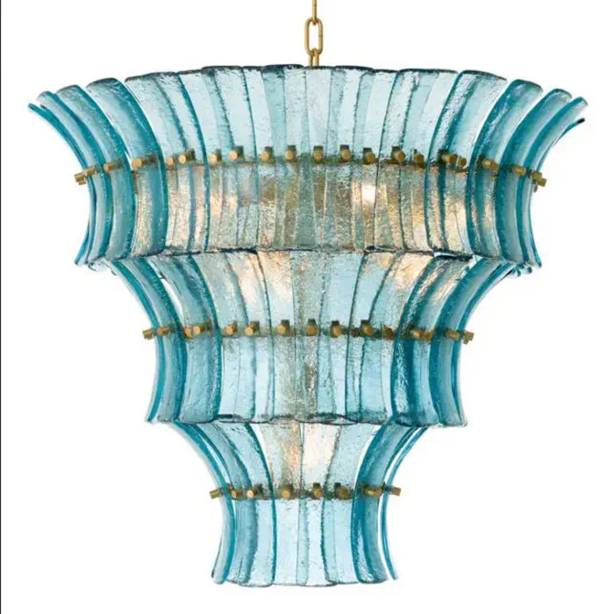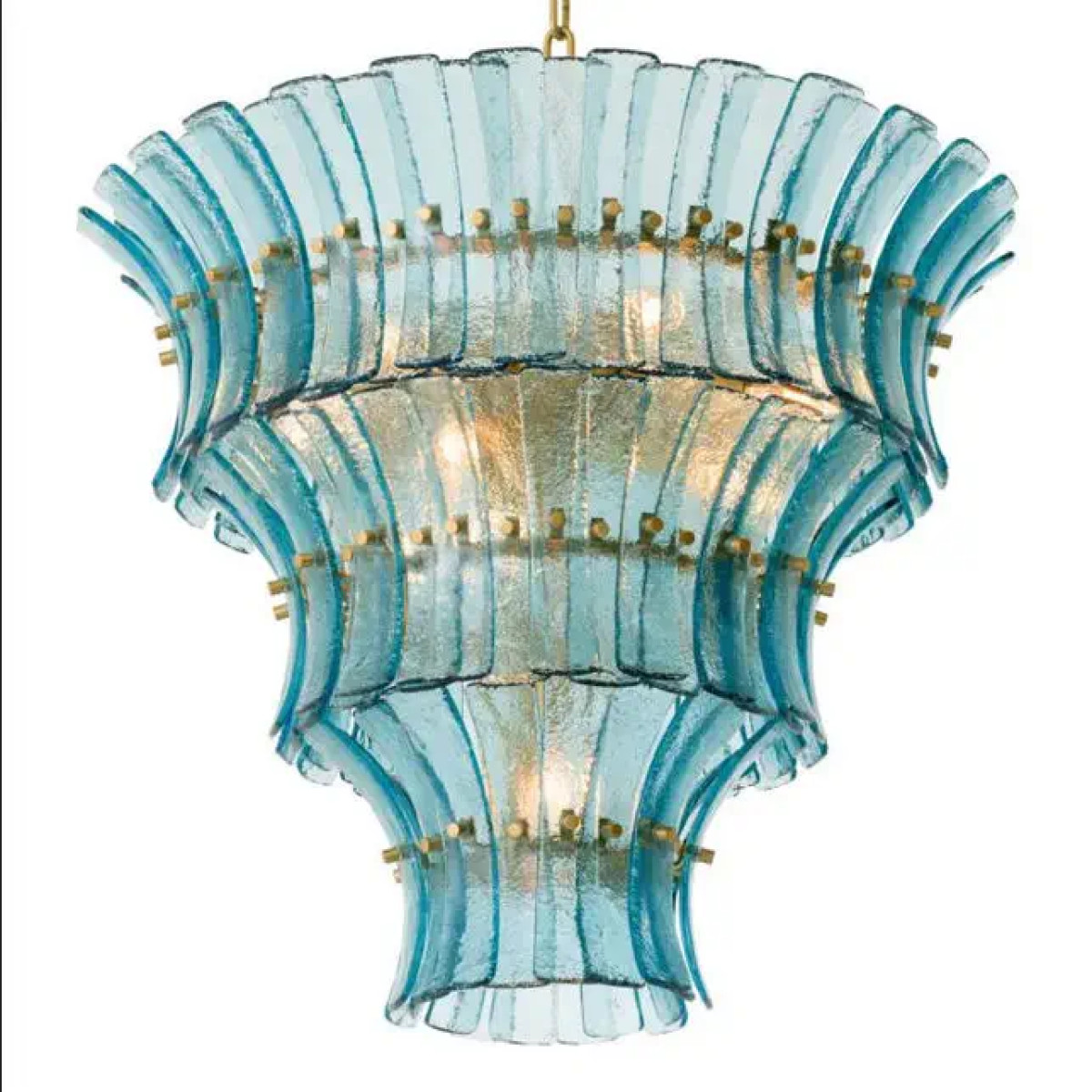 Elevate any interior with the Eichholtz Toscano Chandelier’s exclusive hand-blown blue glass. The artisan craftsmanship of this antique brass-finished lighting piece casts a serene glow, exuding sophistication and enhancing the luxurious ambience of diverse spaces with Eichholtz's signature allure.