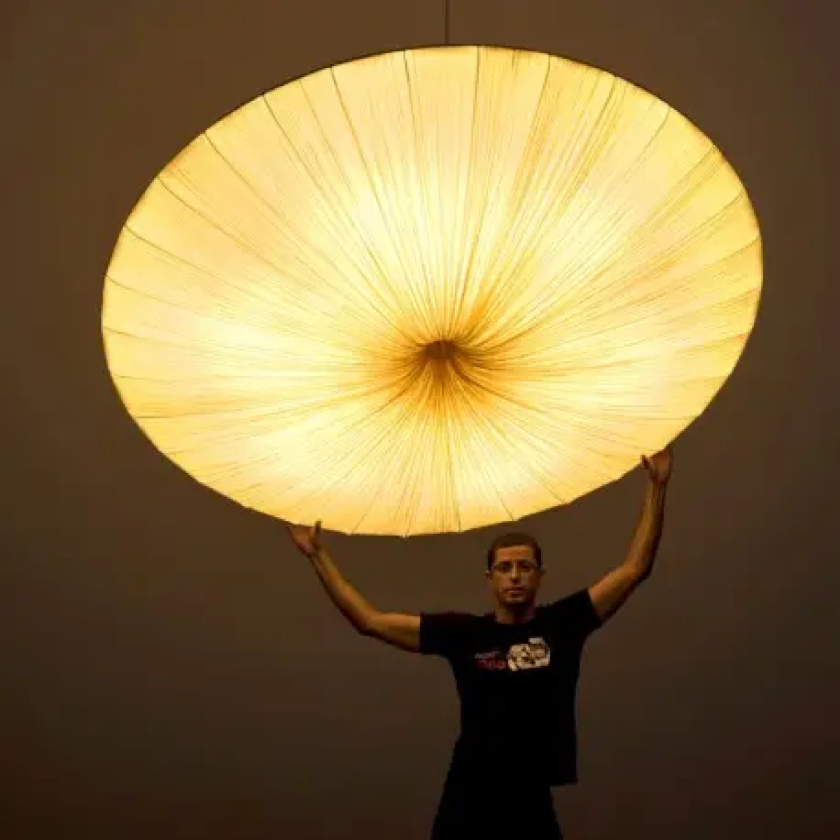 These perfectly round shaped discs feature a striking combination of pure simplicity and glamour. Stand By elegantly radiates brilliance across large areas and adds a unique refinement to any space. The multiple sizes and colors of the Stand By Pendant make it a versatile and adaptable contemporary lighting collection. They can be placed as a singular lamp or as a grouped cluster.