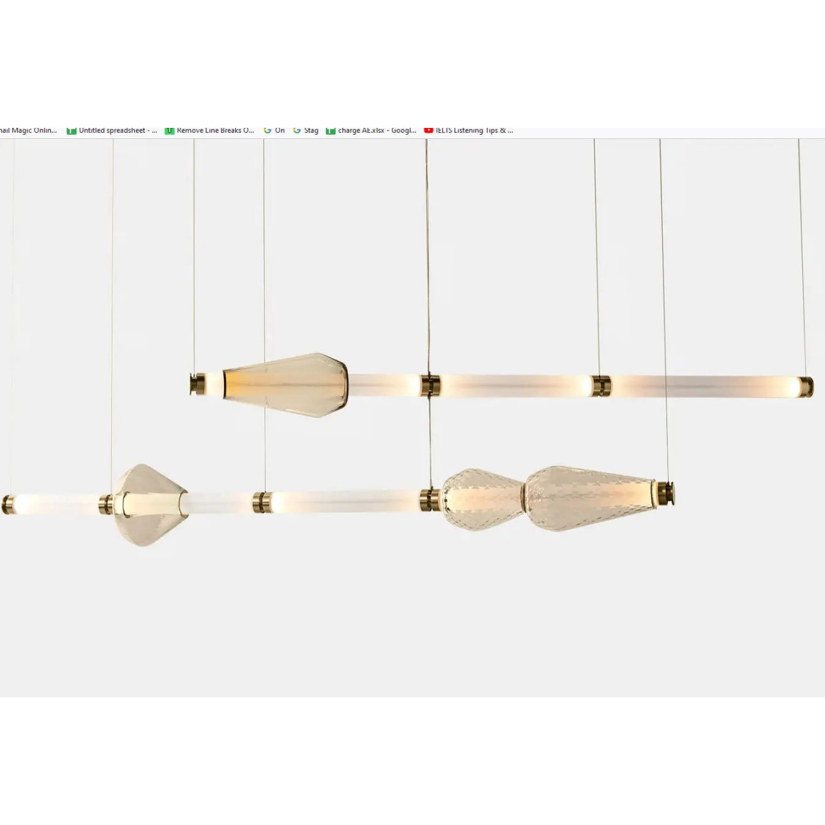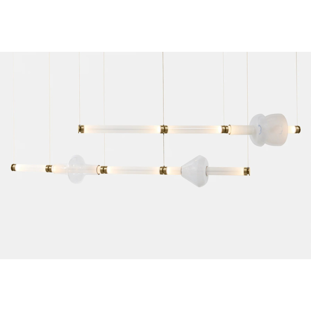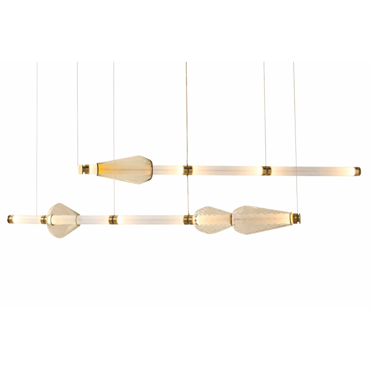 The Luna Kaleido XL 2 Tier Chandelier plays with texture, color and shape to distort light and create magical optical illusions when looking through the glass. Option B comes with an Aras, Orion and Lyra glass bead configuration.