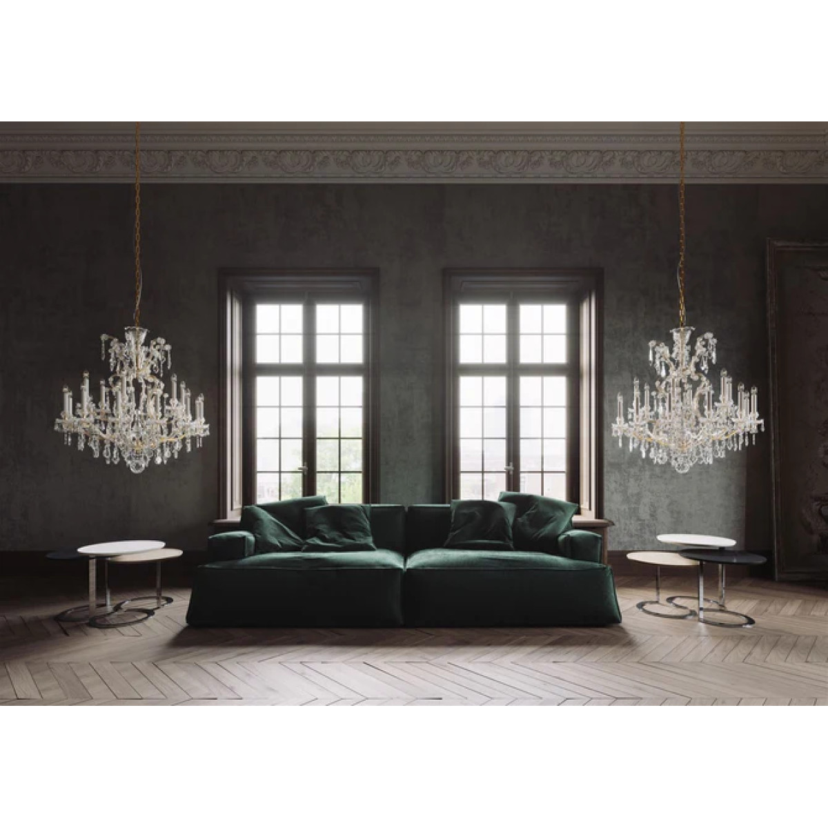 The Maria Theresa is a chandelier of sumptuous curves and shimmering crystal pendalogues. This chandelier illuminated the majestic coronation of Maria Theresa in 1743, who is said to have fallen in love only twice in her life, first with her husband, Francis I, and secondly with this mesmerizing chandelier. Found at Prague Castle and the Schönbrunn Palace, amongst others, this is a truly regal light piece.