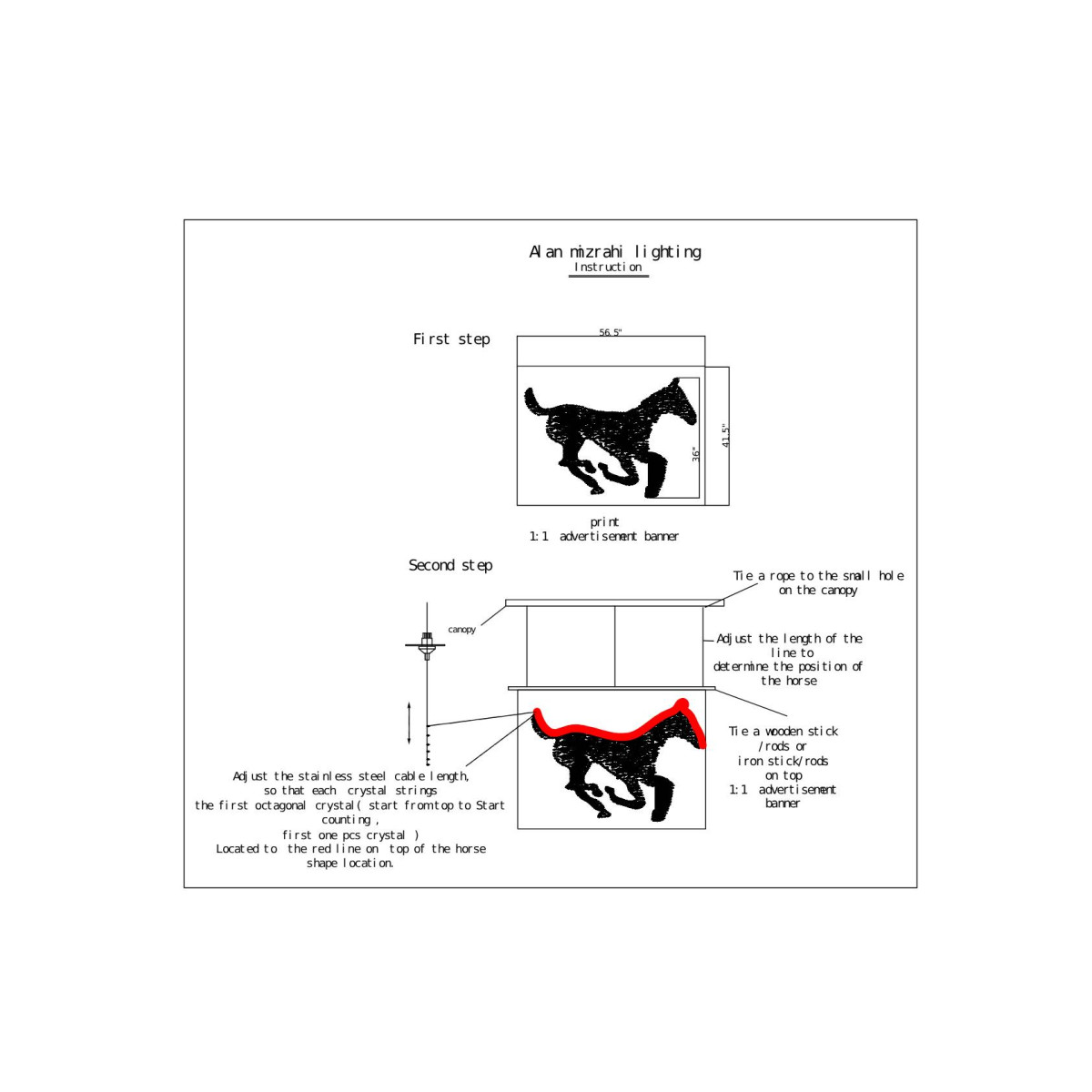 This custom horse crystal sculpture is an elegant ceiling-mounted installation, featuring hundreds of fine crystal strands suspended in precise alignment. The crystals are arranged to form a striking silhouette of a galloping horse, capturing a sense of motion and vitality. The design uses negative space and strategic spacing to give the figure depth and a three-dimensional appearance. A sleek, modern overhead mount supports the delicate strands, making the horse appear to float in midair. The result is a captivating blend of artistry and craftsmanship, perfect as a centerpiece for a luxury interior.