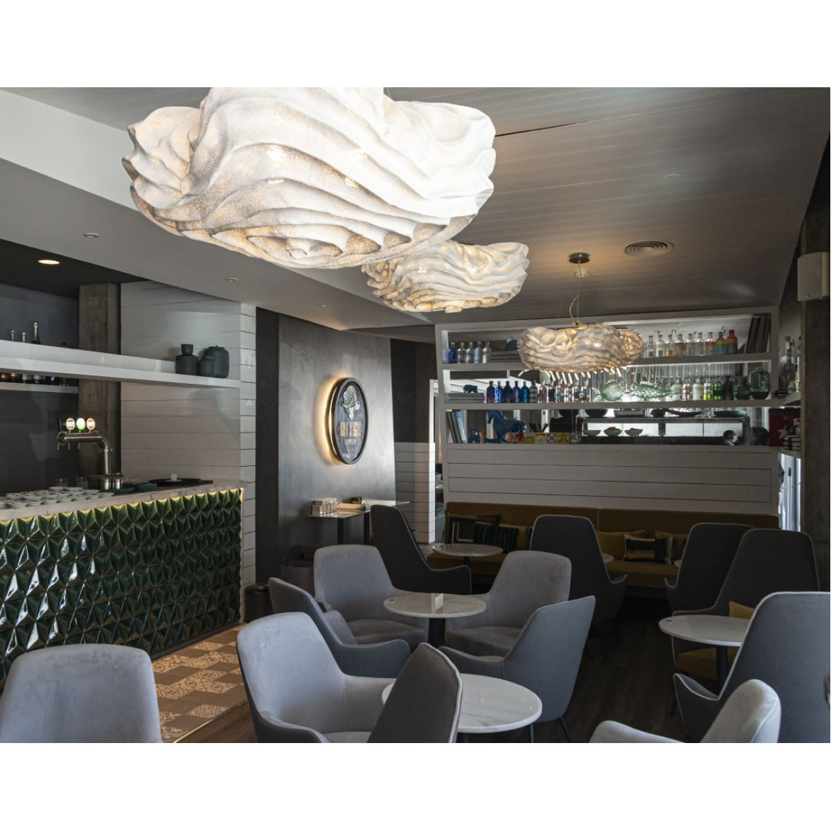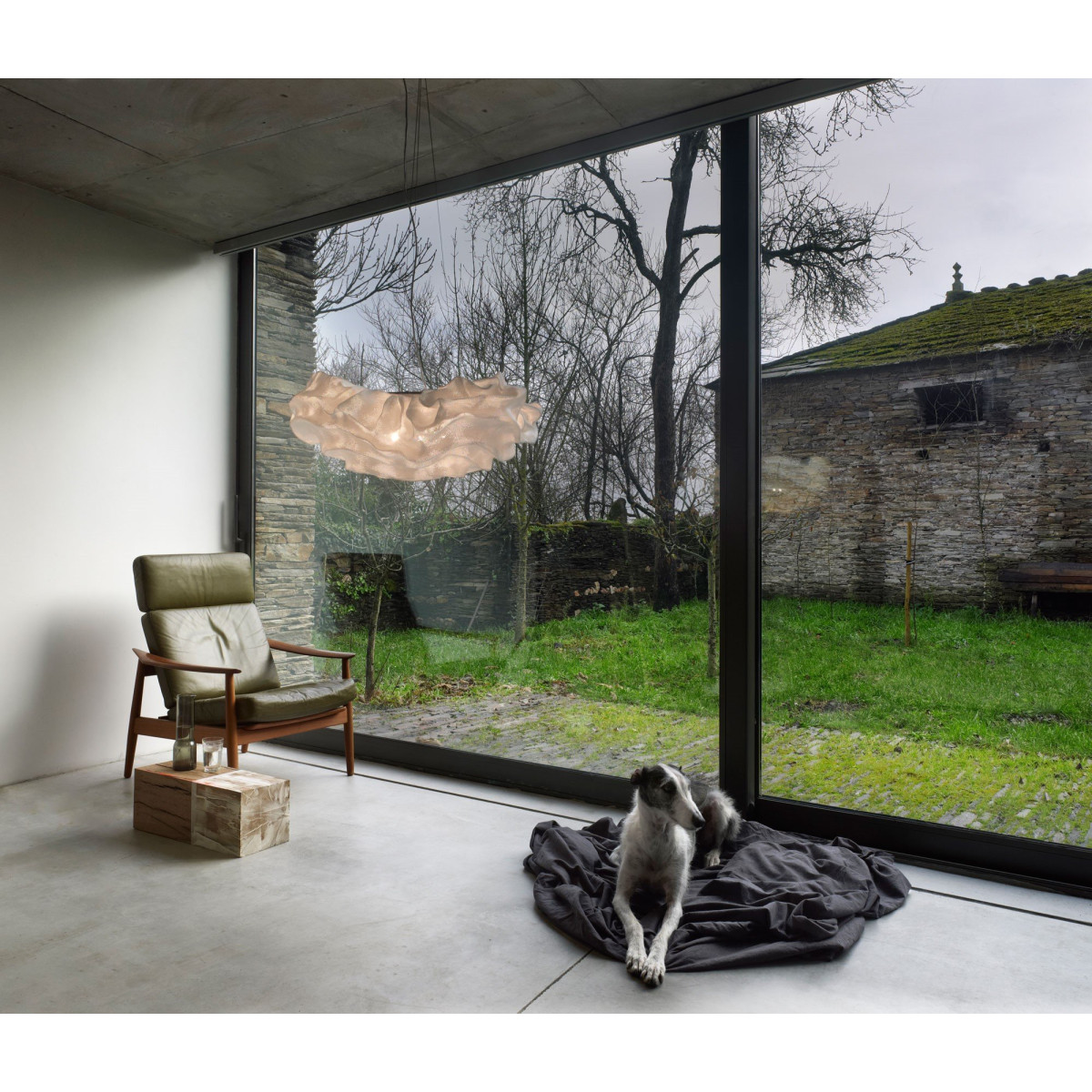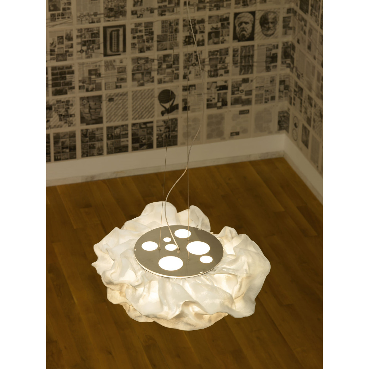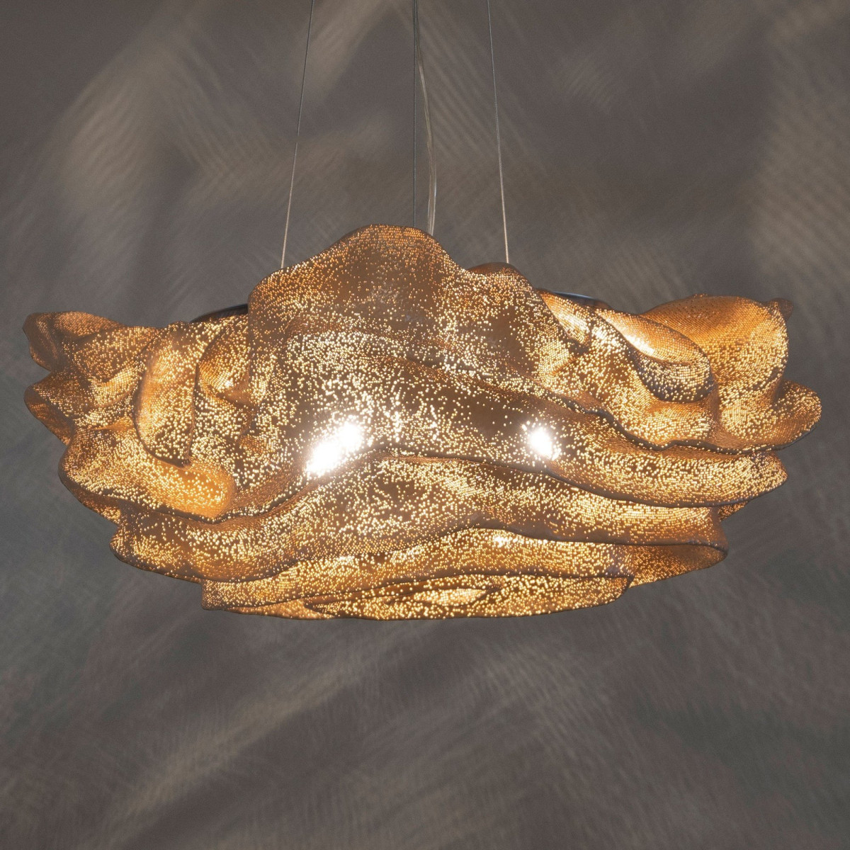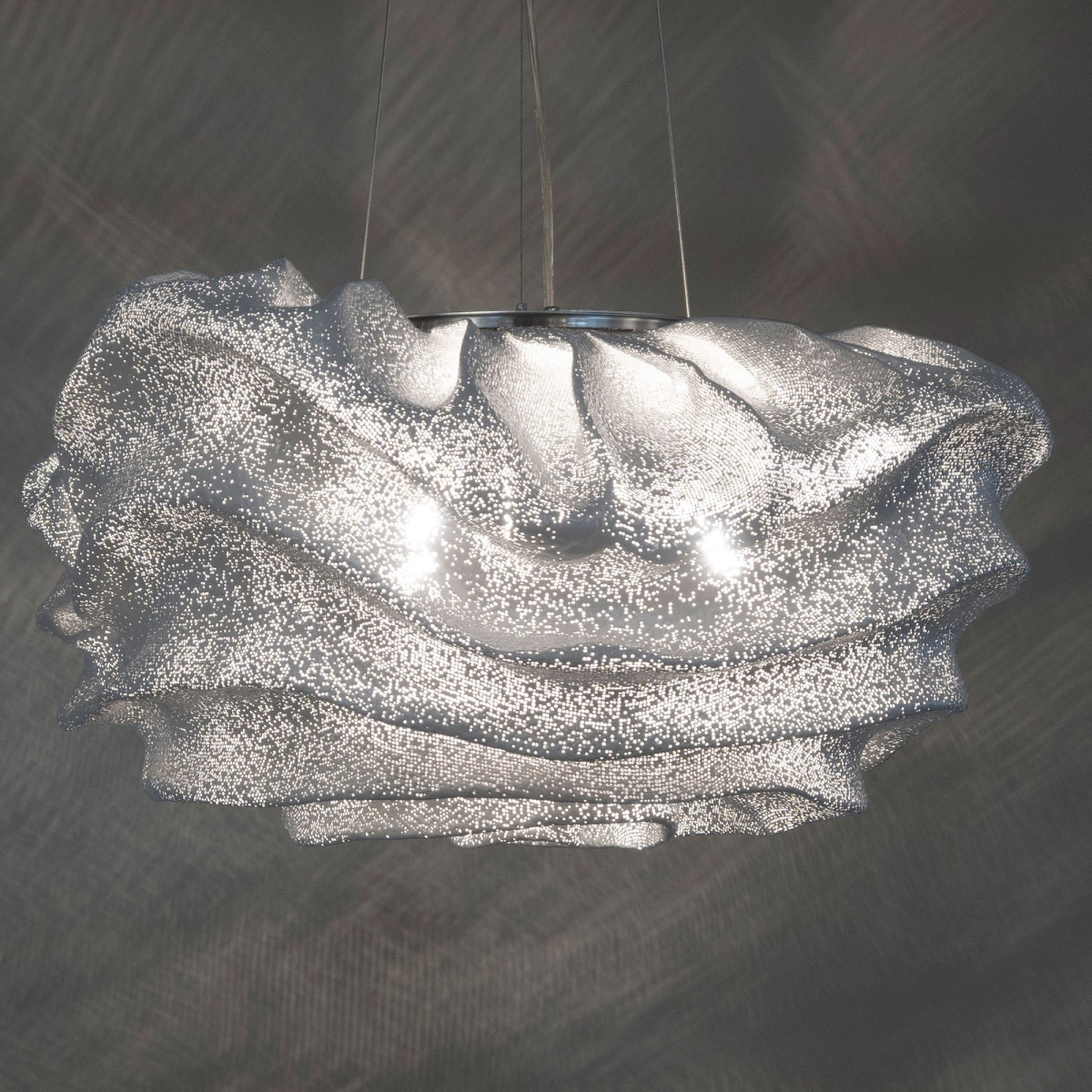The Nevo pendant lamp is a masterpiece of design and innovation. Made from painted stainless steel mesh, it is extremely malleable and features unique organic shapes that are hand-shaped to give each lamp a one-of-a-kind design. The folds and curves of the lamp create a living, ever-evolving sculpture that also spreads a beautiful light throughout your space.