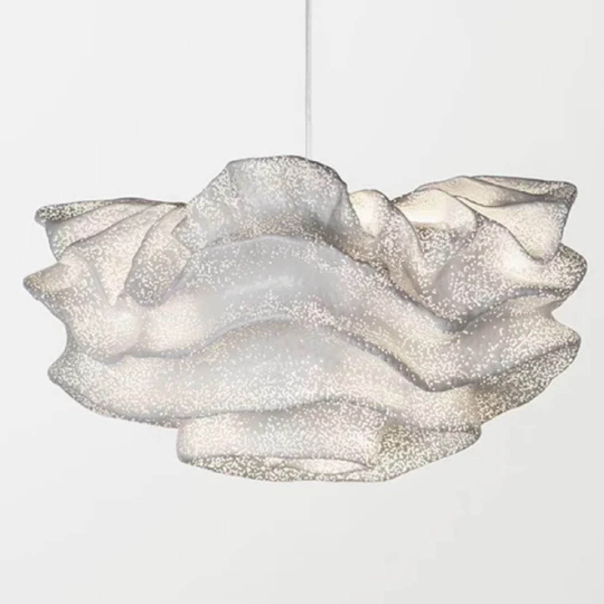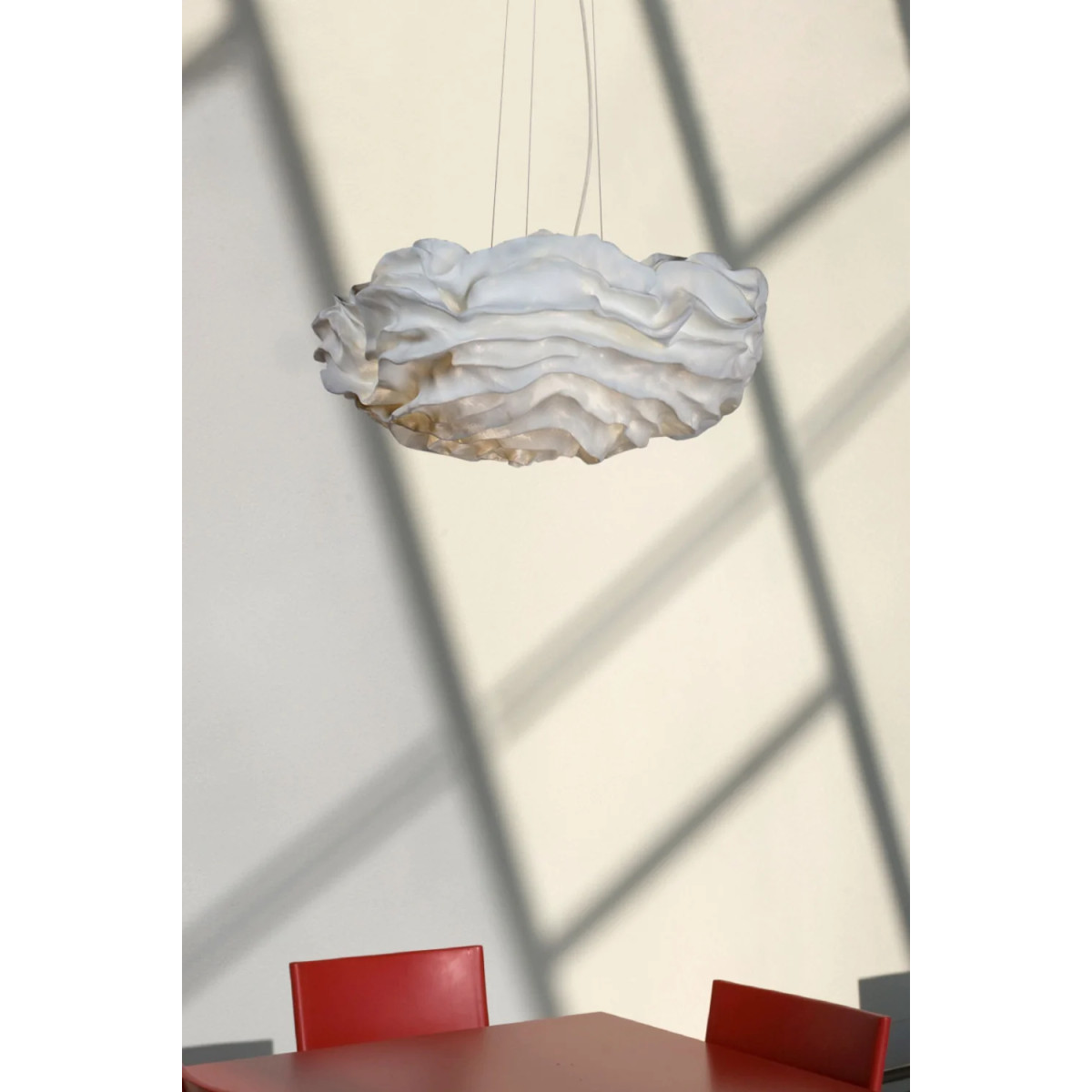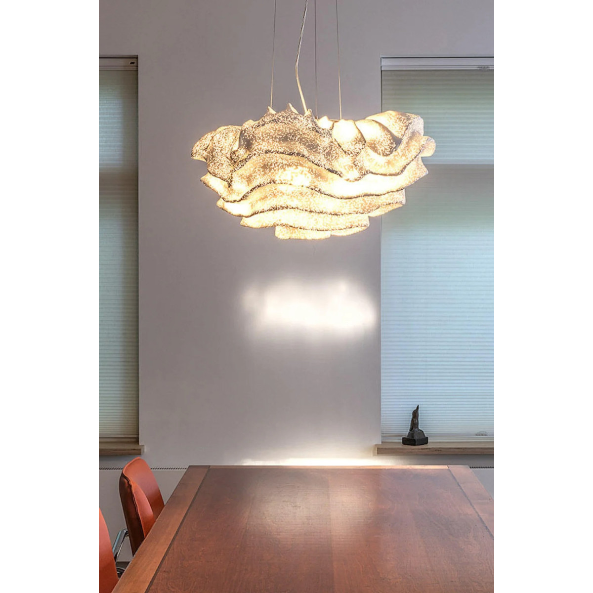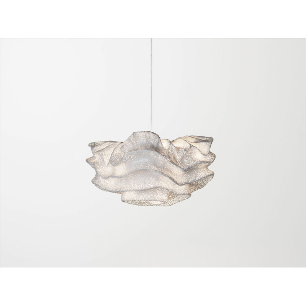 The Nevo pendant lamp is a masterpiece of design and innovation. Made from painted stainless steel mesh, it is extremely malleable and features unique organic shapes that are hand-shaped to give each lamp a one-of-a-kind design. The folds and curves of the lamp create a living, ever-evolving sculpture that also spreads a beautiful light throughout your space.