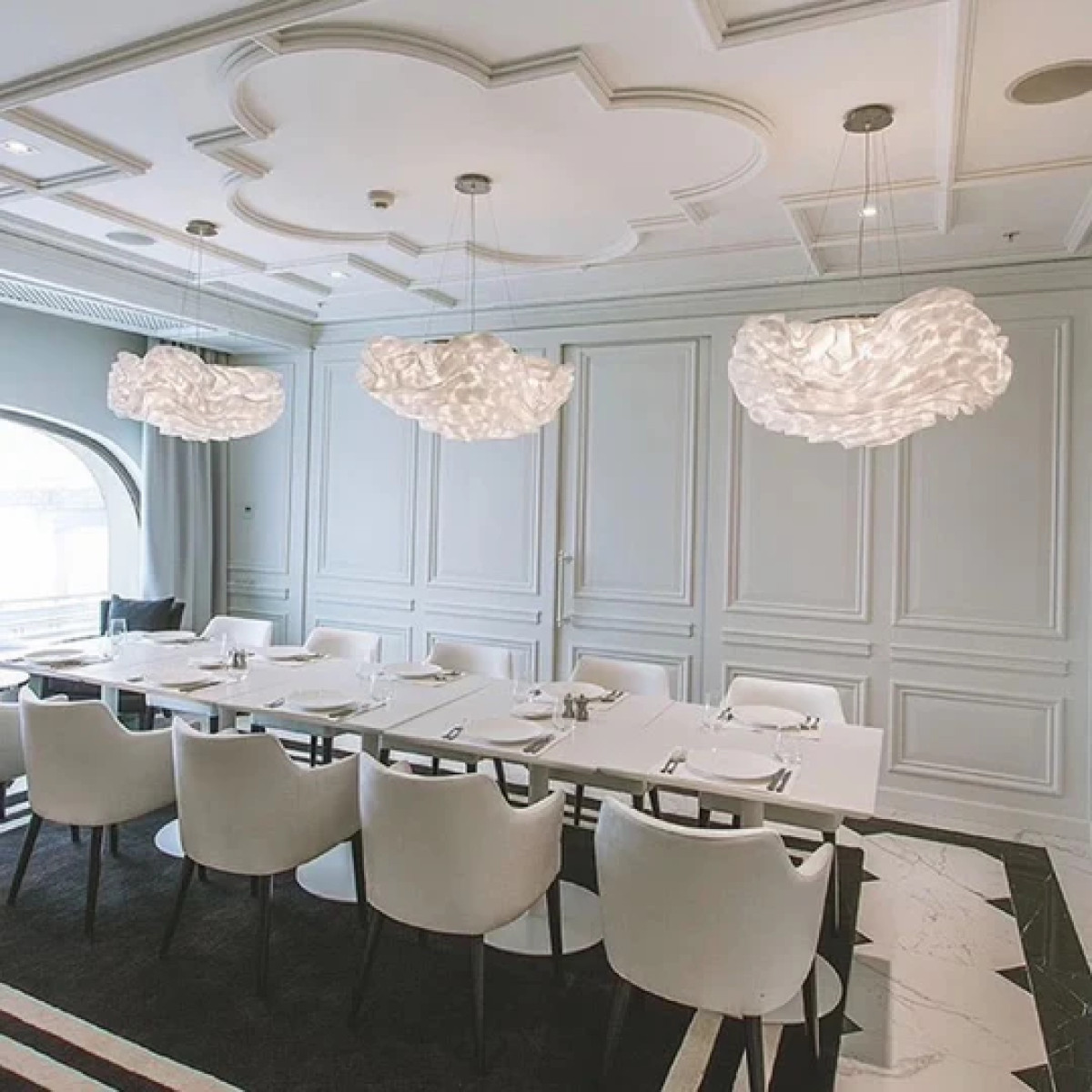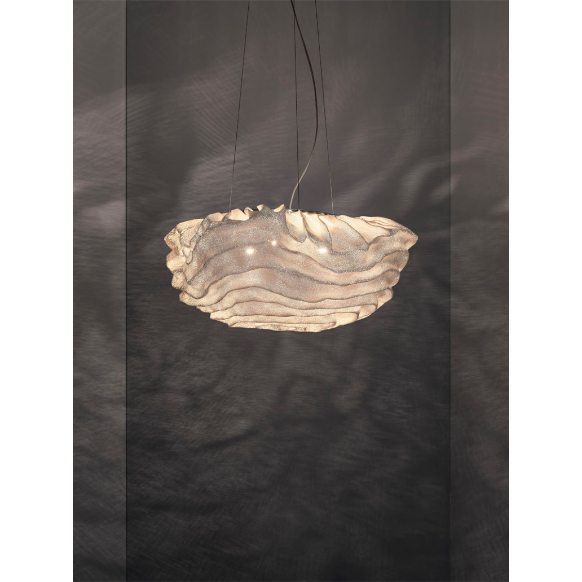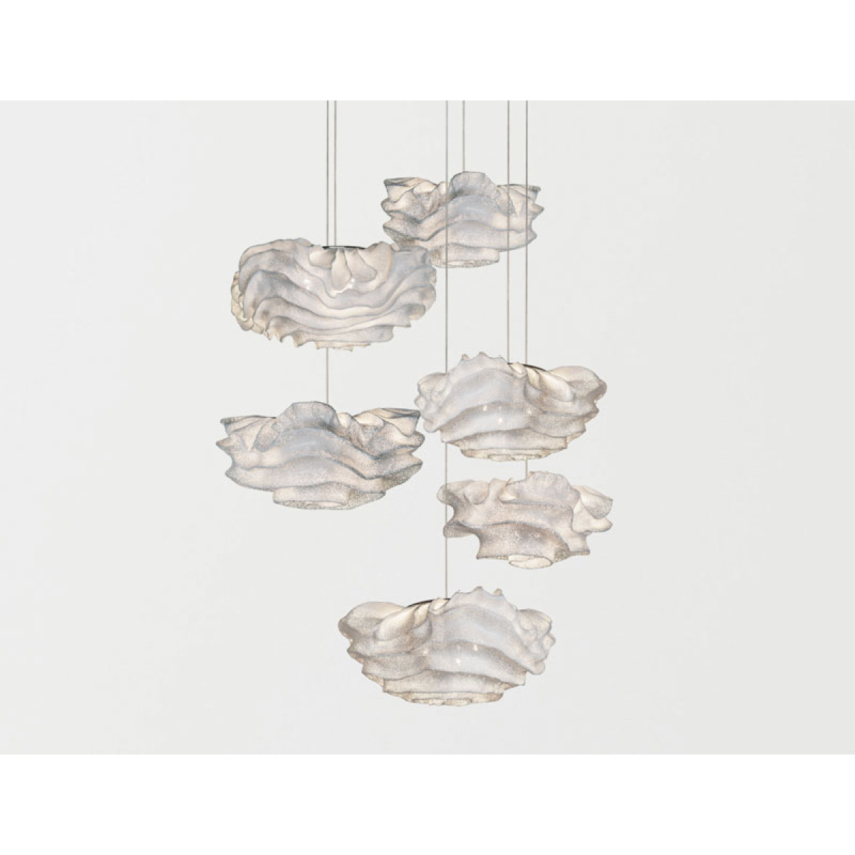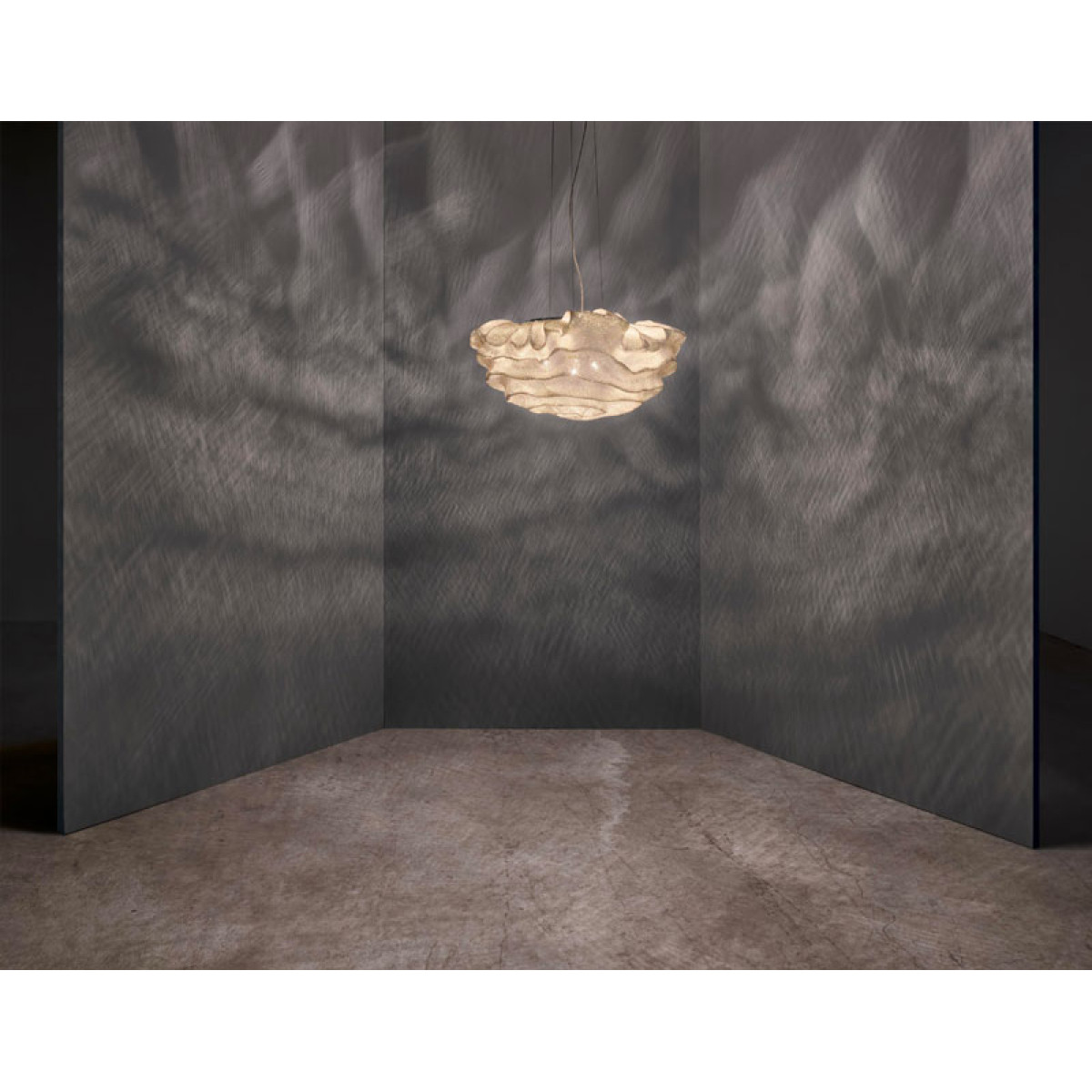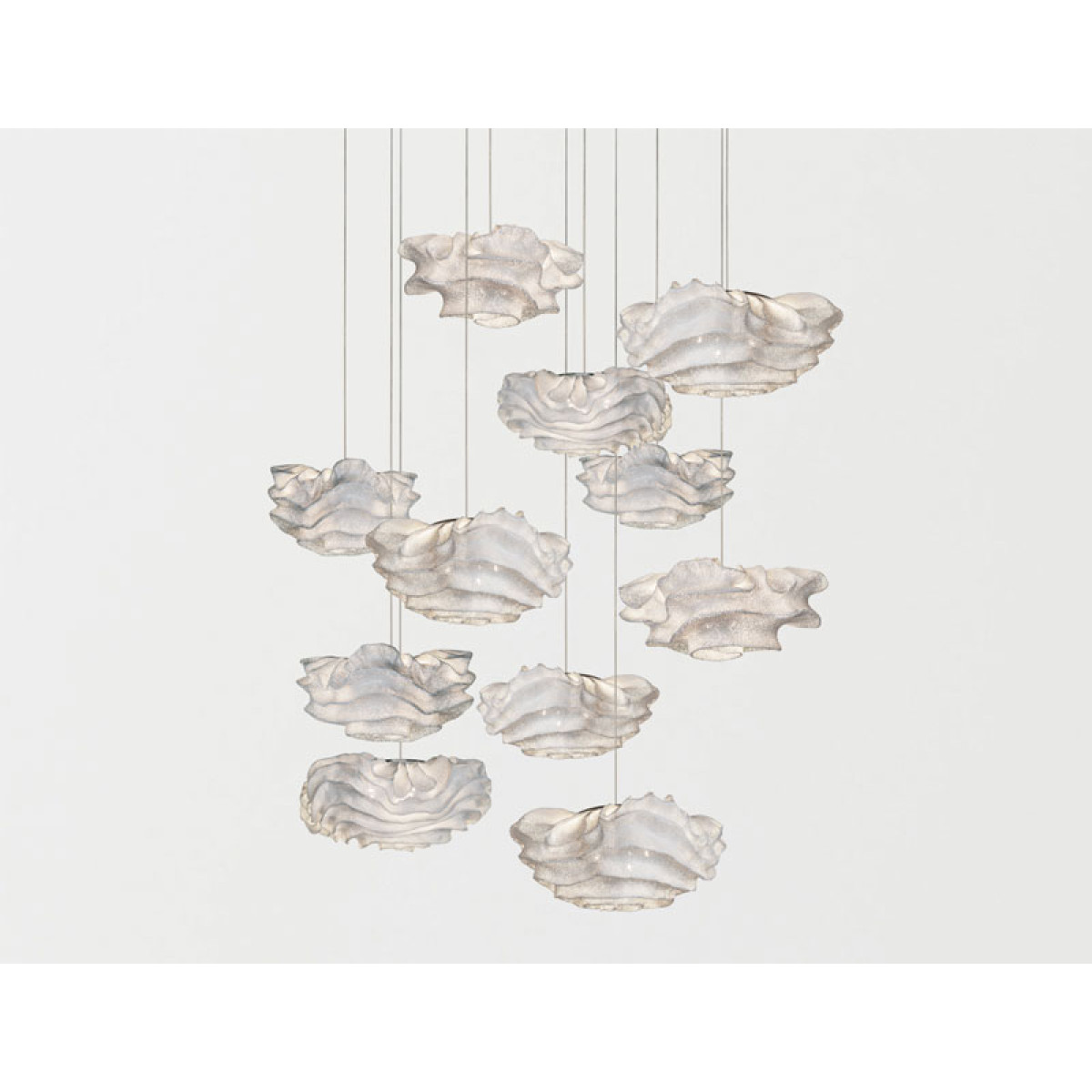 The Nevo pendant lamp is a masterpiece of design and innovation. Made from painted stainless steel mesh, it is extremely malleable and features unique organic shapes that are hand-shaped to give each lamp a one-of-a-kind design. The folds and curves of the lamp create a living, ever-evolving sculpture that also spreads a beautiful light throughout your space.