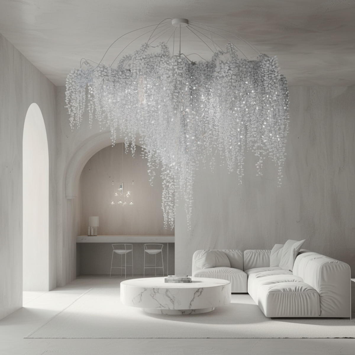 Tags: ps9041, wisteria, chandelier, white, blooms, flower, contemporary, custom, lighting, design, light,