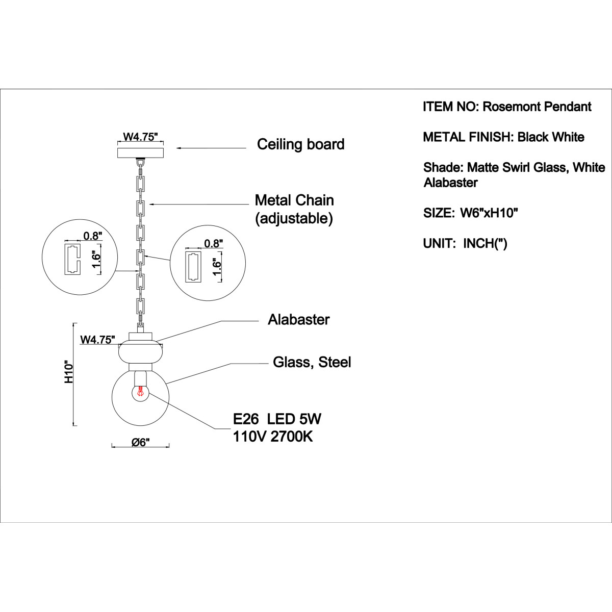 Fixture: 6" Diameter x 12" Height x Adjustable chain 6 feet