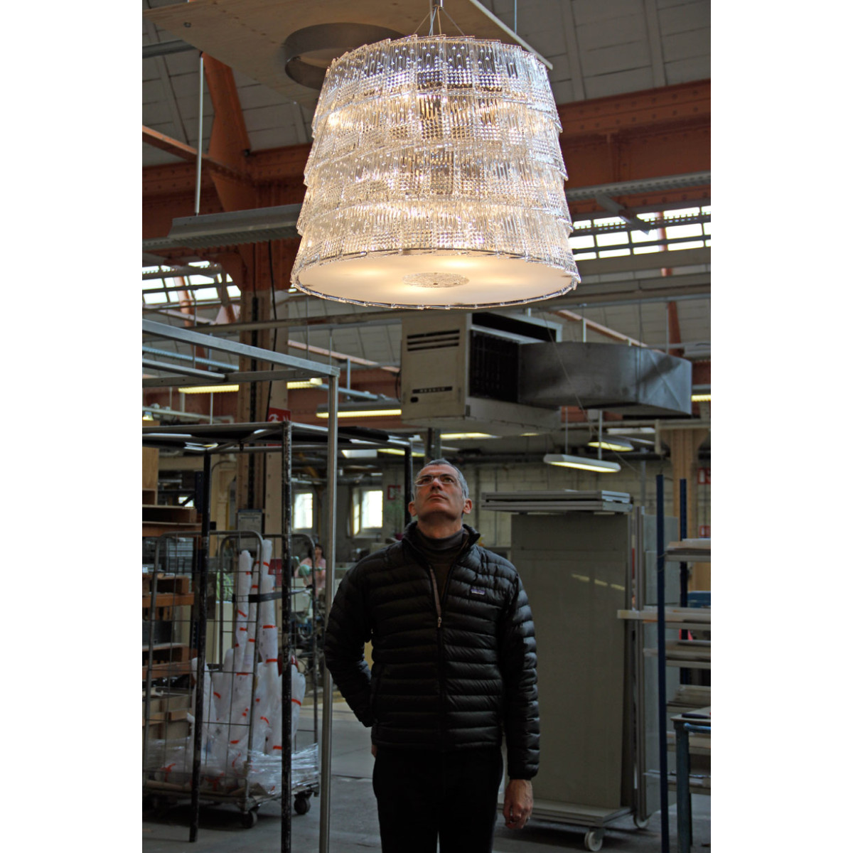 Arik Levy brings crystal alive, playing on the modular nature of the Tuile de Cristal collection. This is contemporary lighting, highlighting new layered crystal modules which magnify the light. Arik Levy is the designer of the Fantme wall fitting, the Torch collection, the Ellipse and Tourbillon chandeliers - all recent Baccarat successes. His Tuile de Cristal chandelier is a contemporary light fitting which highlights new crystal modules (available in two versions).