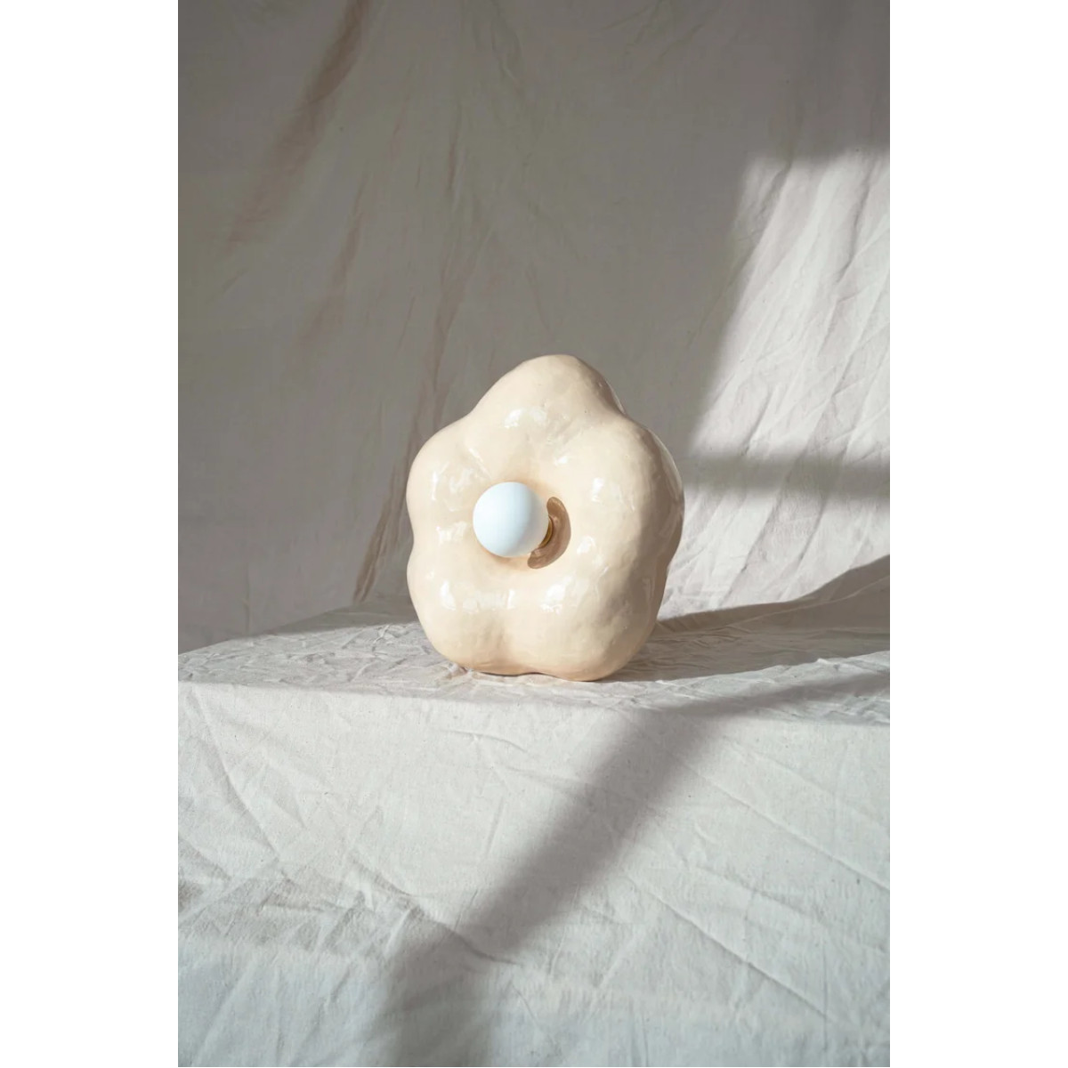 The Puffy Daisy Sconce is a handmade, made-to-order ceramic wall light designed by Eny Lee Parker, featuring a soft, organic silhouette with a frosted acrylic base and brushed brass accents paired with a Tala light bulb for warm illumination. This sculptural sconce carries a playful yet refined aesthetic typical of Parker’s work, where traditional craft meets contemporary design, and it’s UL-listed for safe use in interiors.