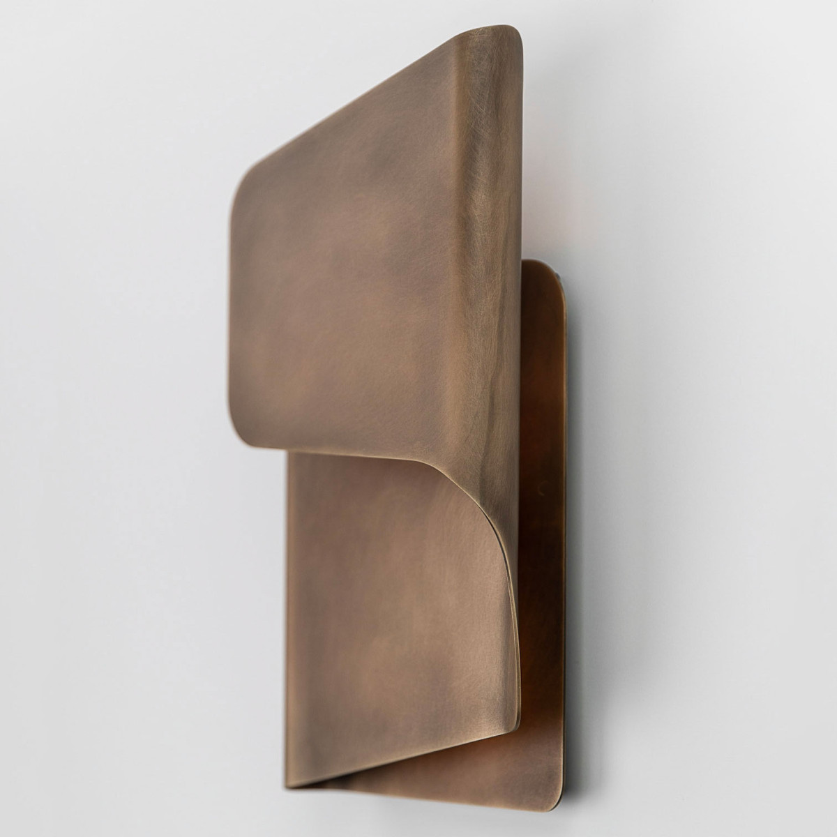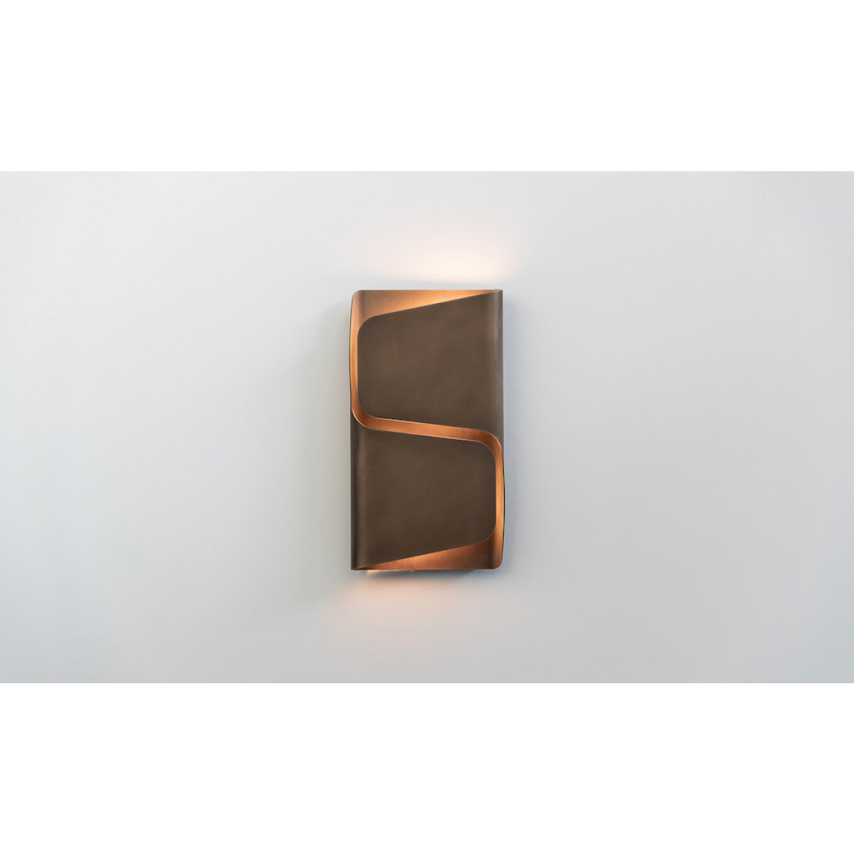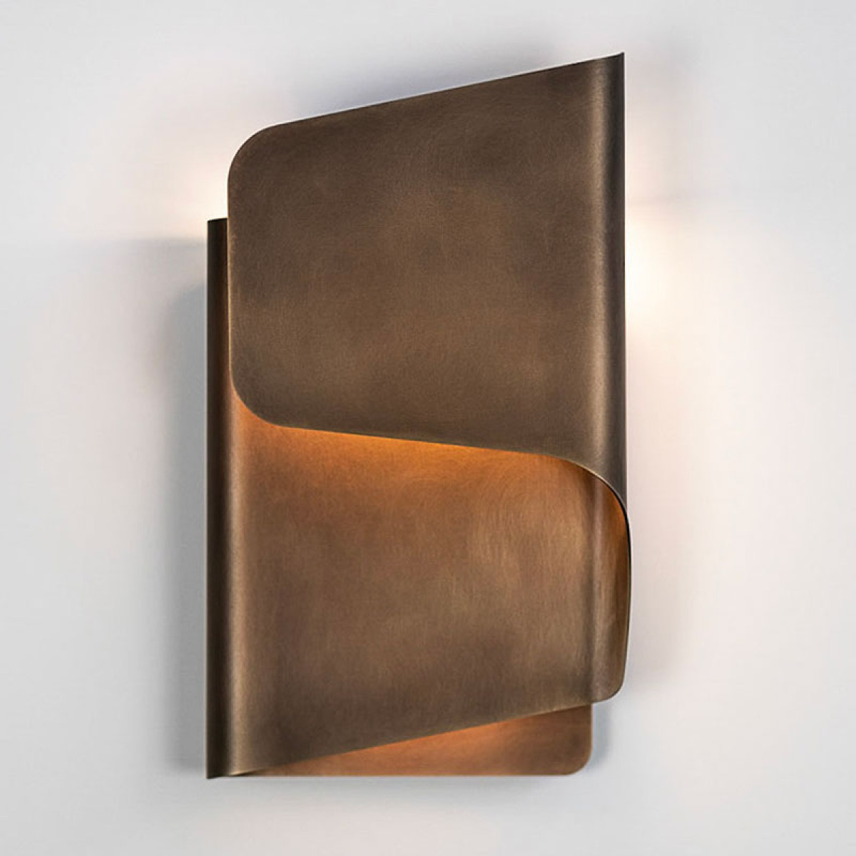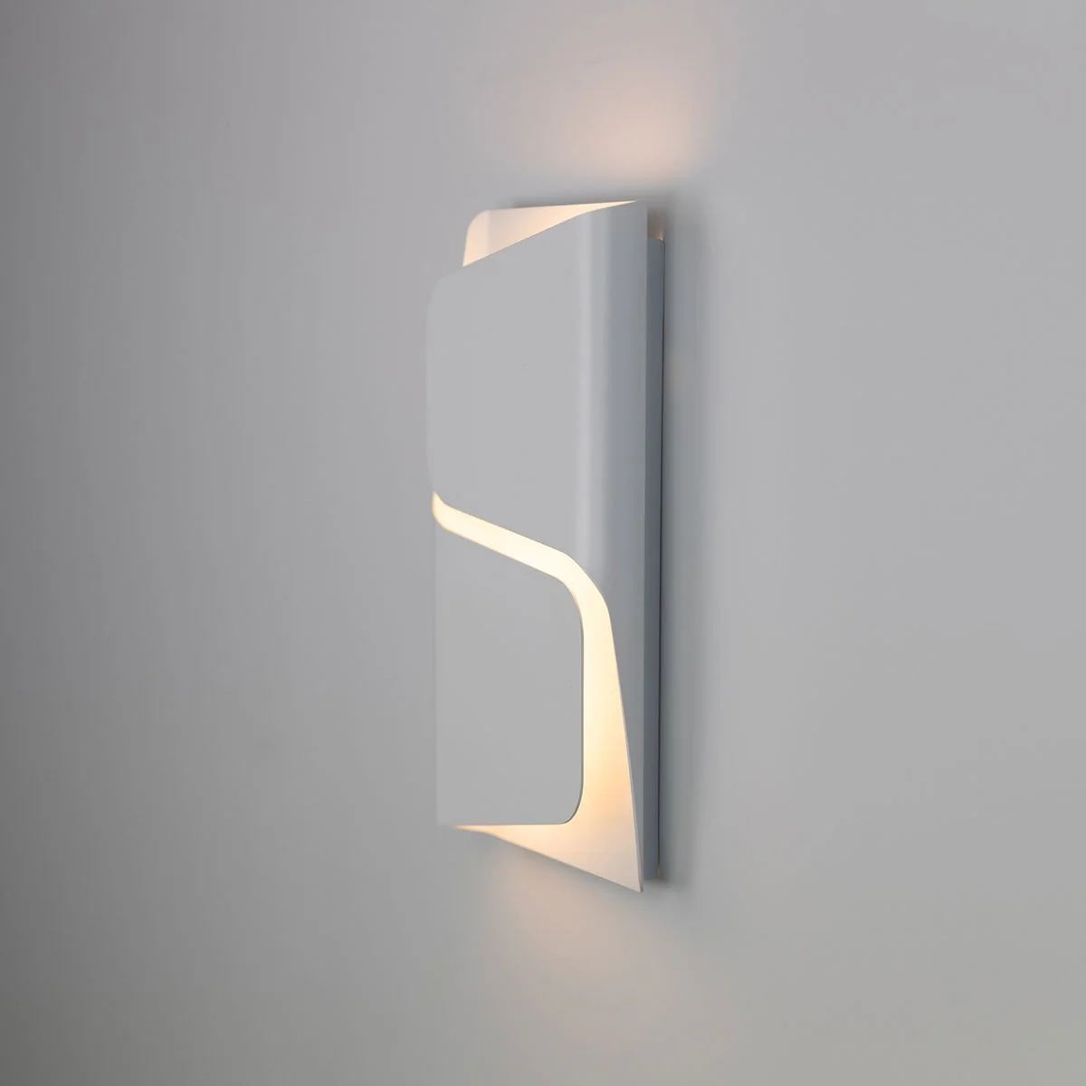 The Taos Wall Sconce creates gentle, ambient light that peeks out from the openings of its folded metal form. The sconce's asymmetrical folds create visual intrigue and a striking modern style that will add an elegant accent to any wall.