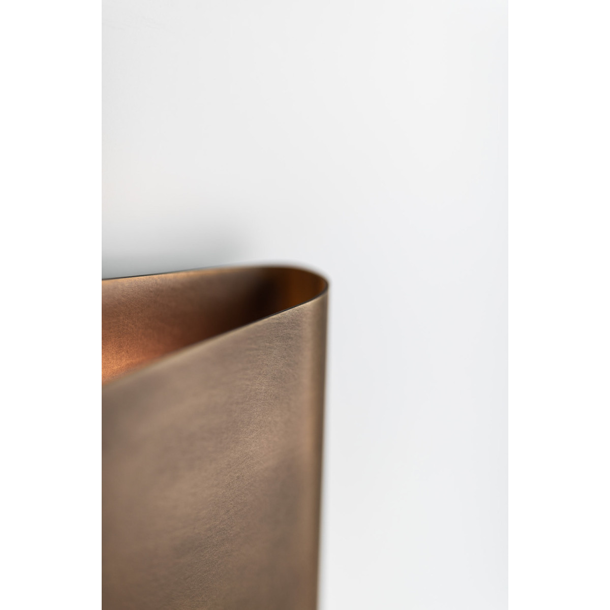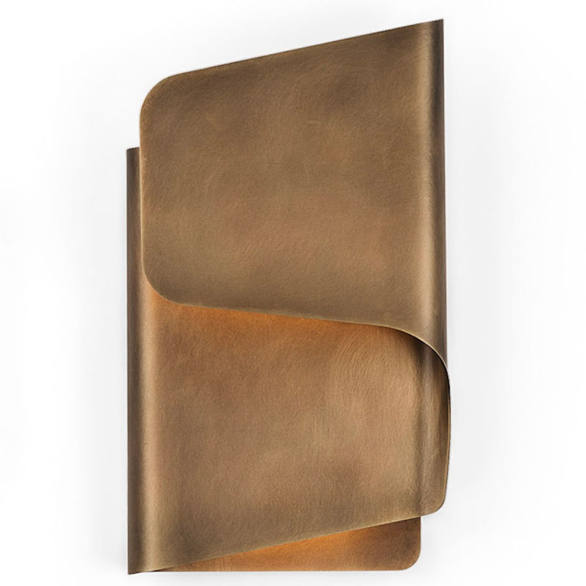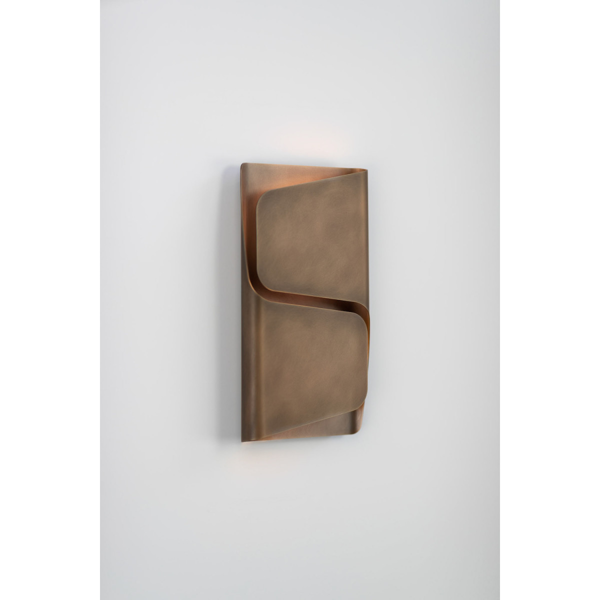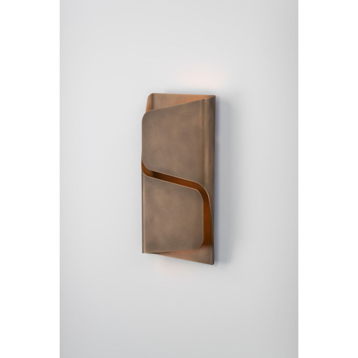 The Taos Wall Sconce creates gentle, ambient light that peeks out from the openings of its folded metal form. The sconce's asymmetrical folds create visual intrigue and a striking modern style that will add an elegant accent to any wall.