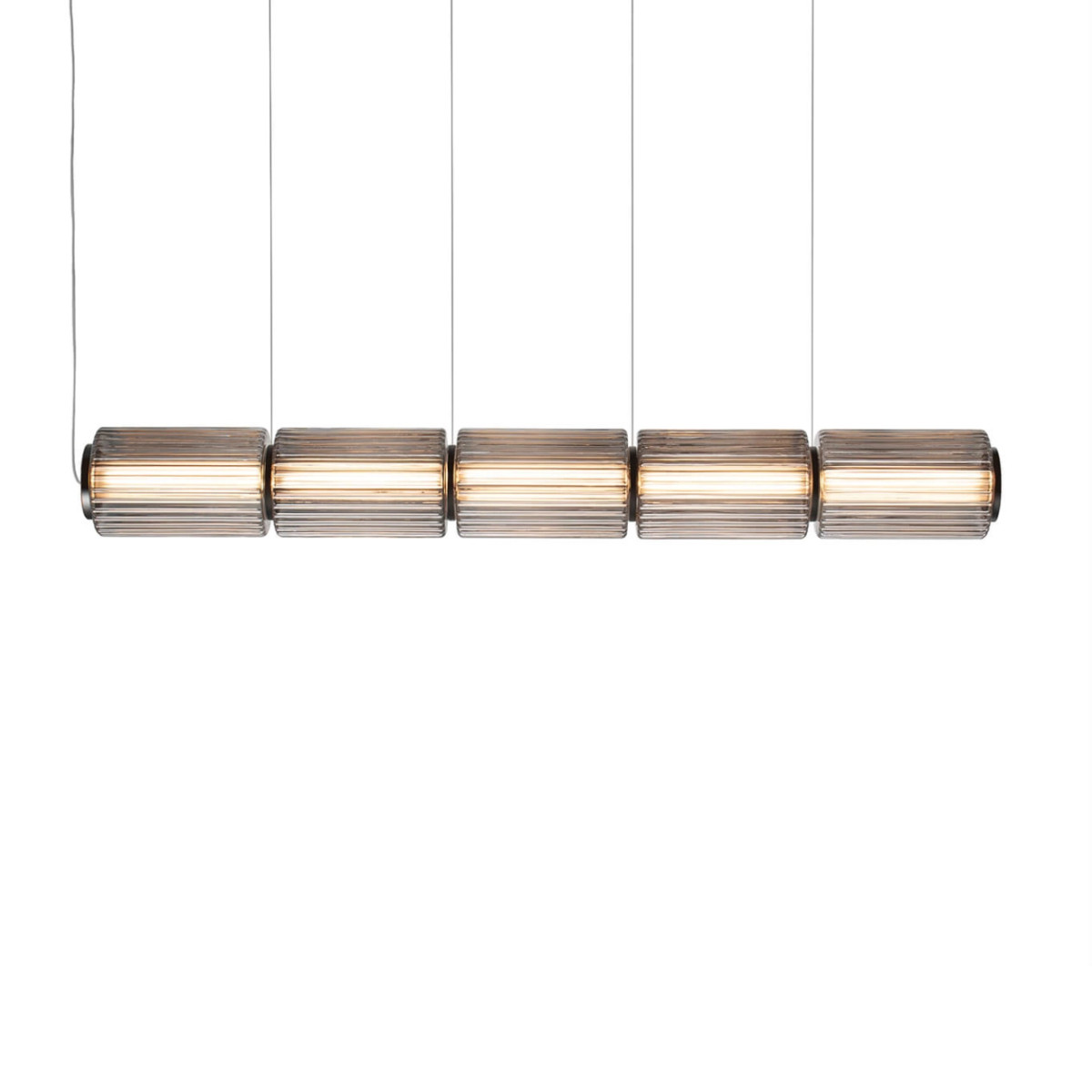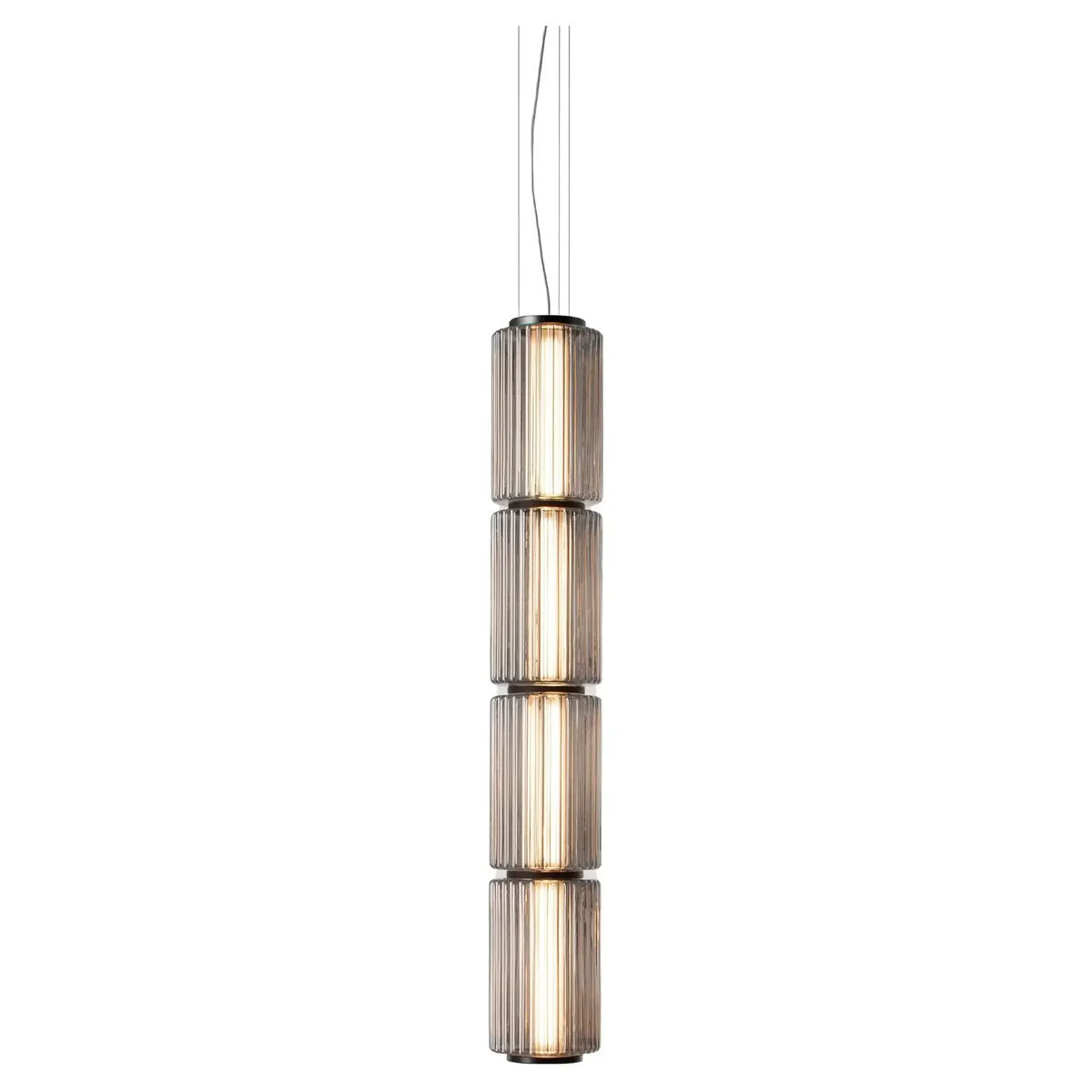 The Column pendant conveys order, symmetry and magnificence, much like the Grecian doric columns found in classical architecture. The faceted surface of the fixture alludes to the fluting of columns on buildings and temples to create a sense of rhythm, which softly diffuses the light as it radiates into the space. As it can be arranged in segments of machine mould-blown glass cylinders, it can lengthen a space vertically or expand it horizontally.