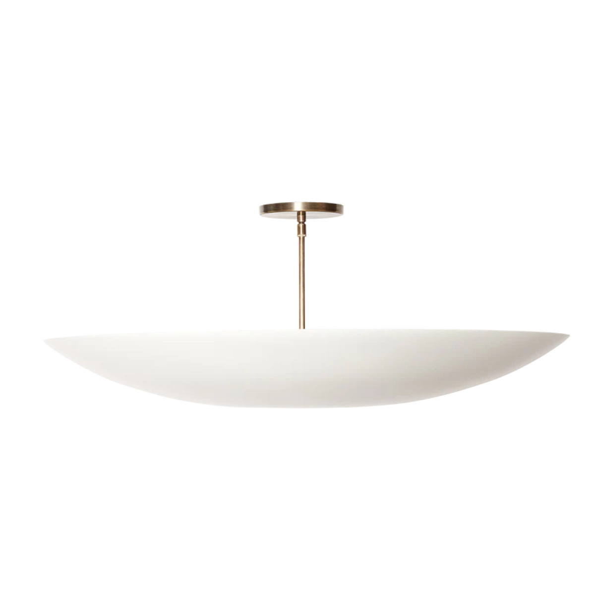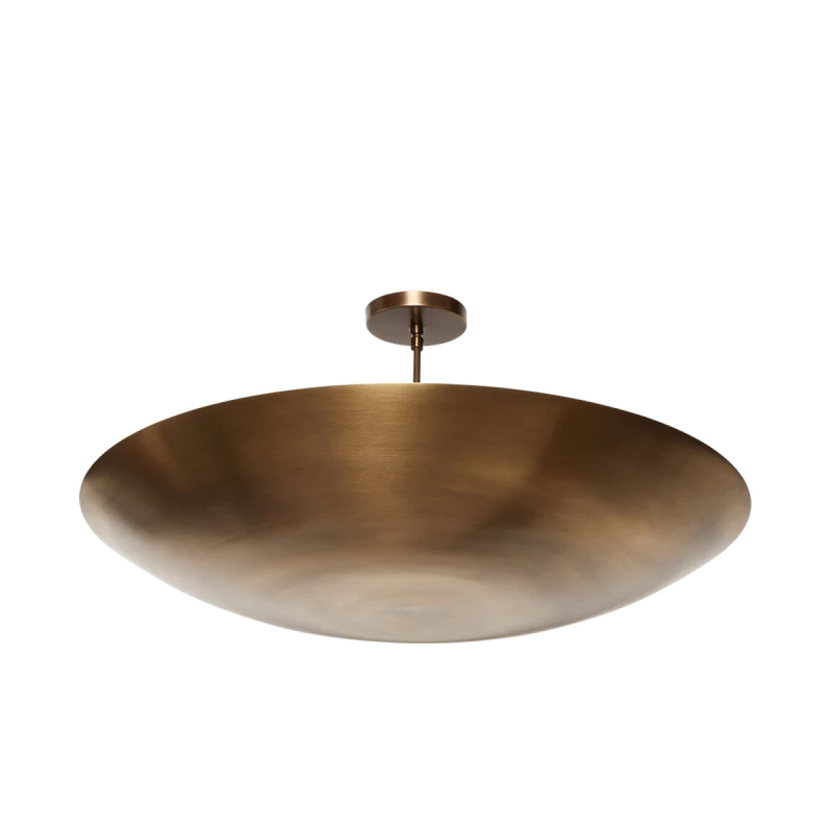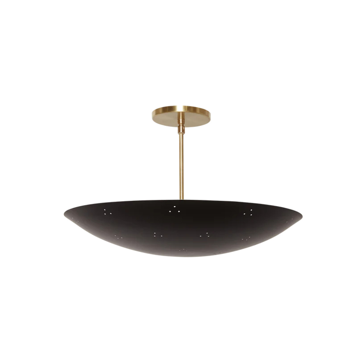The Alta Brass Dome features a spun metal shade with a brass canopy and rod. The shade is available in brass or powdercoated metal finishes. Available with perforations for an added upcharge.