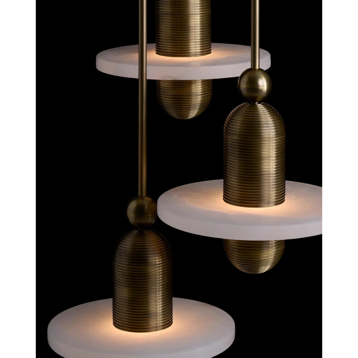 The Translucent Alabaster Planes of the median series are intersected by a fluted brass form, referencing traditional middle eastern jewelry while pushing it through a futurist lens. The stone glows from a light source that remains hidden, illuminating the relationship between the solid said the permeable. Having created custom chandeliers for over three decades, we specialize in bringing lighting concepts into reality, whether your inspiration comes from a rough sketch, an existing chandelier, our original concepts, or even your own creative imagination. Large or small, our team can meet the challenge, and can even coordinate the production of a private collection, where all finishes are kept consistent. Let us create the perfect lighting fixtures for your individual needs, to your individual specifications, and with attention to detail throughout production.