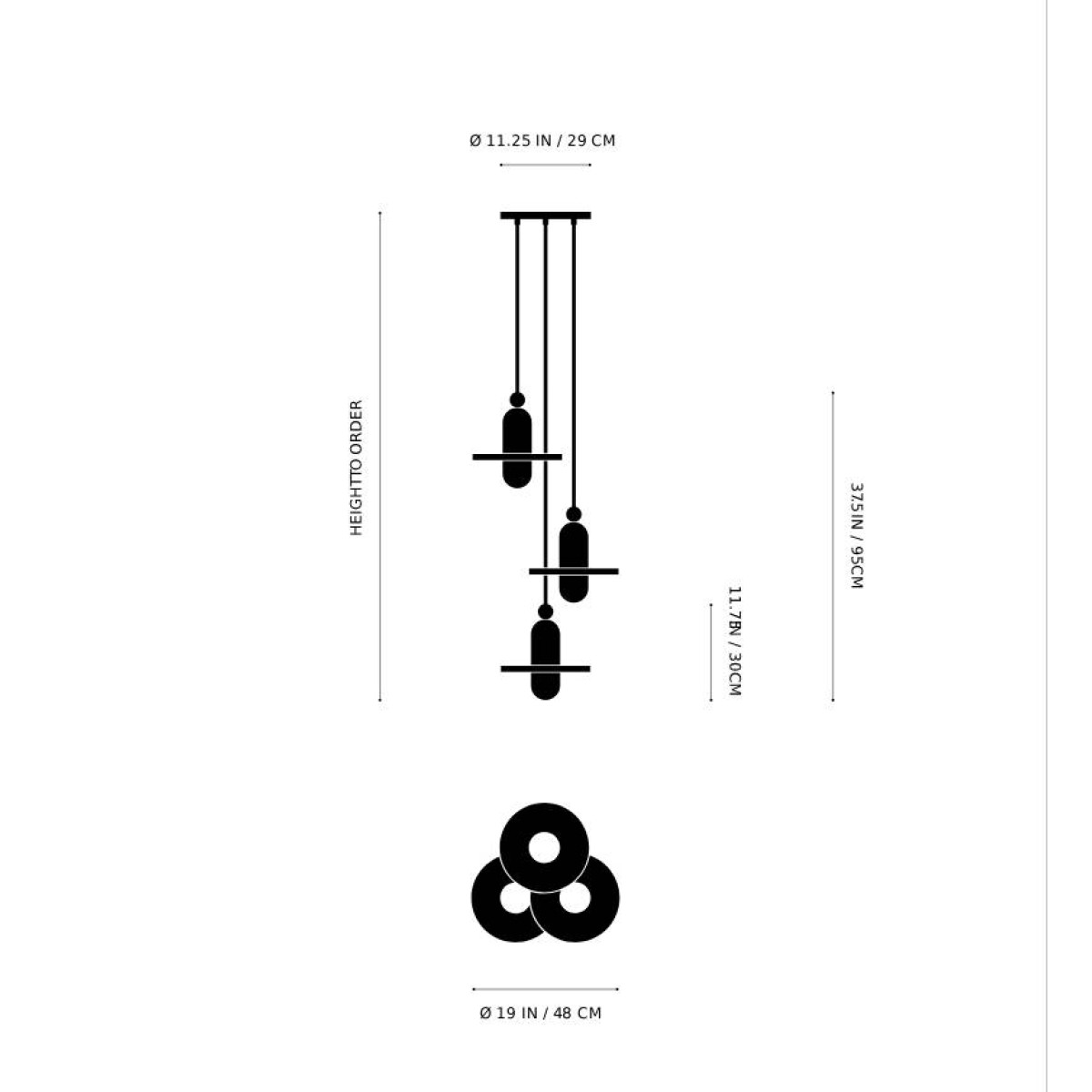 19" Diameter x 37" Height (3 pendant) (Custom sizes also available)