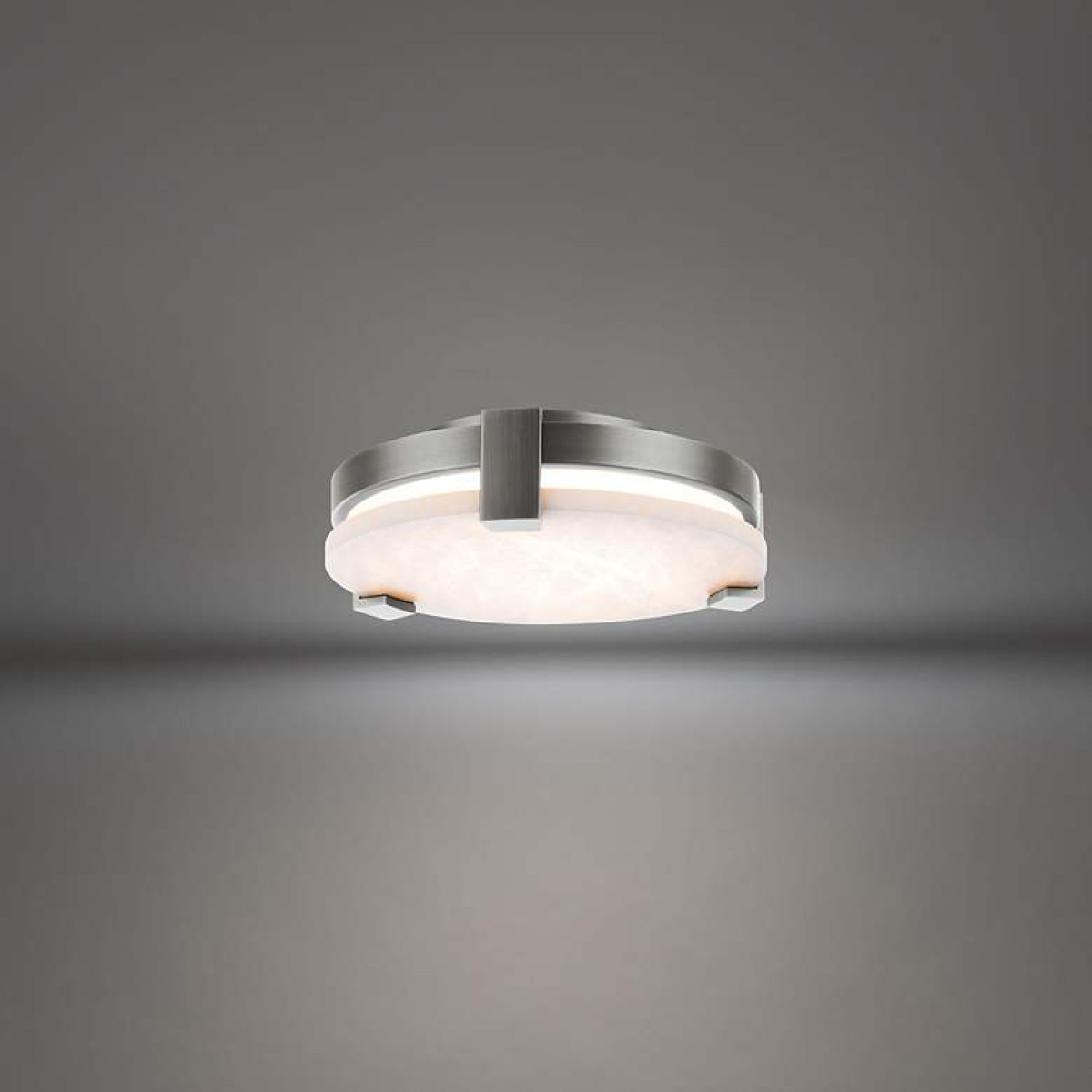 Bring the beauty of natural Spanish alabaster into your space with the Catalonia Wall / Ceiling Light. LED light shines through a polycarbonate diffuser, illuminating the stone and highlighting its unique veining. The frame, made of spun aluminum and die cast brackets, complements the stone with its sophisticated finish. Dimmable with a TRIAC, ELV, or 0-10V dimmer, sold separately.