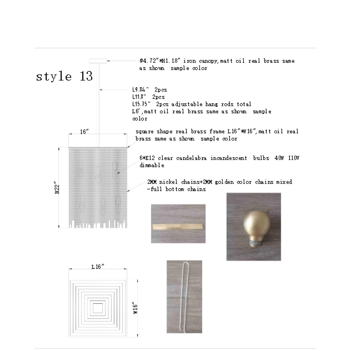 Bulbs: 6 x E12 clear candelabra incandescent bulbs 40W dimmable (Included)