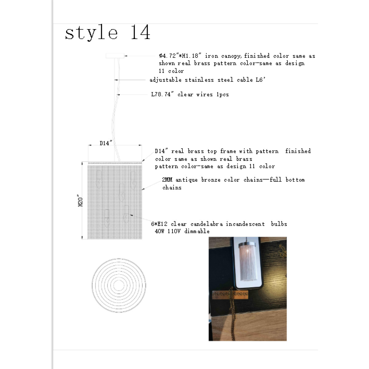 Bulbs: 6 x E12 clear candelabra incandescent bulbs 40W dimmable (Included)