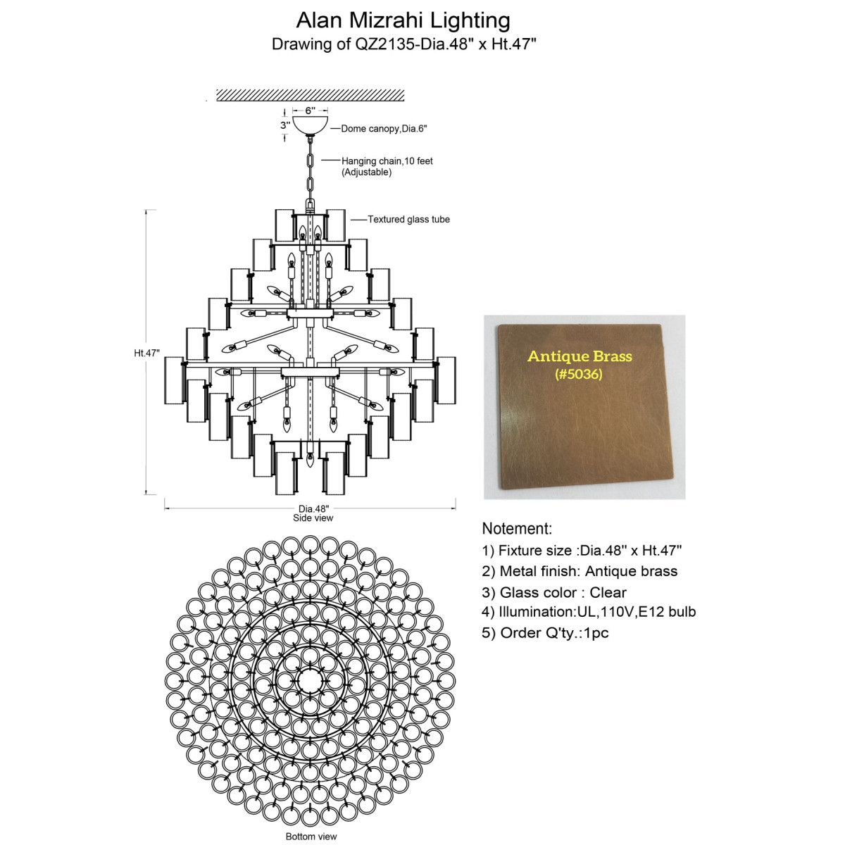 Bulbs: 38 Lights Watt 110 V USA/220 V Europe -candelabra bulbs (included)
